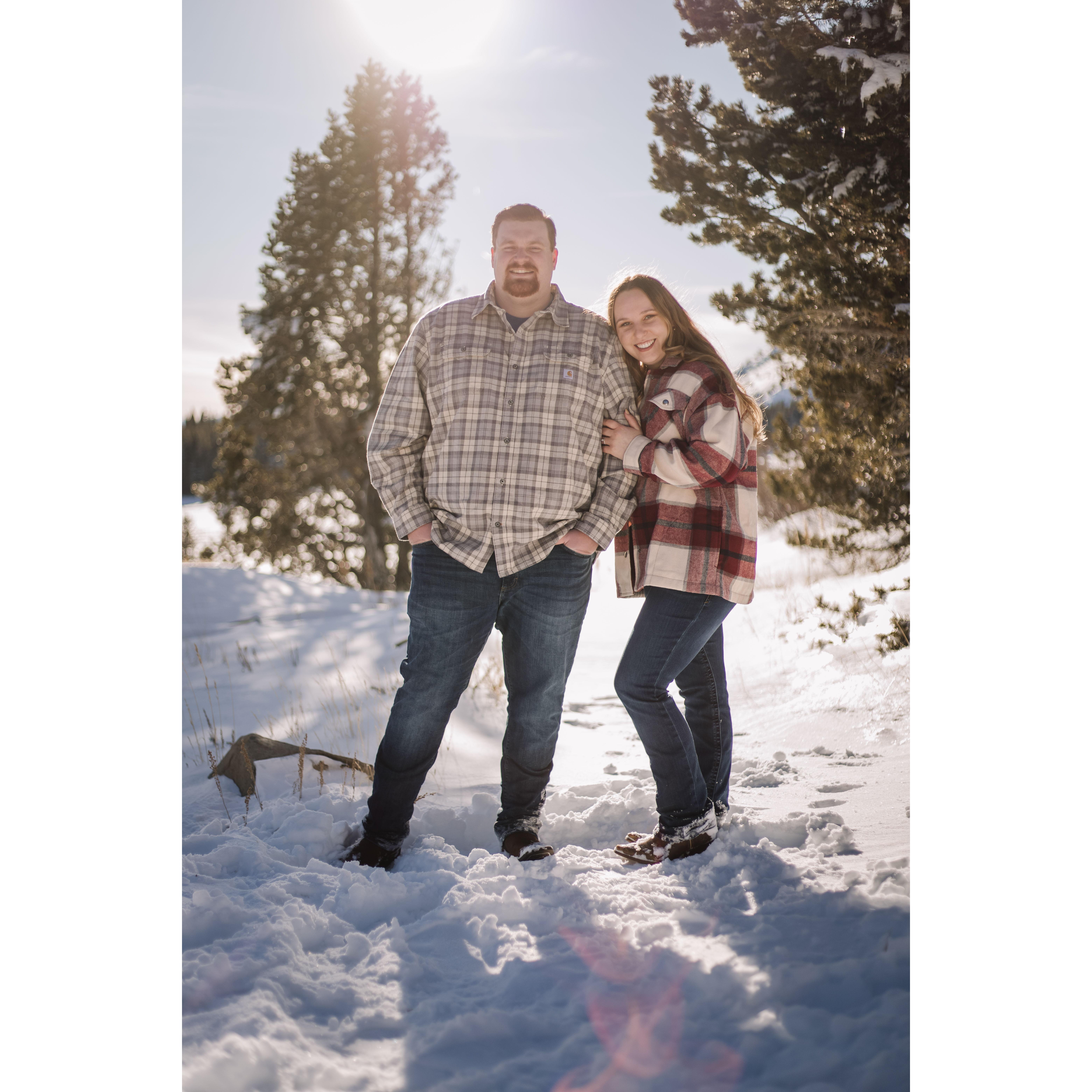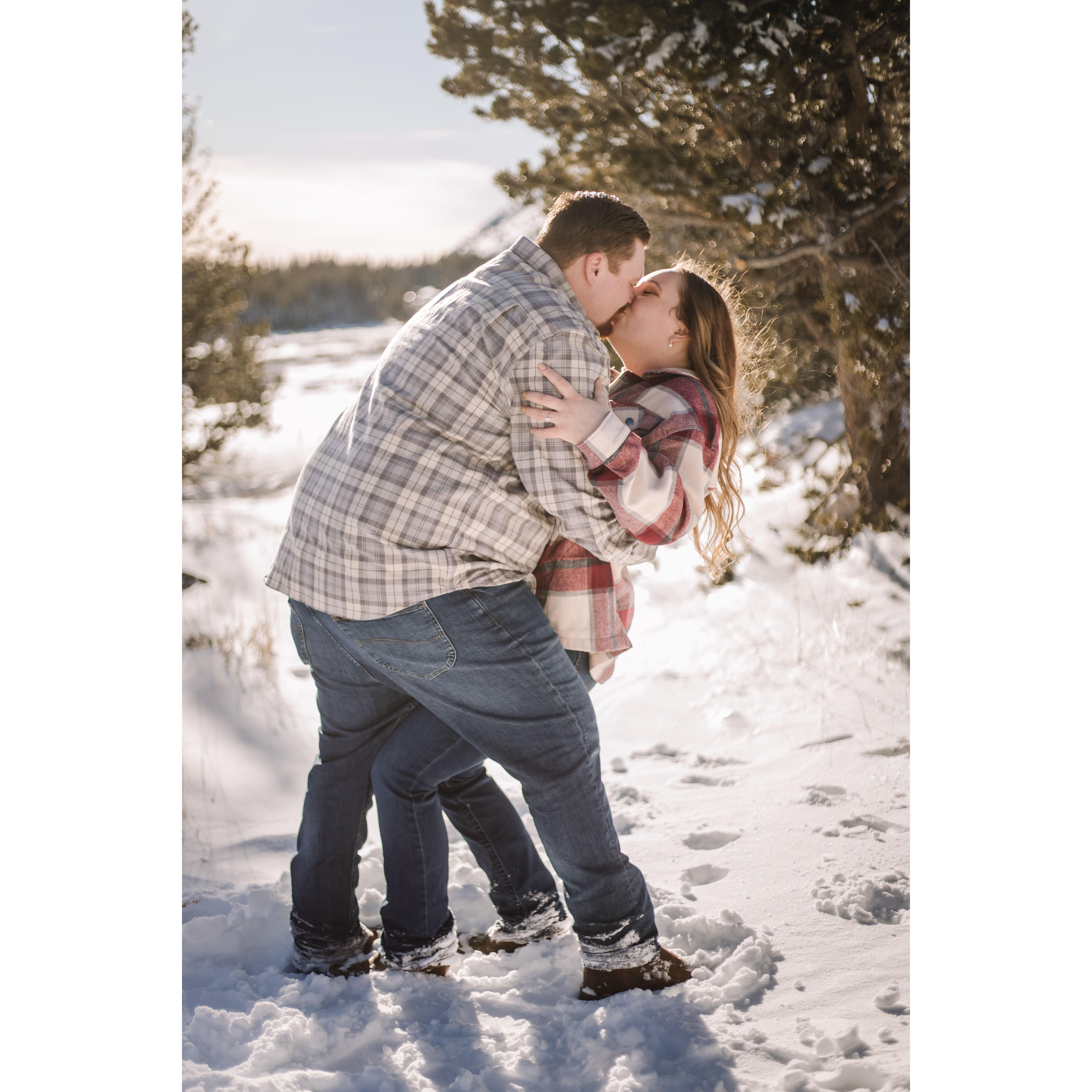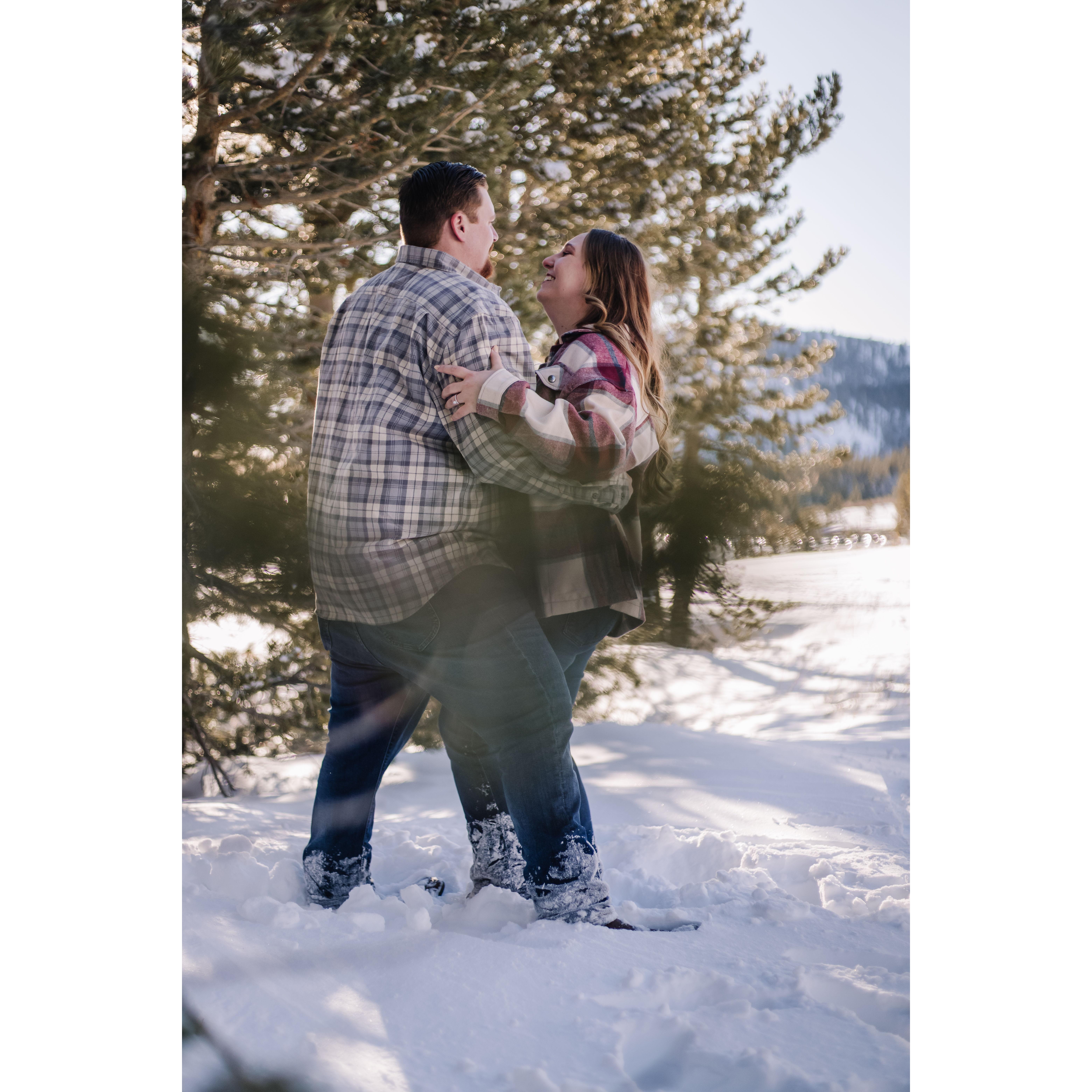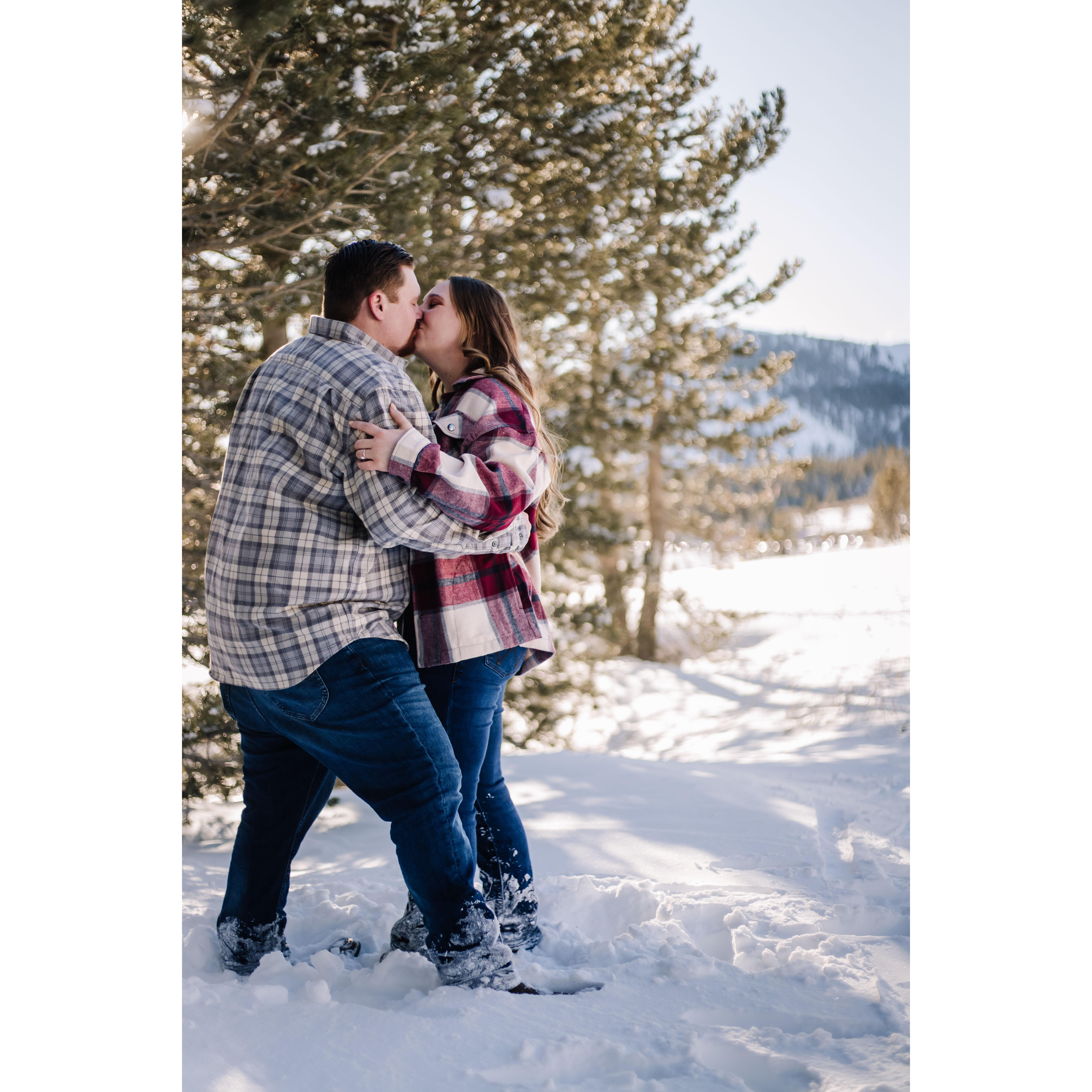 Post trekking around in 4 feet of snow for our engagement pictures.