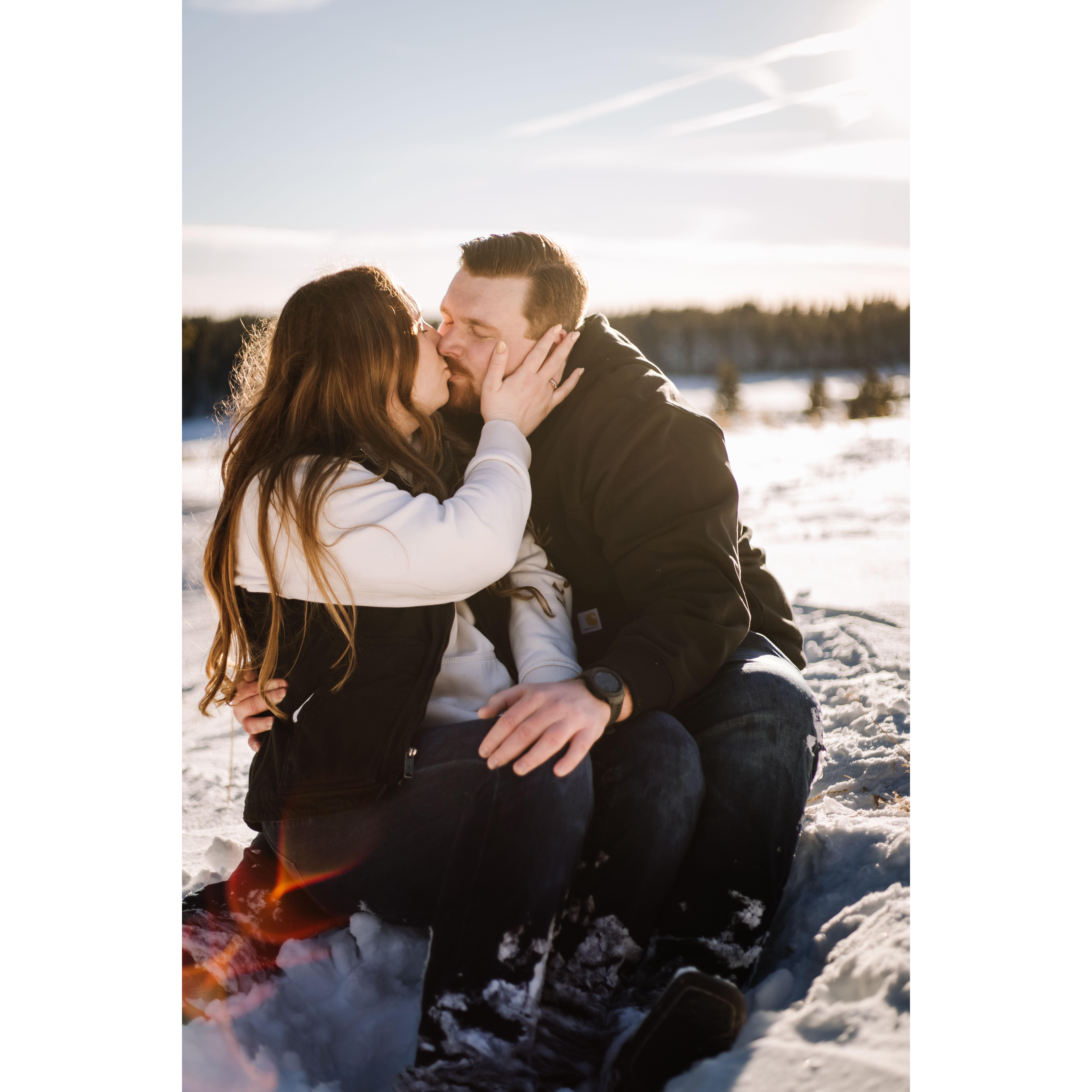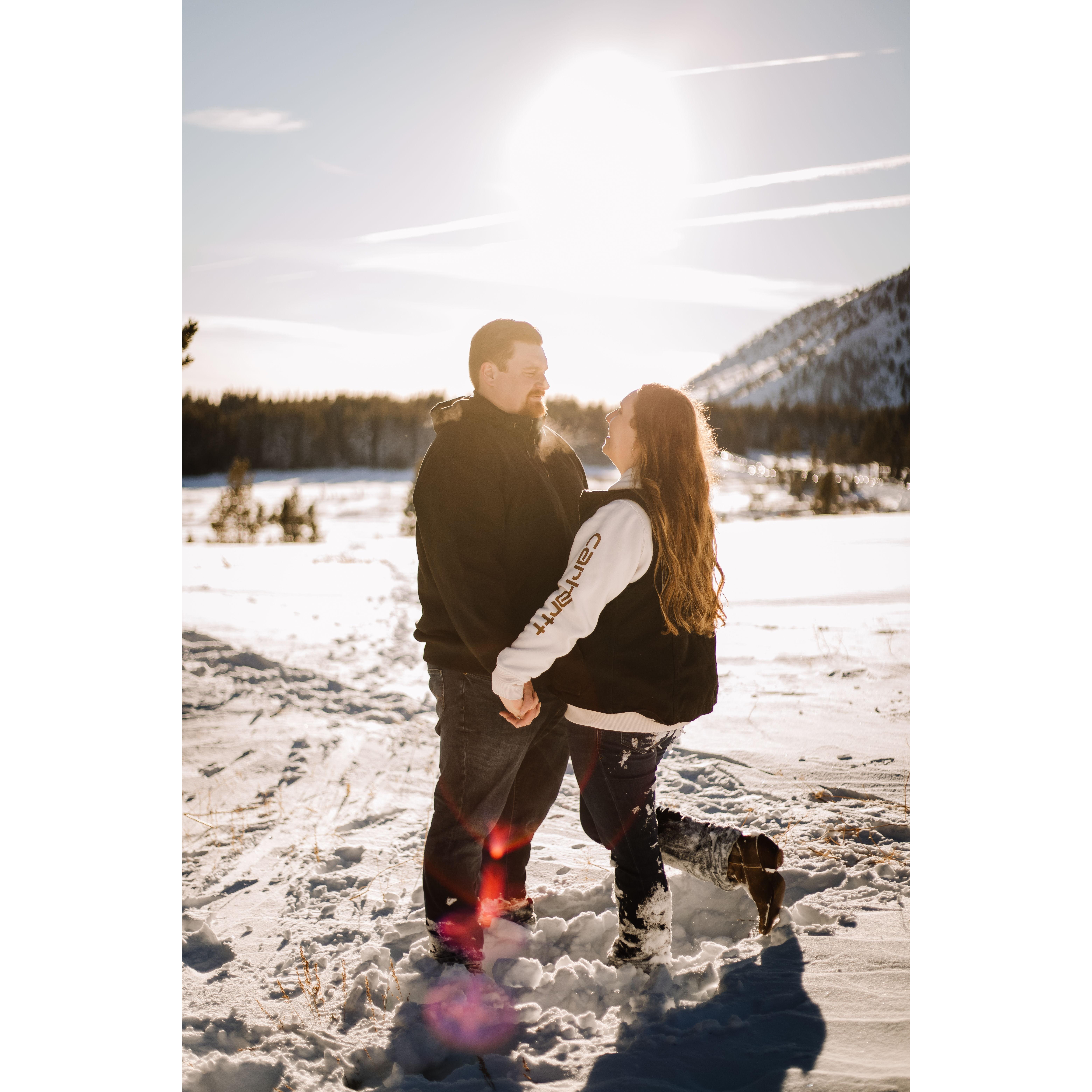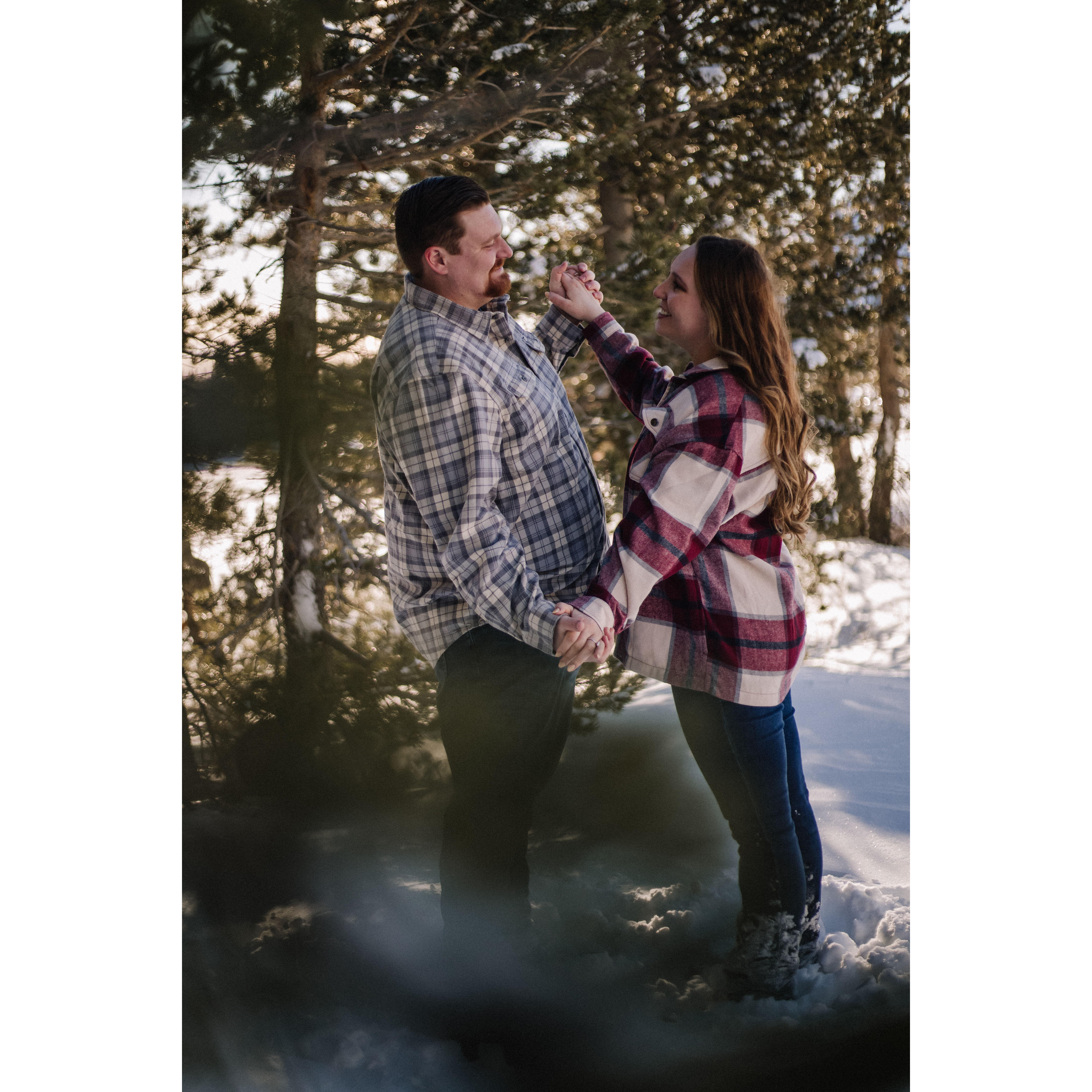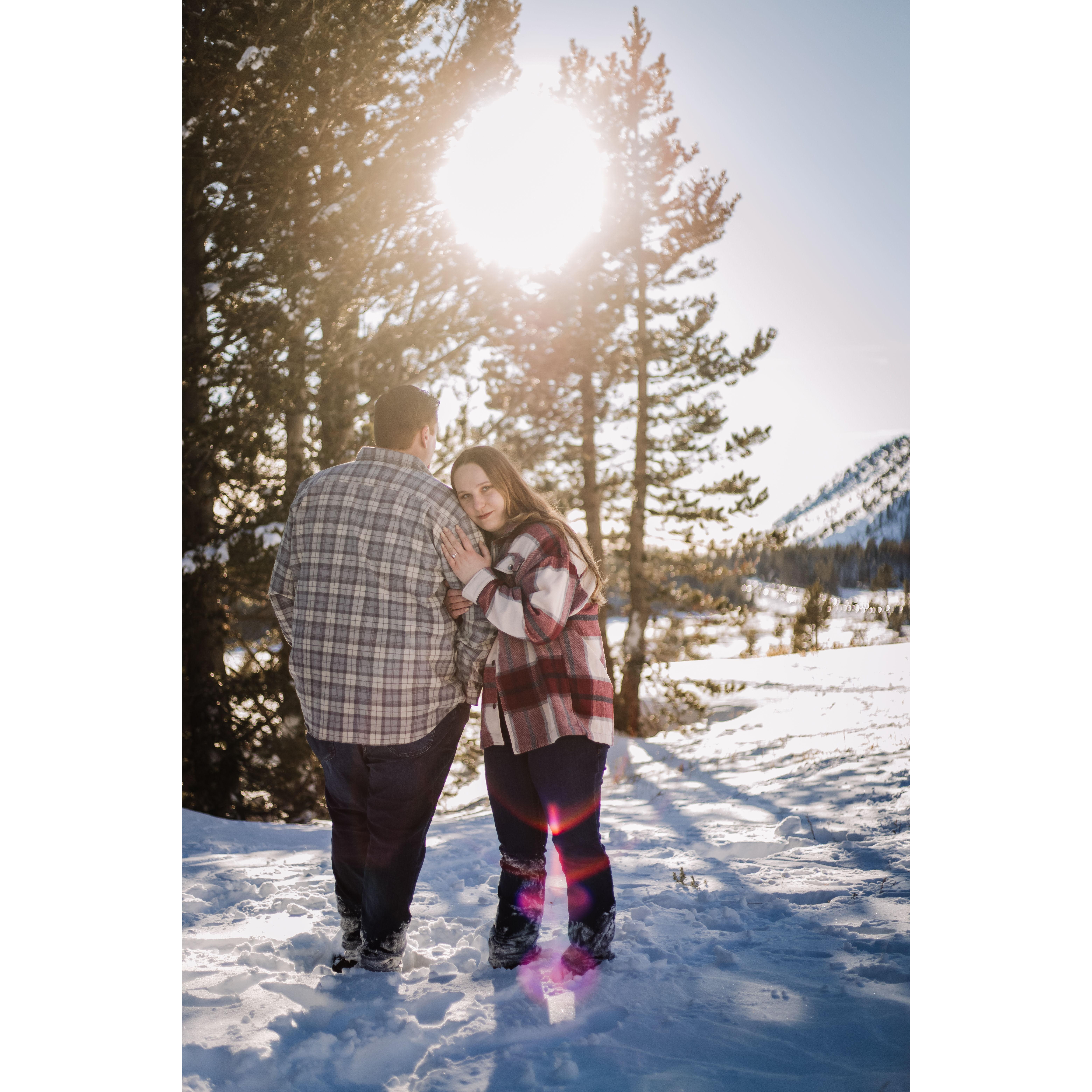 Post trekking around in 4 feet of snow for our engagement pictures.