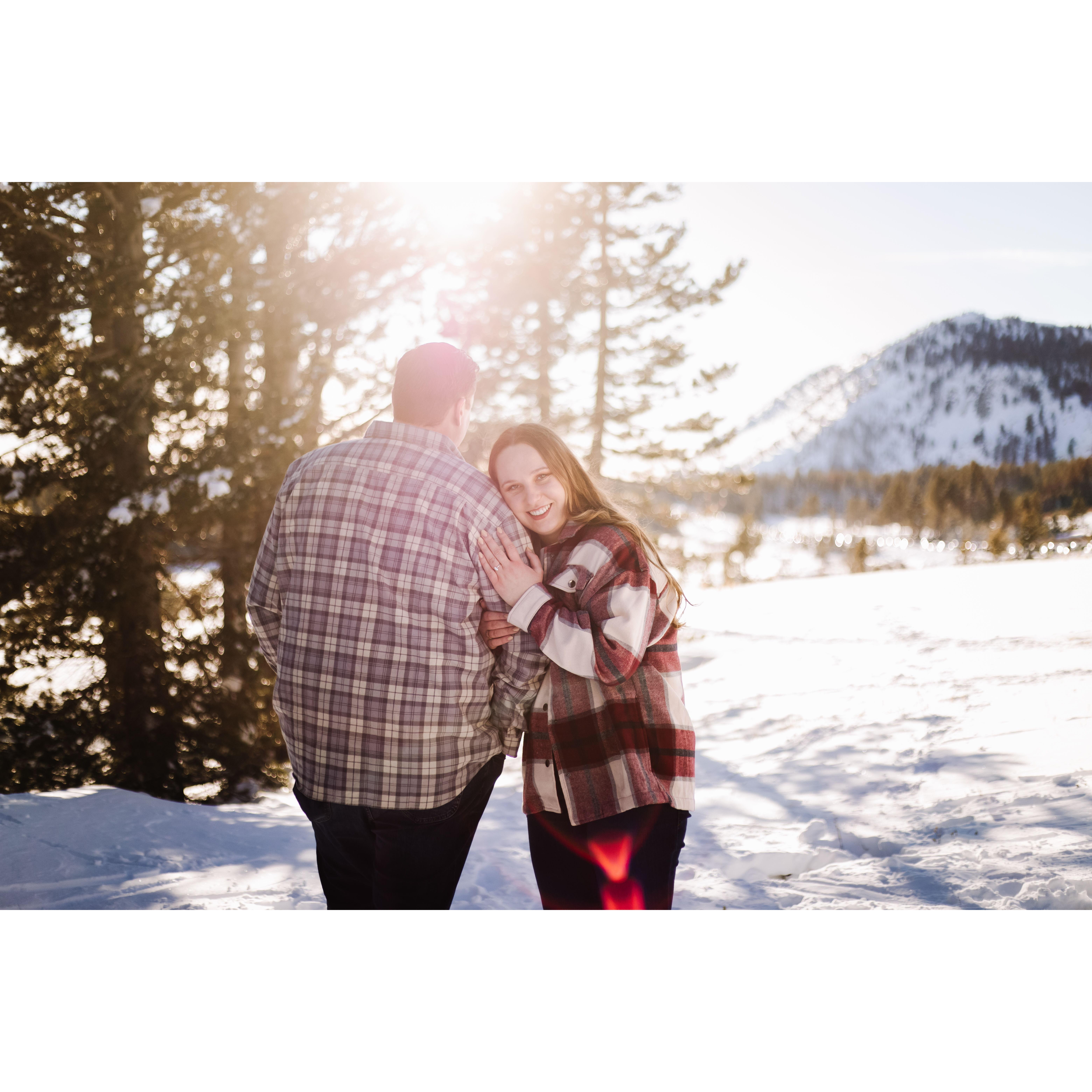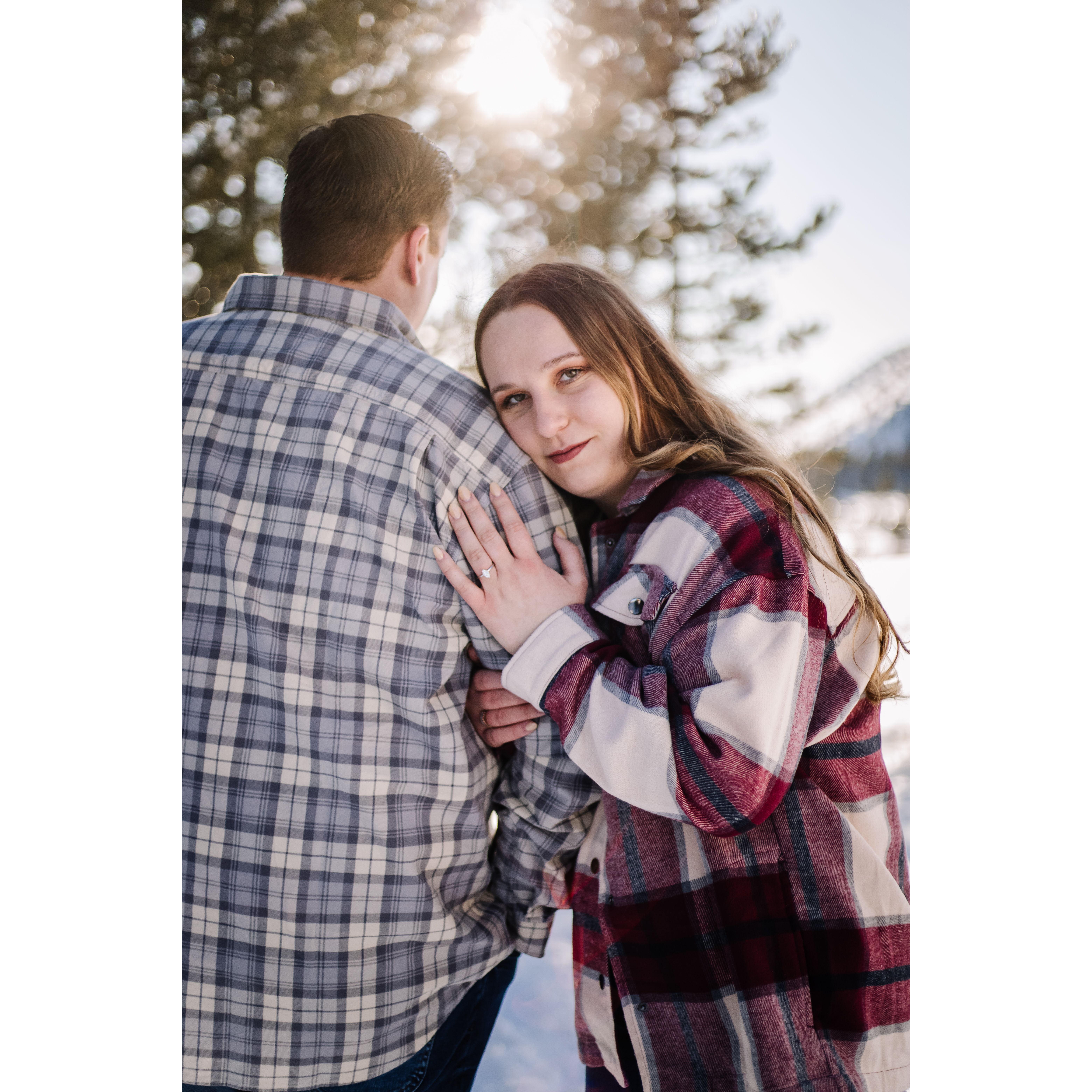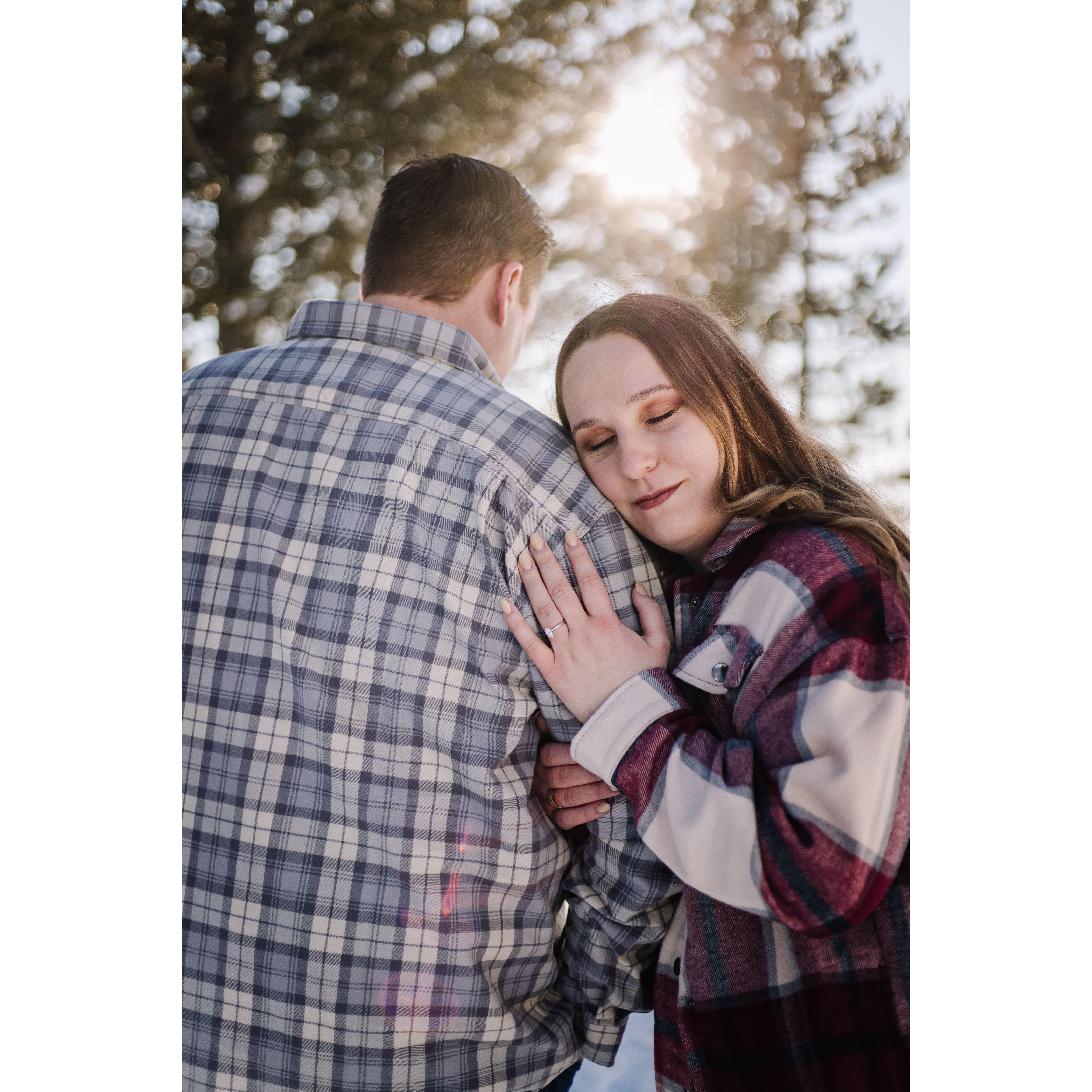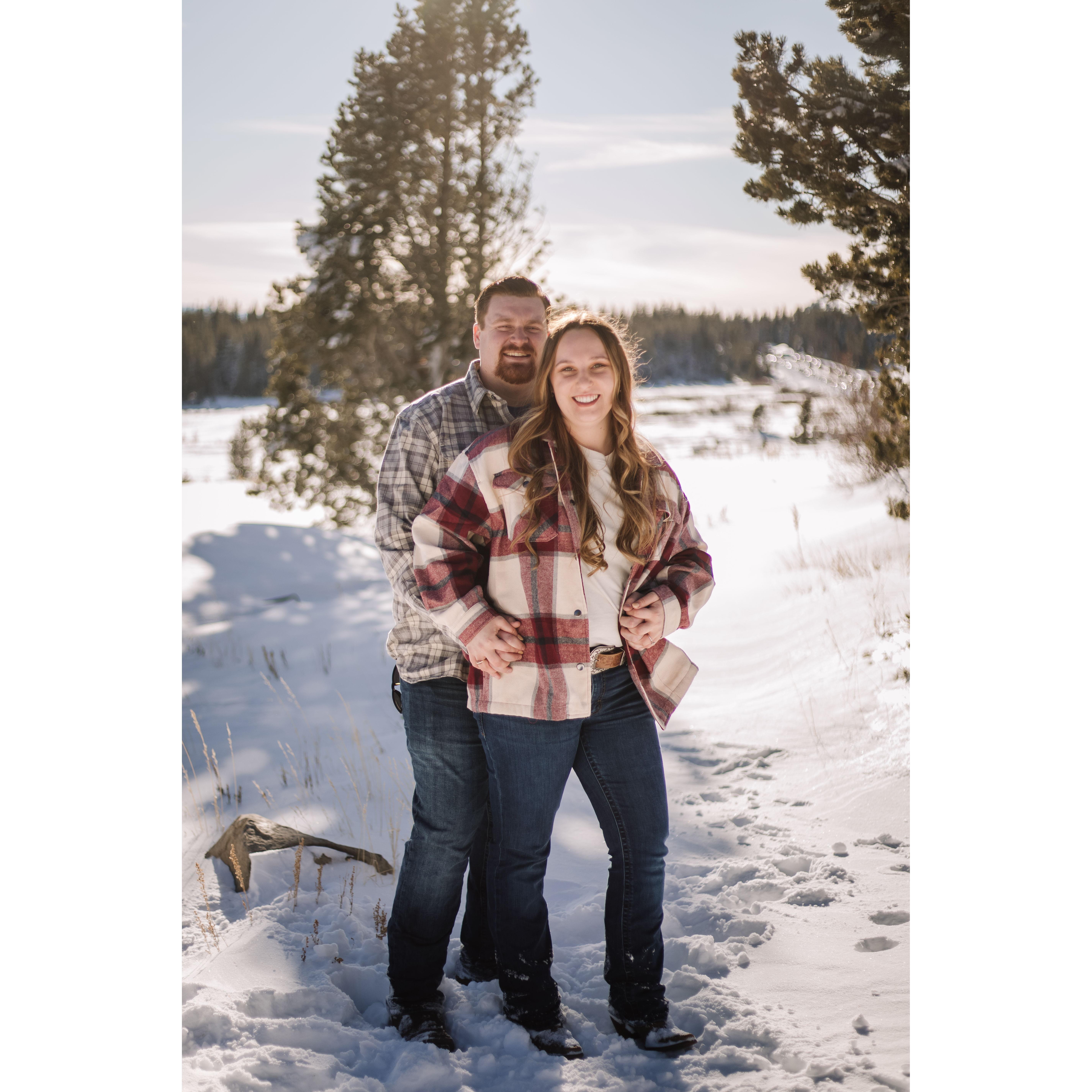Post trekking around in 4 feet of snow for our engagement pictures.