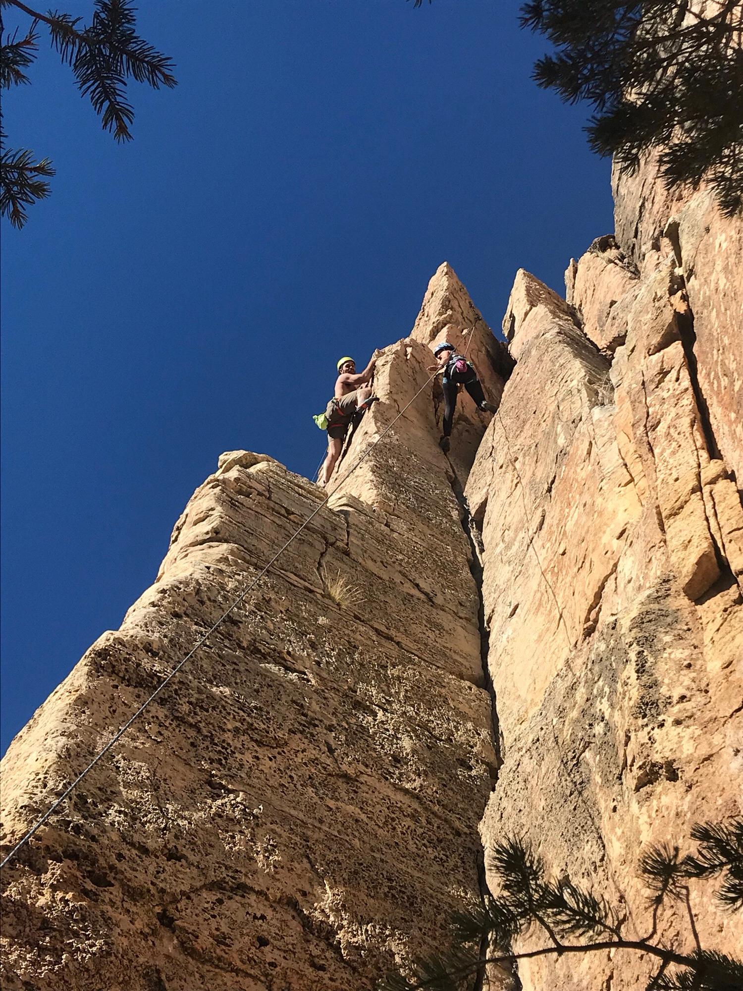 Our first time rock climbing together at the Craggin' Classic at Shelf Road in southern Colorado.