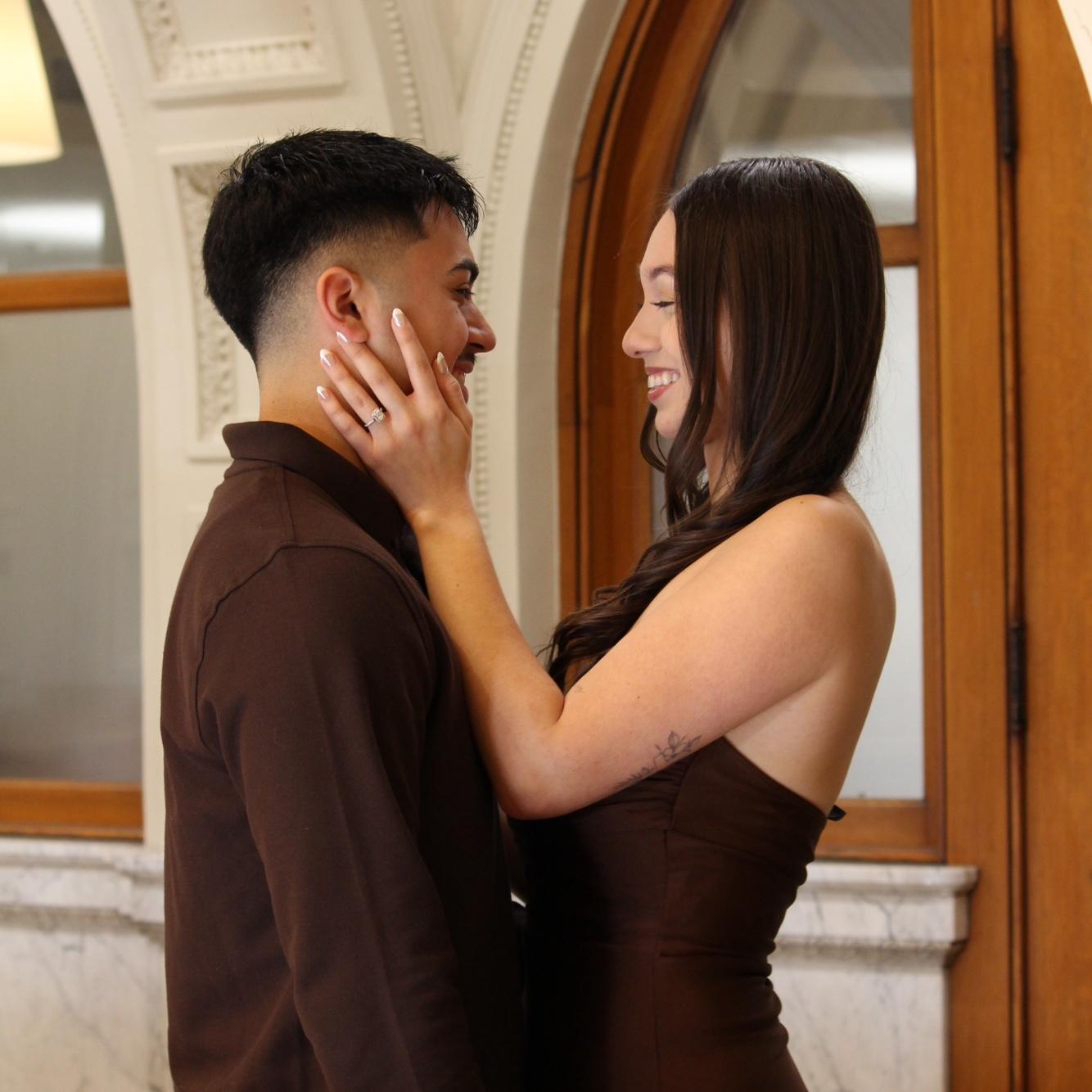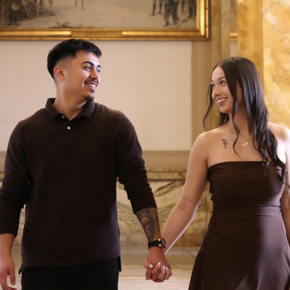 My Axelito and I first met on November 28th, 2019 — a day I’ll always remember, not just because it was Thanksgiving and my parents weren’t too happy, but because it was the start of our story. We originally crossed paths at Cristo Rey High School, where I’d see him in the hallways with a friend and secretly thought he was cute. Life brought us back together years later through social media, and that’s when everything truly began. Finally, on February 15, 2020, he formally asked me to be his girlfriend. I never in a million years imagined that this friendship would result in marriage and communion with God, but the Lord works in great ways. Now, five years later, I can’t thank Diosito enough for this beautiful relationship. What started as hallway glances turned into the greatest blessing I could’ve asked for.