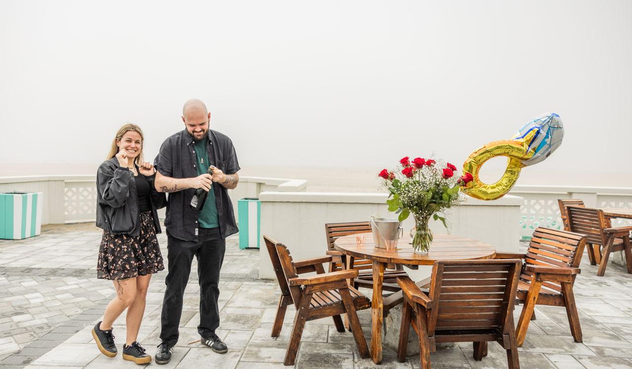 Like all great summer stories, ours began with sun, sand, and a little bit of scandal (just kidding… mostly). We started our journey working at Catalina Beach Club — Cody was the charming (and slightly overworked) cabana boy, and Stephanie was the cute receptionist in the office. We spent years working side by side, cracking jokes, dodging chaos, and maybe not-so-innocently flirting between shifts. Stephanie was the older, wiser one, and Cody was the cute younger guy who somehow made hauling chairs look… kind of hot? Definitely hot. Despite the undeniable chemistry, we never dated back then. But fast forward six years — no sand, no uniforms, just a completely unexpected reunion — and sparks flew like never before. This time, it wasn’t just playful banter. It was real. Cody proposed in the most full-circle way possible — back at the beach club where it all began. No chair carts, no members yelling for ice cream on the beach, just the two of us and a very easy “yes.” Now we’re finally upgrading to a lifetime pass — and we can’t wait to celebrate with you!