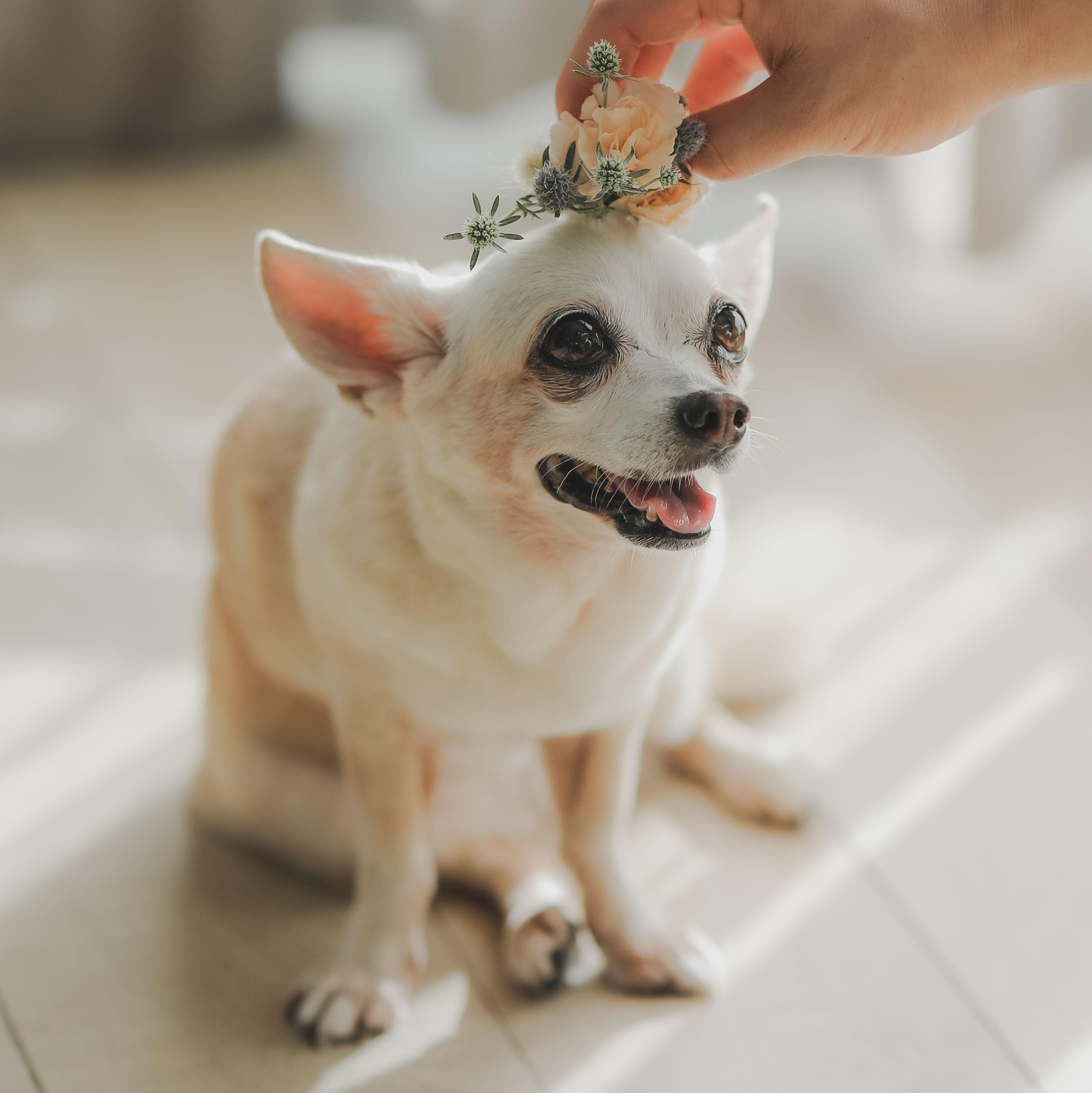 Juju has been the constant in my life since 2010. I got lonely in grad school, so I impulsively entered my credit card number on a puppies-for-sale website, and a week later, she was delivered to my door in a pink crate. That's not how I'd recommend anyone get a puppy, but I hit a jackpot. She's the sweetest Chihuahua; you're likely never to hear her bark. I'd like to think she's proof that I'd make a great mom, although I'm only ever willing to raise puppies, and never babies. She's quite the global citizen, calling Ann Arbor, Pittsburgh, Bangkok, and Los Angeles home, and she goes "everywhere" with me. She'll be our ring bearer, but since she's 15 years old and has lost much of her hearing, she may need a bit of your help finding her way down the aisle.