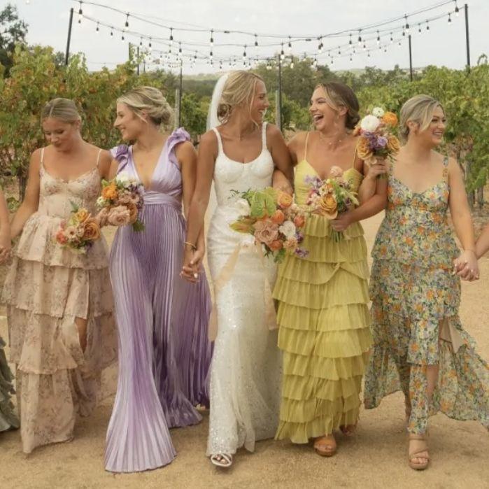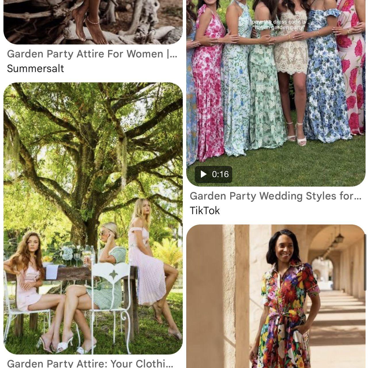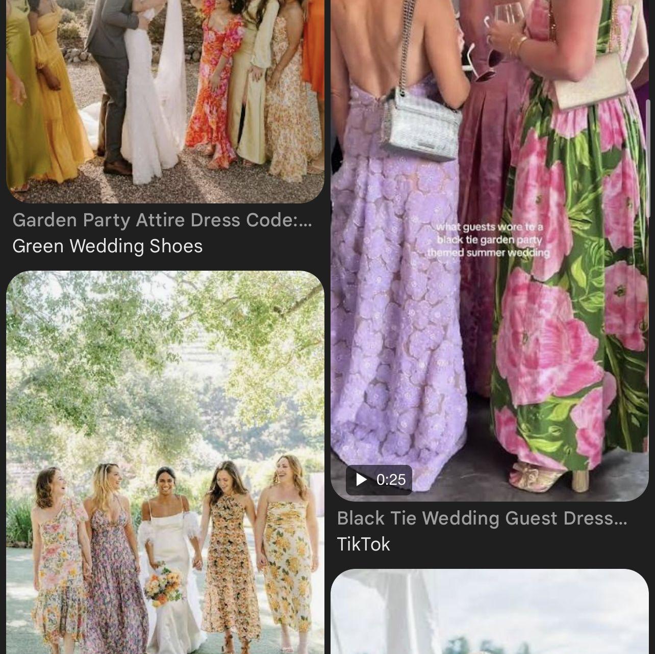 Ladies you can wear floor or mid length dresses of anything floral, or any summer or pastel colors, but please no white.