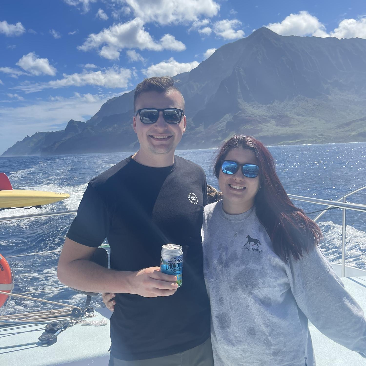 Alex came to visit Jackie in Hawaii in February 2024. They decided to do an overnight trip to Kona on Big Island to see the Manta Rays. Since snorkeling with the Mantas is a night activity, they decided to go watch the sunset. While watching the sunset, Alex dropped down on one knee and asked Jackie to marry him. She said yes and the rest is history.
