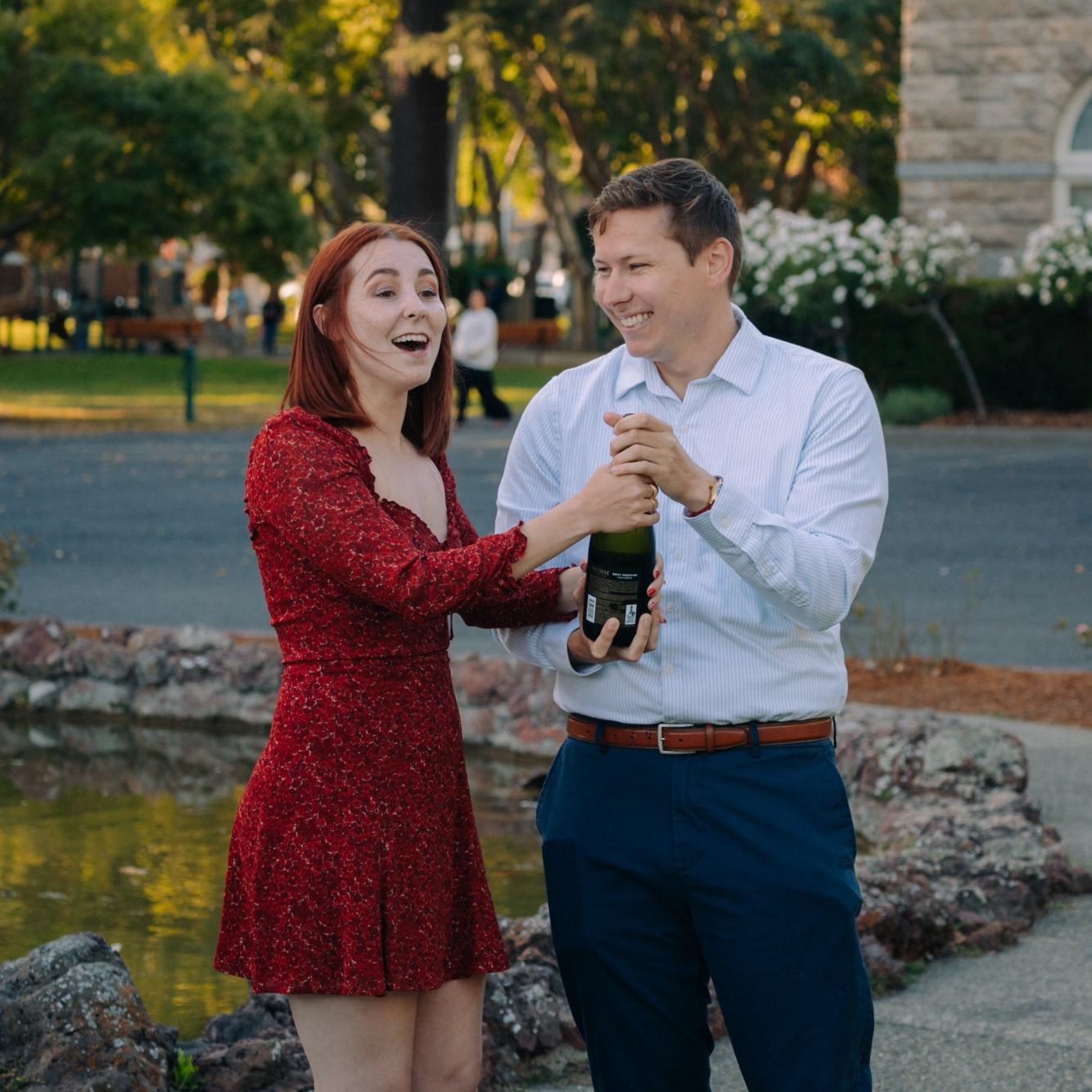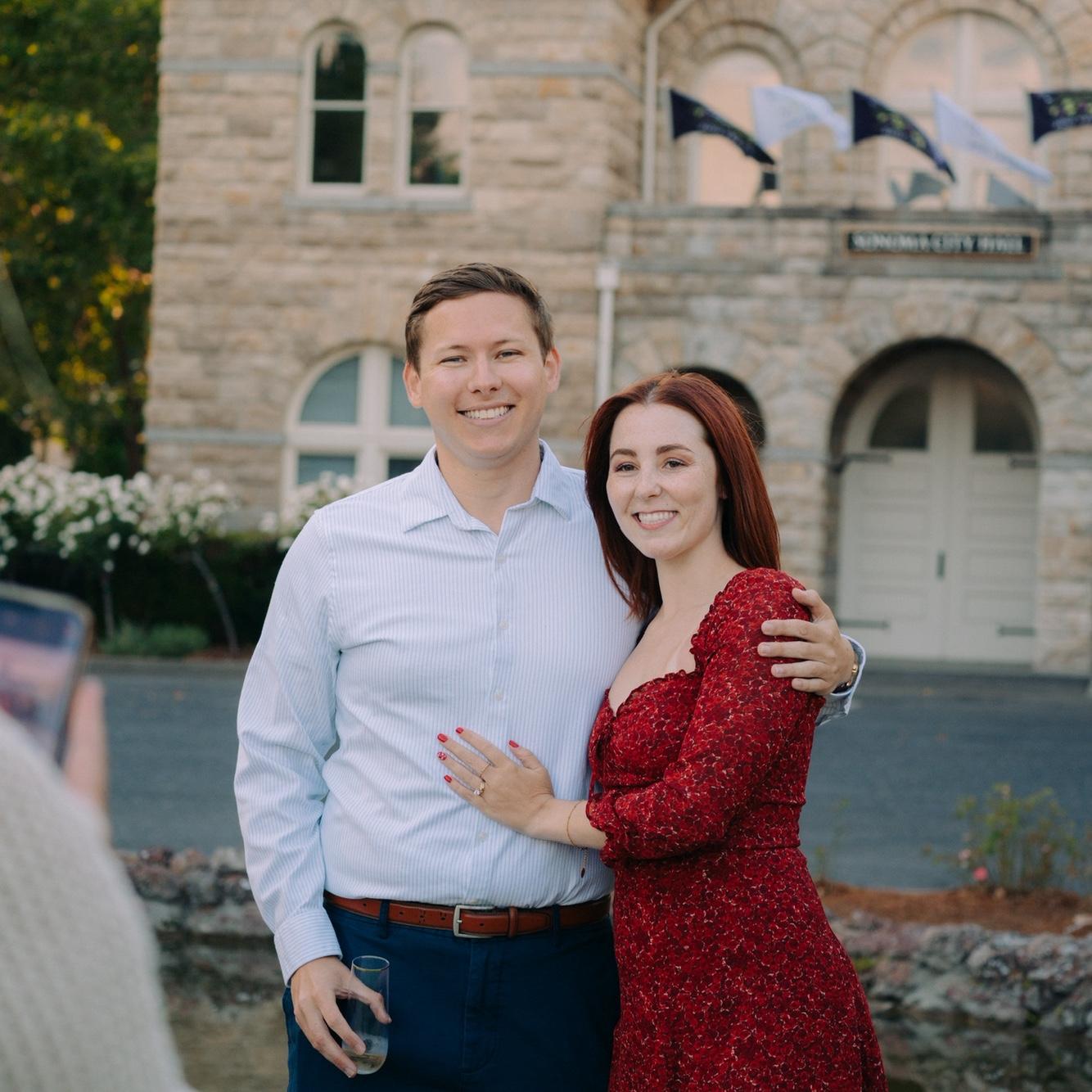 Jake proposed in the Sonoma Square on July 25, 2025