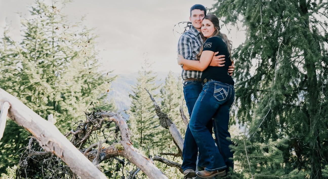 Dating for almost four years, James went on a camping trip with Catherine and her family. After three days of camping, James took Catherine on a RZR ride (off road side by side) into the mountains to look for morel mushrooms. During the expedition, Catherine found the most gigantic morel she had ever found in her life (basically the size of a football). While Catherine was distracted, James went off into the woods and called for Cat, saying "I found one!!". Catherine followed James' voice into the forest, and she found him on one knee, and the ring on a morel.