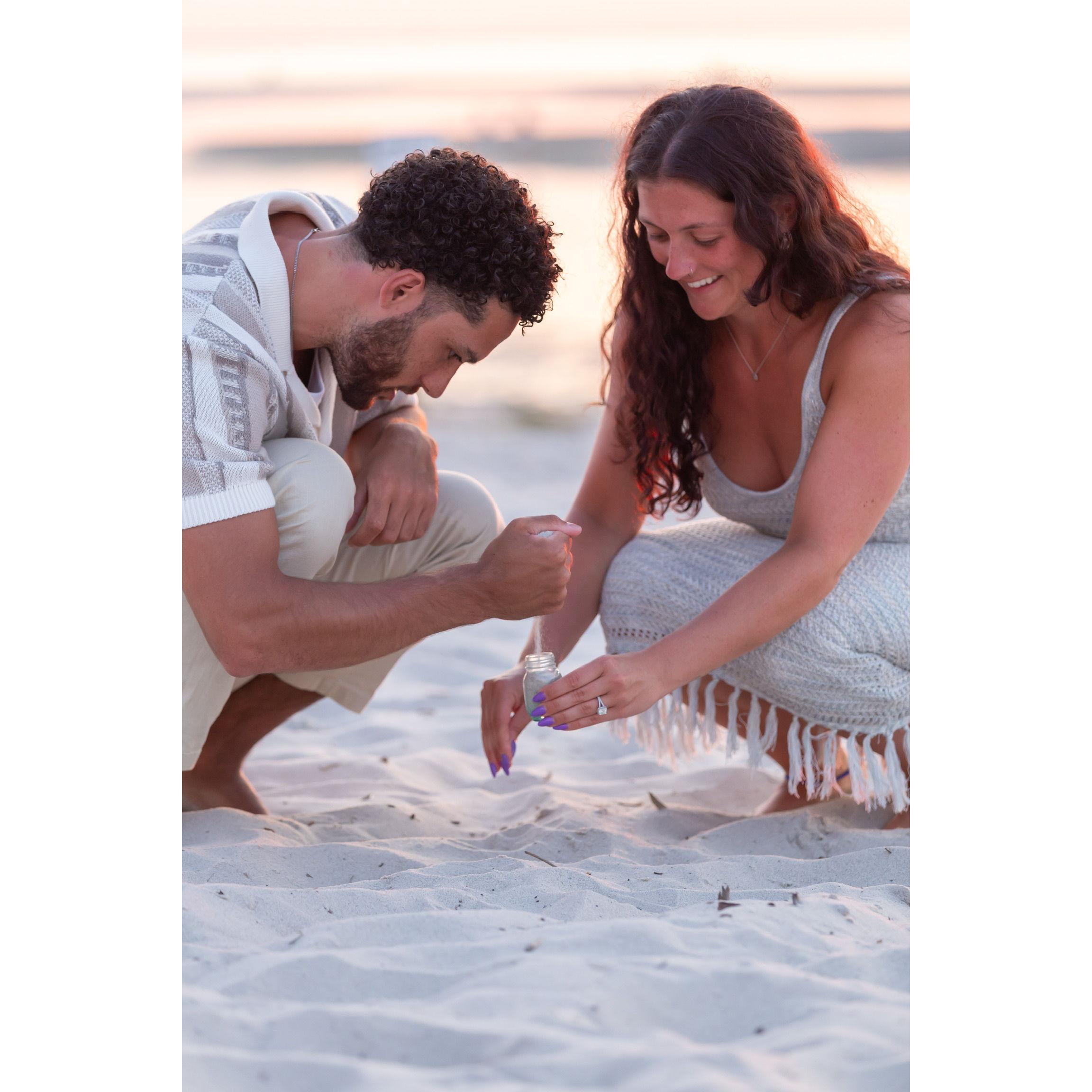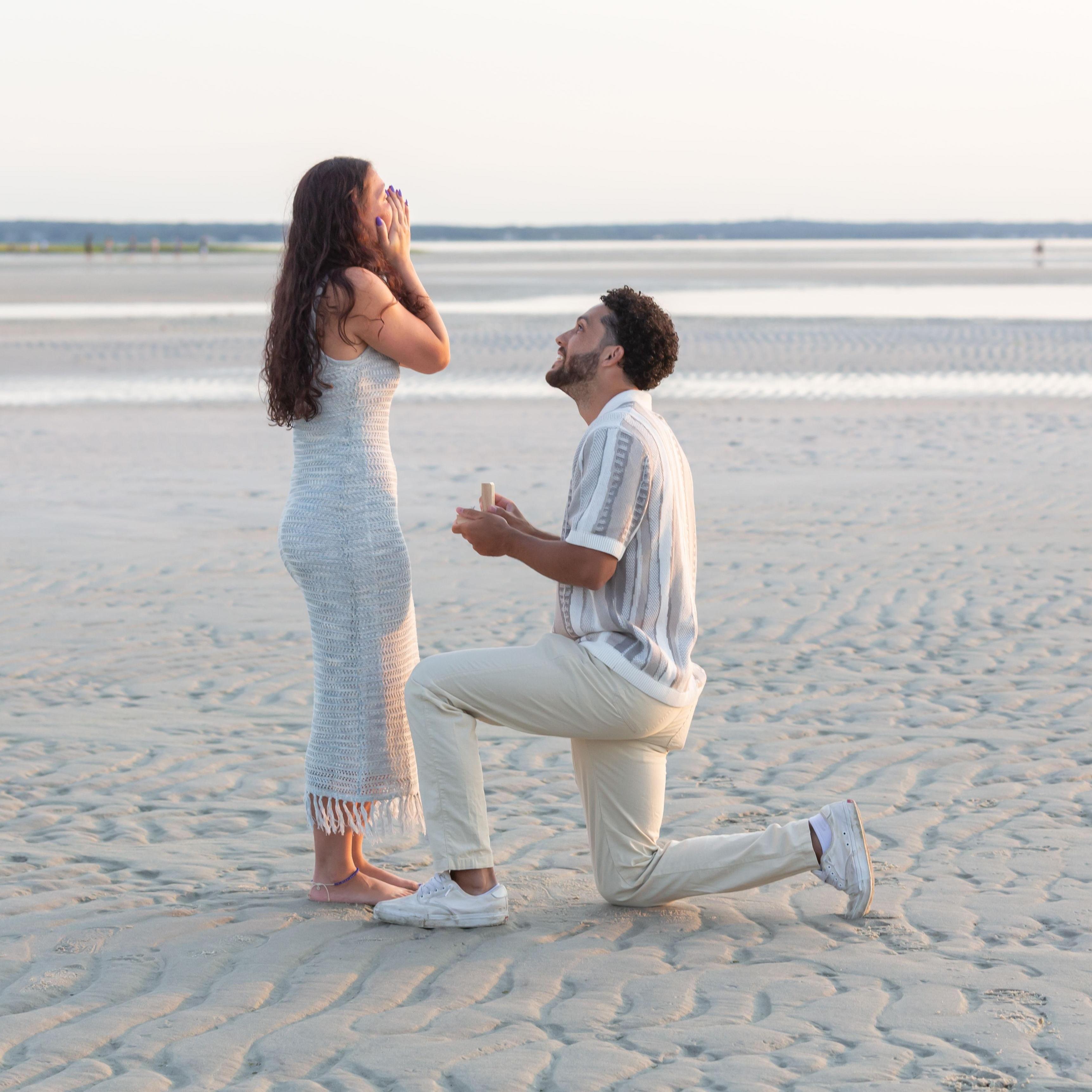 Here are some of our engagement photos taken at Mayflower Beach in Dennis, MA on July 26, 2024!