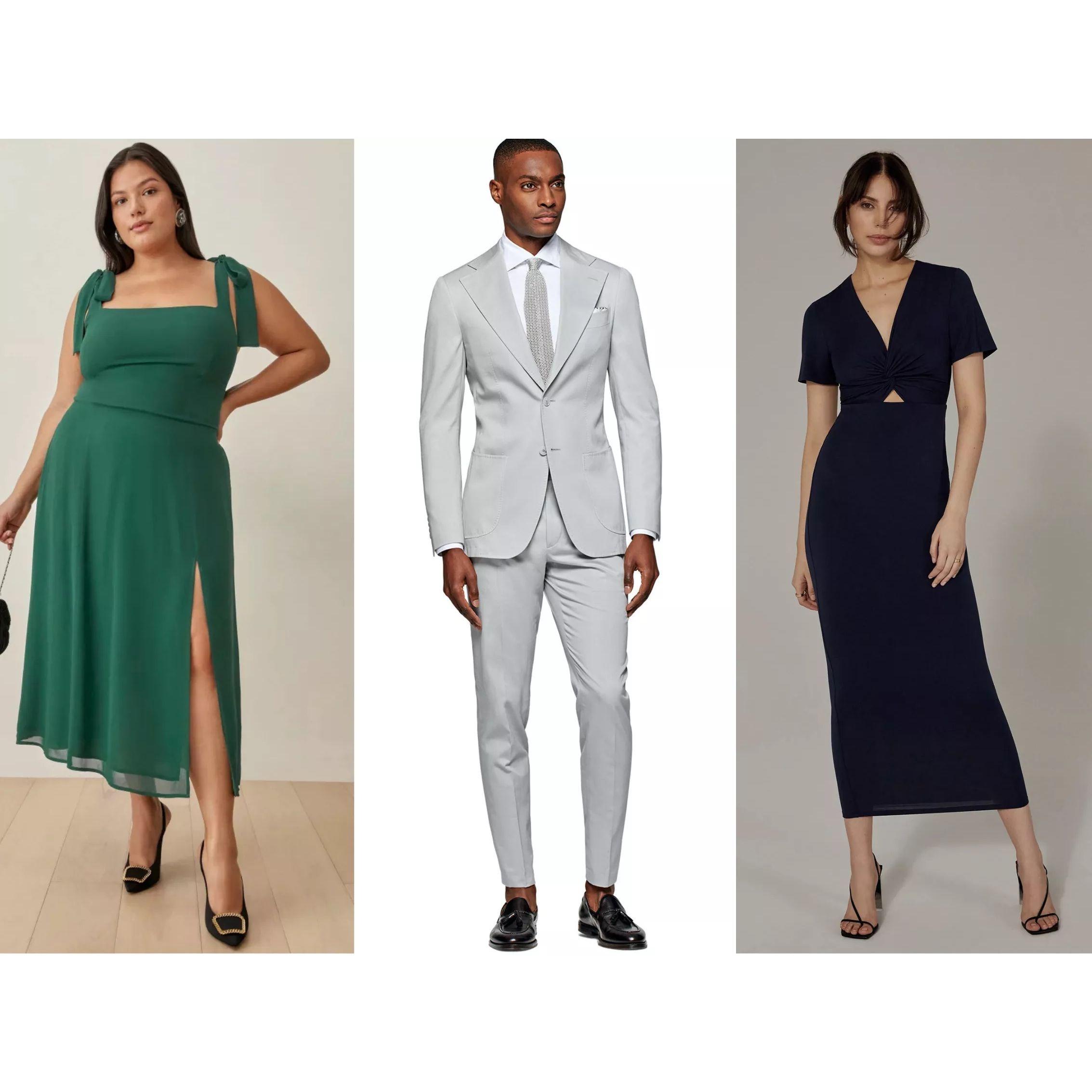 Our ceremony and reception will be held outdoors on the Egyptian Patio and Rose Garden of the Darlington House. We suggest that men wear a suit+tie with dress shoes and women wear a cocktail, mid-, or floor-length dress with formal shoes. Please find the visual inspos below.