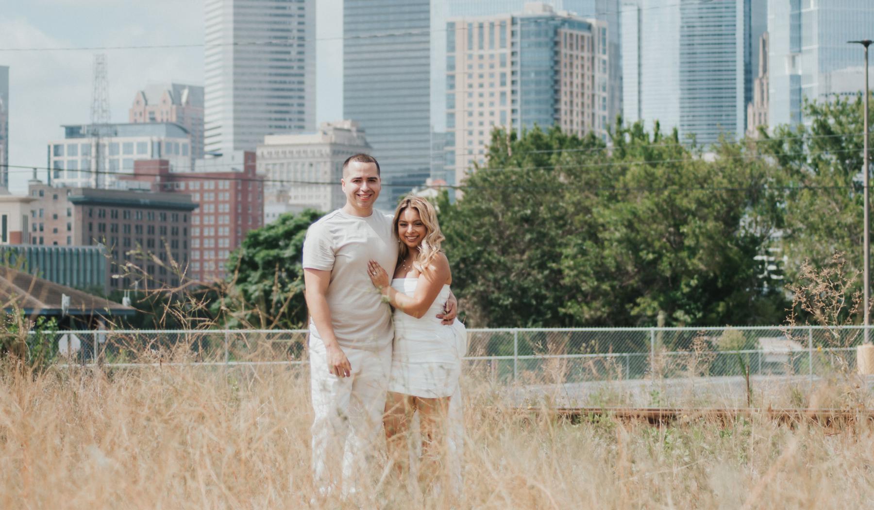 On May 20, 2023, Alberto took me to dinner and after created a mini scavenger hunt for me to do. He took me to Buffalo Bayou Park, and my first hint was a key. We went to the love lock bridge, created goals for ourselves and locked them in with our lock. After, I was led to the park where we sat and enjoyed the skyline view. After a while, I stood up with my back towards him and when I turned back around, he was on one knee! We are so excited to start our new journey together.