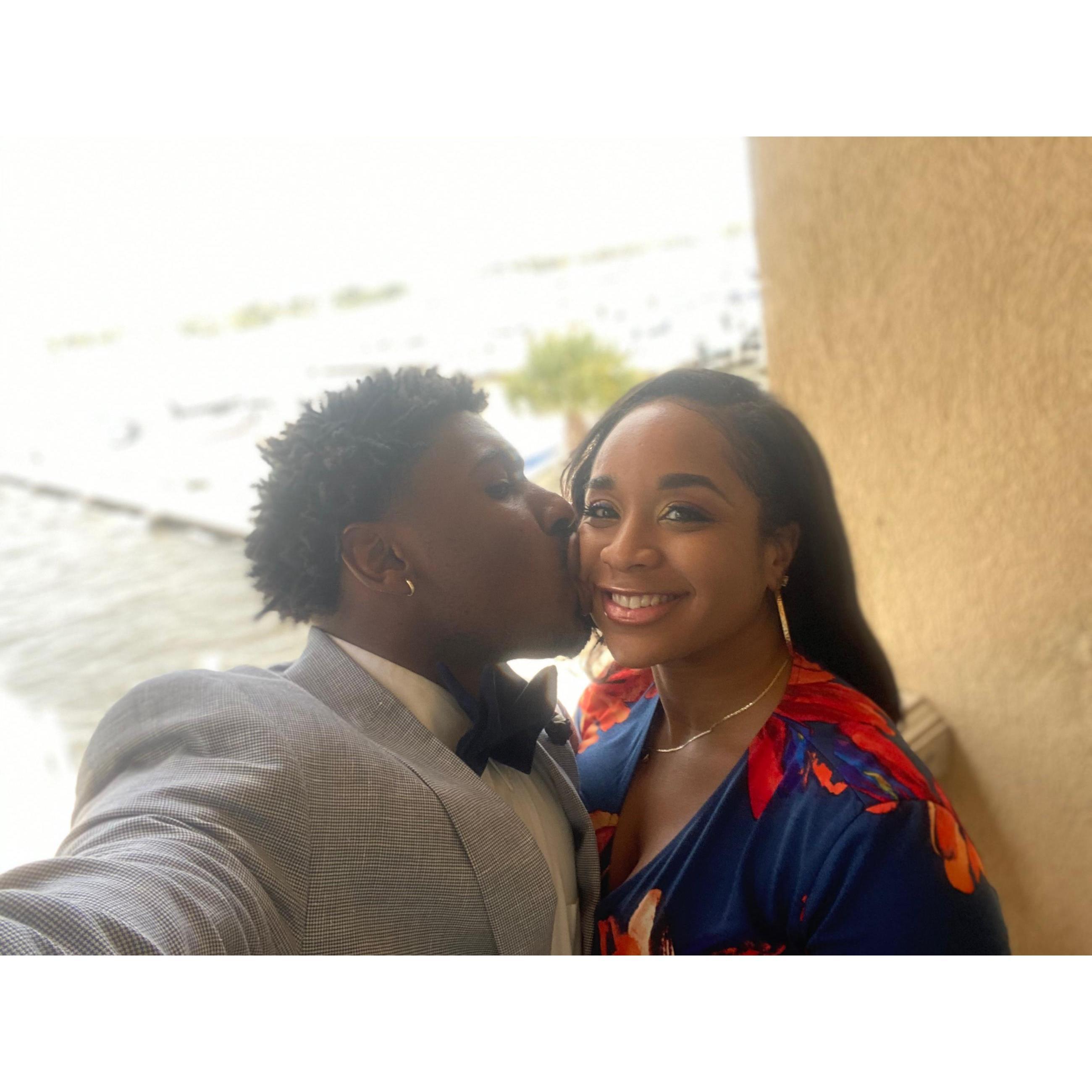 The 1st kiss after he proposed at the Memphis Botanical Gardens