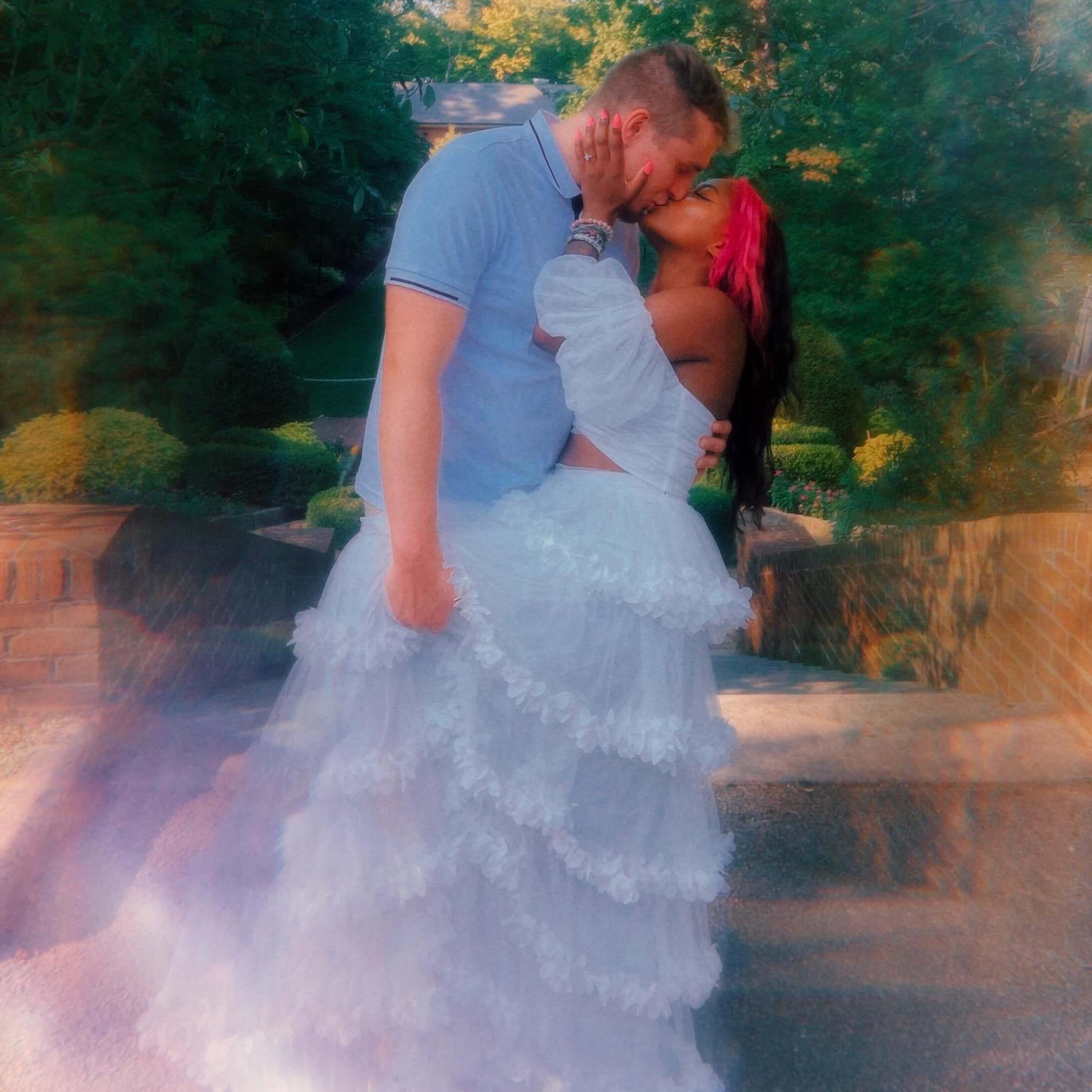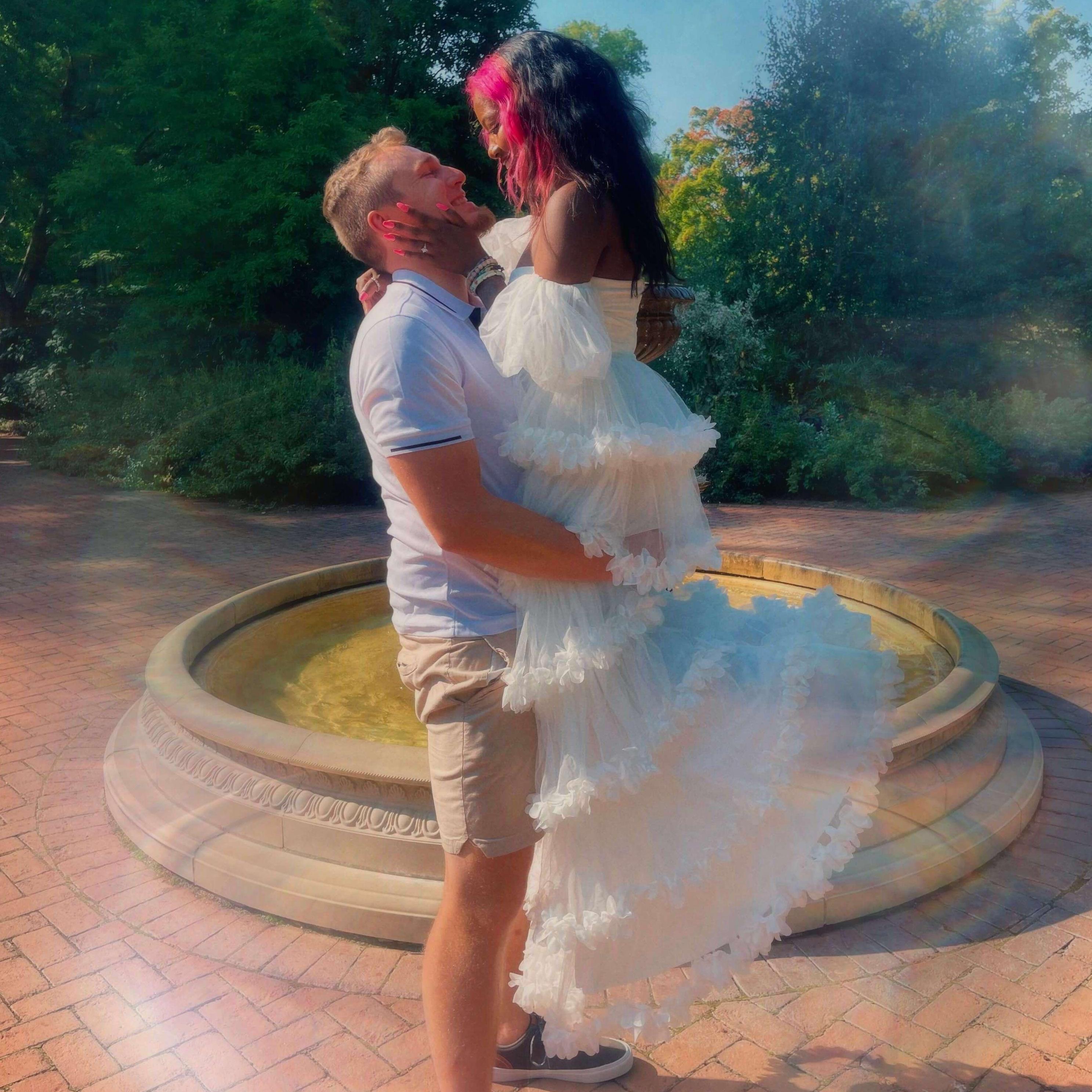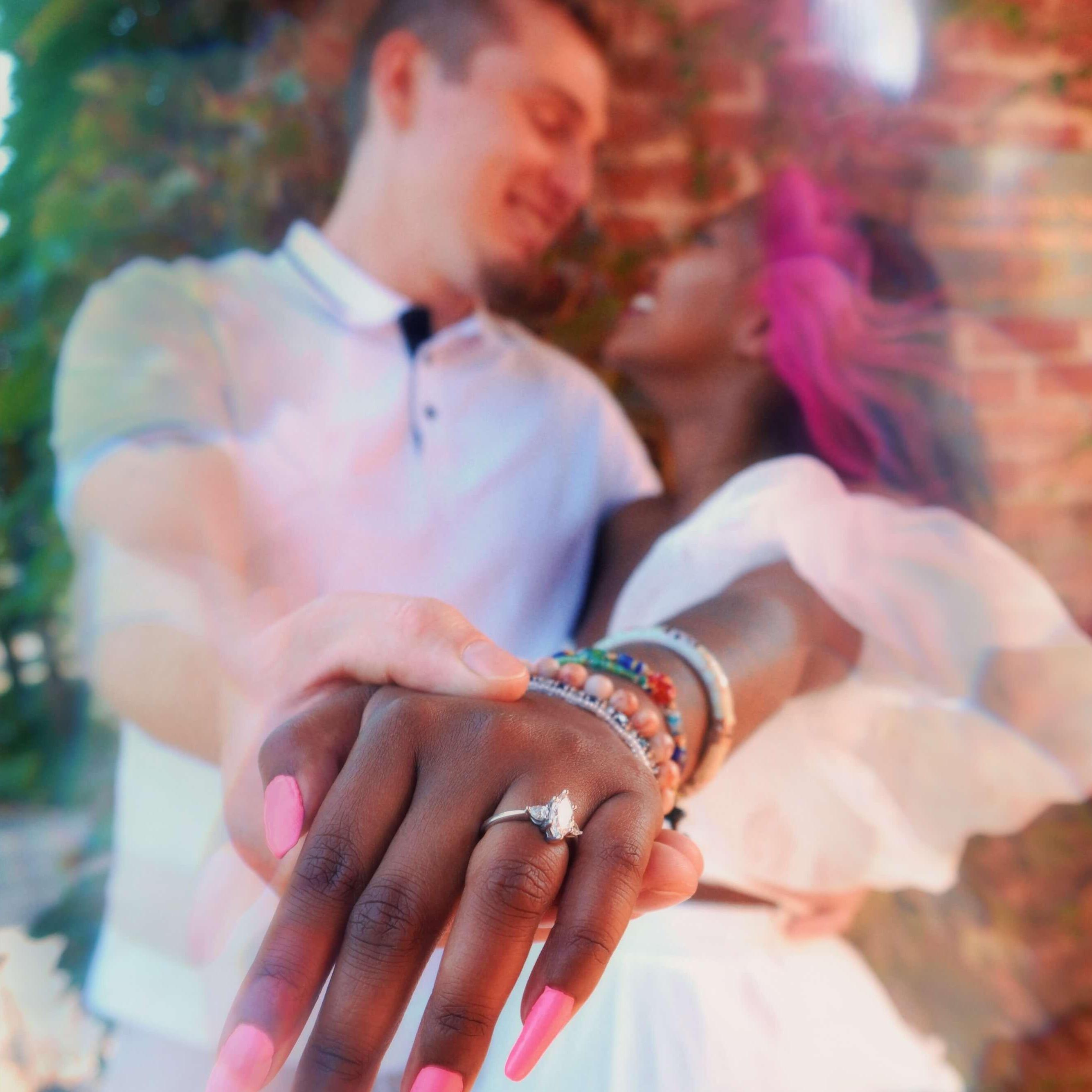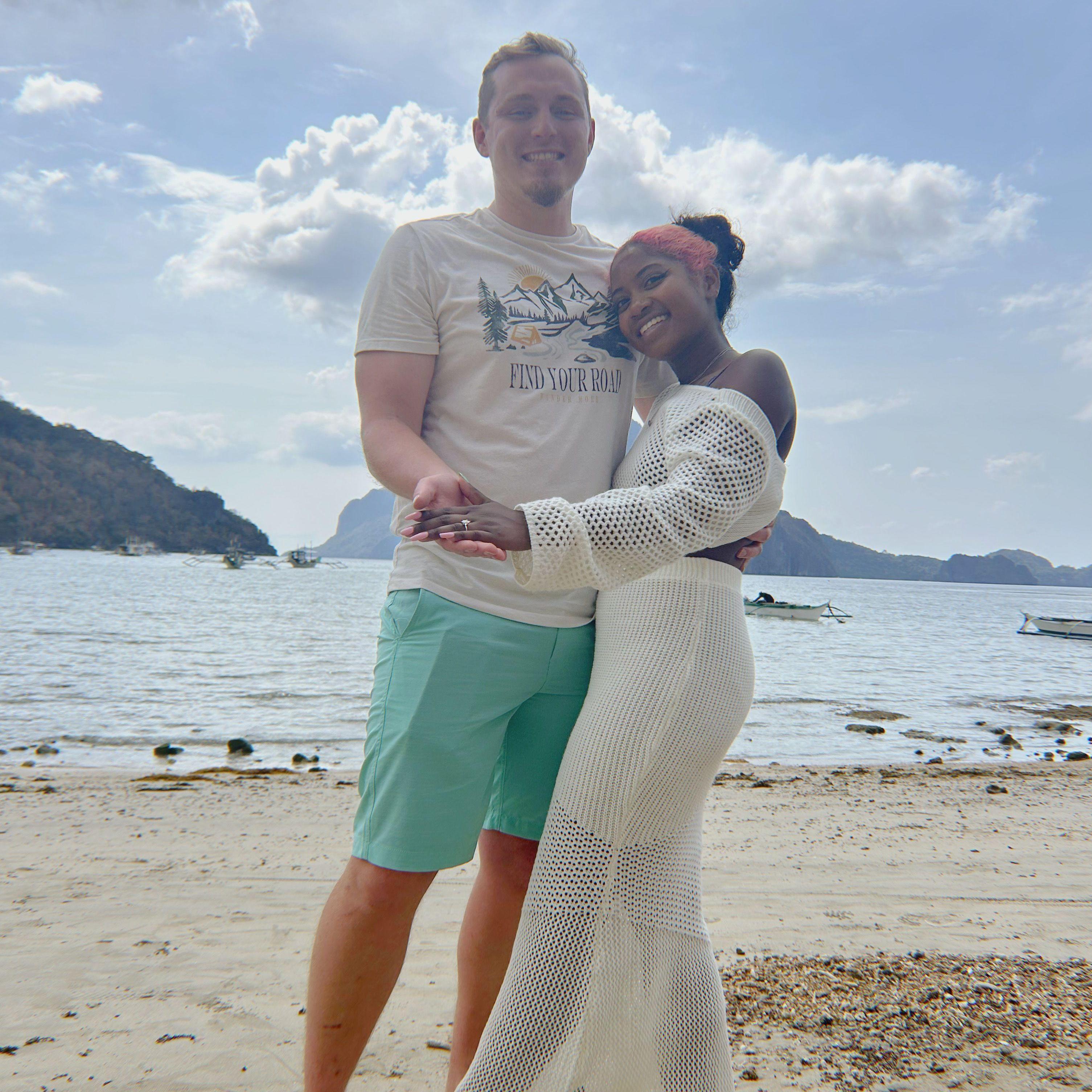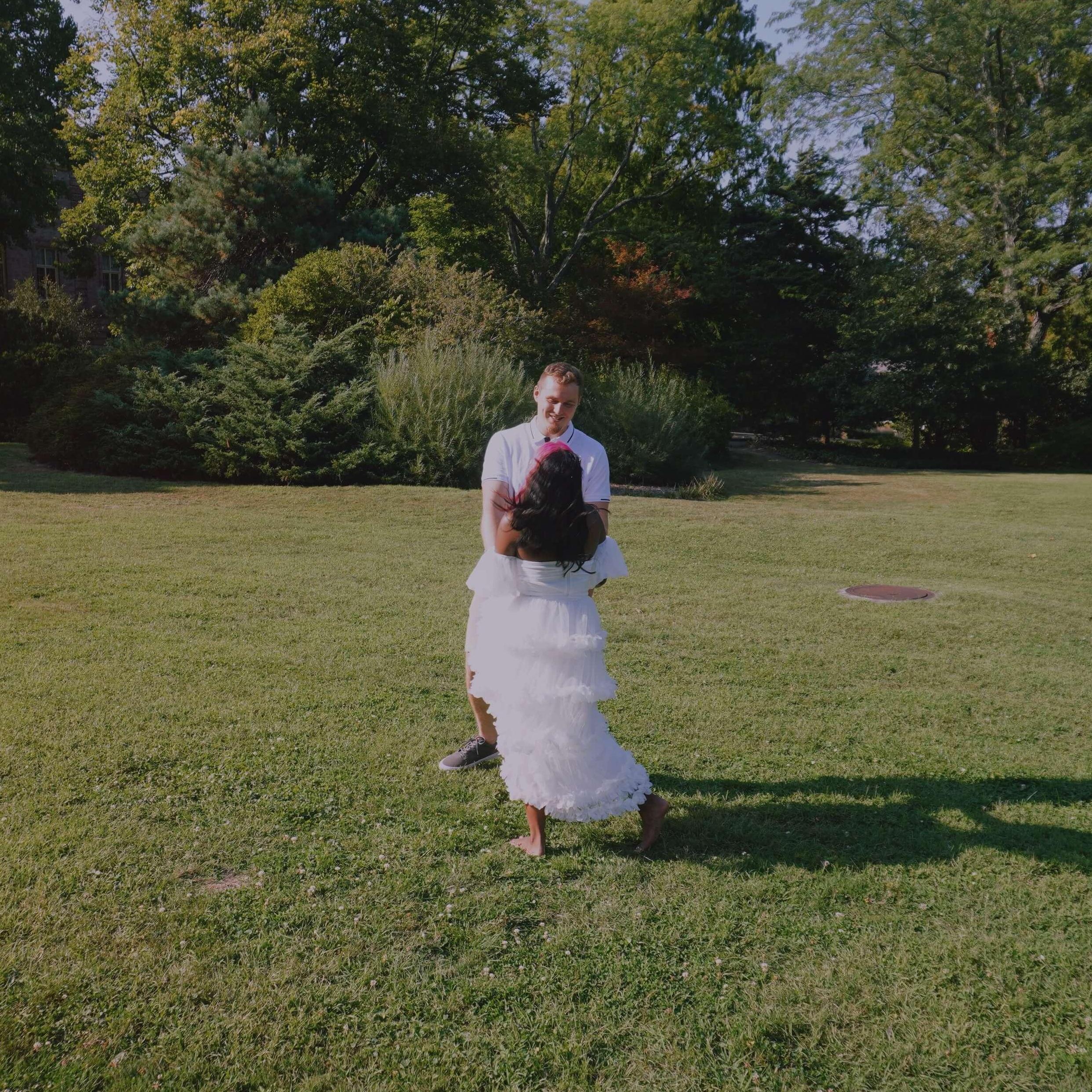 Known as the "Tinderella" couple. Jasmine and Ian were a part of the first wave of dating apps coming to light, at the time, Tinder was quite popular. Jasmine does not remember swiping right on Ian's profile but remembers the first photo of Ian, he was taking a selfie, in his captain america tee shirt with his school bag. The conversations flowed so smoothly, and Jasmine ended up asking Ian out to a double date at the movies. Ian and Jasmine lived about 45 minutes apart but that did not stop Ian from traveling to her. On date day, the other couple couldn't make it, thus making it only a date between them. Some may say a movie date as the first date is not the best but we had a blast (basically talked throughout the movie), Ian almost hesitated on kissing Jasmine at the end of the night but she hugged him a lil longer to say it was okay and quite literal sparks flew, even people in the parking lot began cheering our kiss. And thus began our journey!