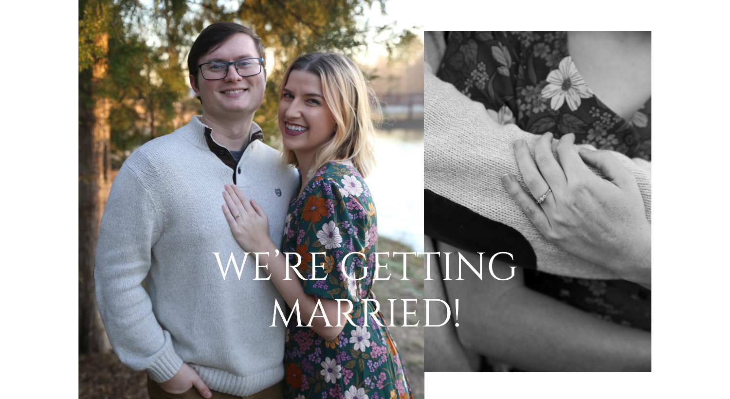 Right before the pandemic forced us all into our homes indefinitely, we had several of our closest friends visiting us in Raleigh, NC for the weekend. Jason and our good friends, Zac and Josh, had put together a slideshow of their recent trip to Iceland and were very adamant that we watch it all together that night (I was the only one not picking up on context clues). The slideshow ended with a video showing the Icelandic coast that panned to a group of rocks that the boys had arranged to spell out "Marry me?" - I, completely shocked, turned around to see Jason down on one knee. It was beautiful, intimate, and the perfect ending to a great weekend. 2020 may have sucked, but getting engaged was definitely the highlight of our year!