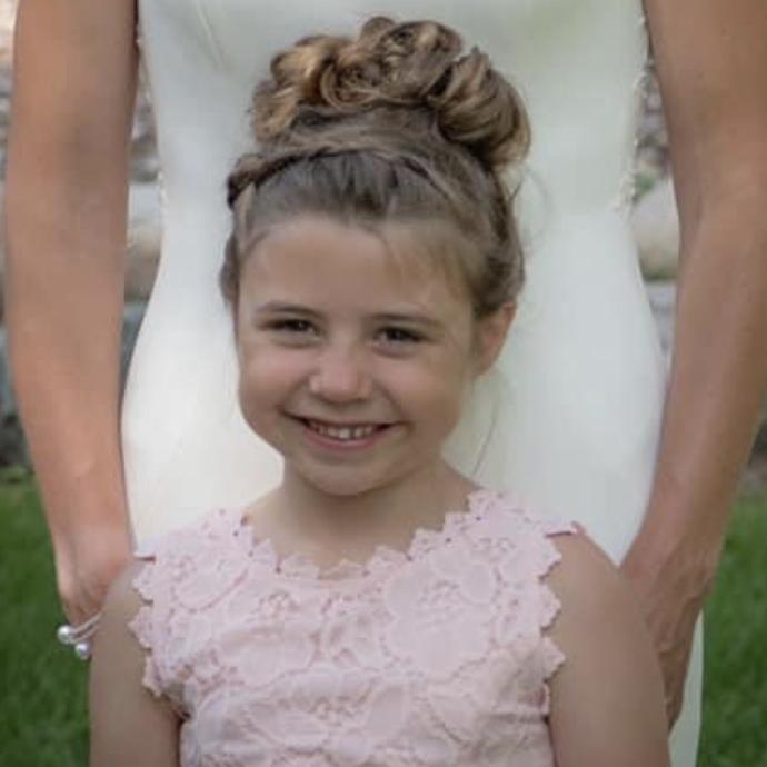 Daughter of Matron of Honor, Stephanie Simms. She is 7yo and loves swimming, skiing, going to the cabin & drawing!