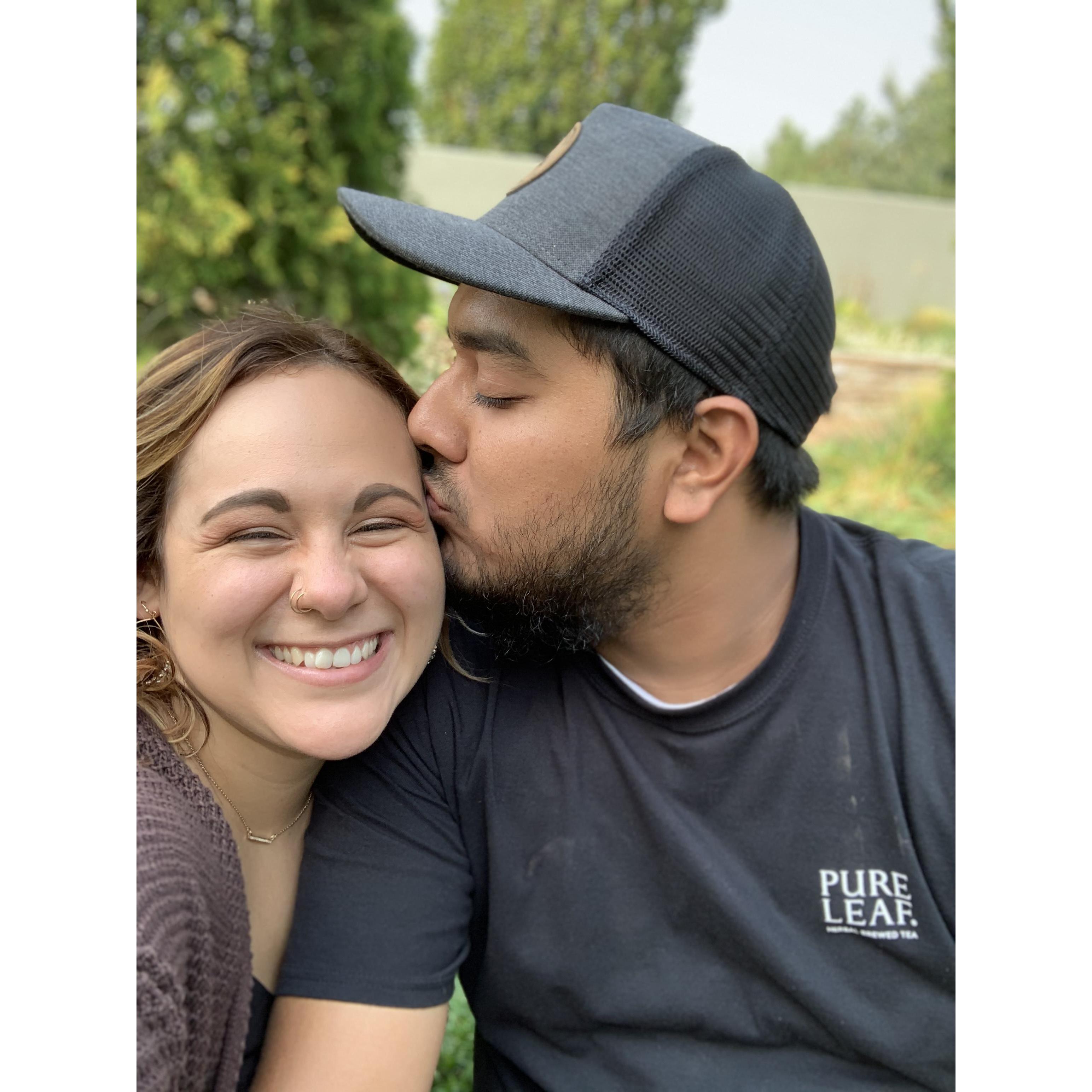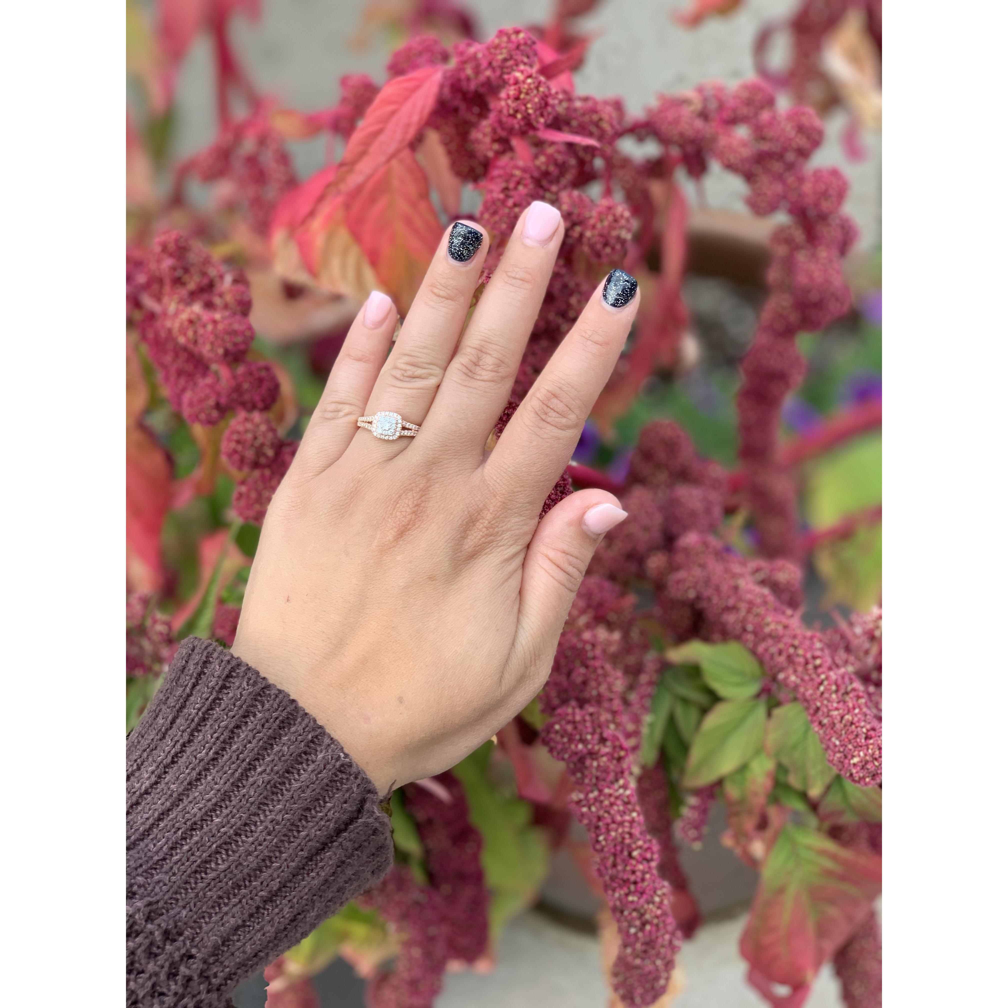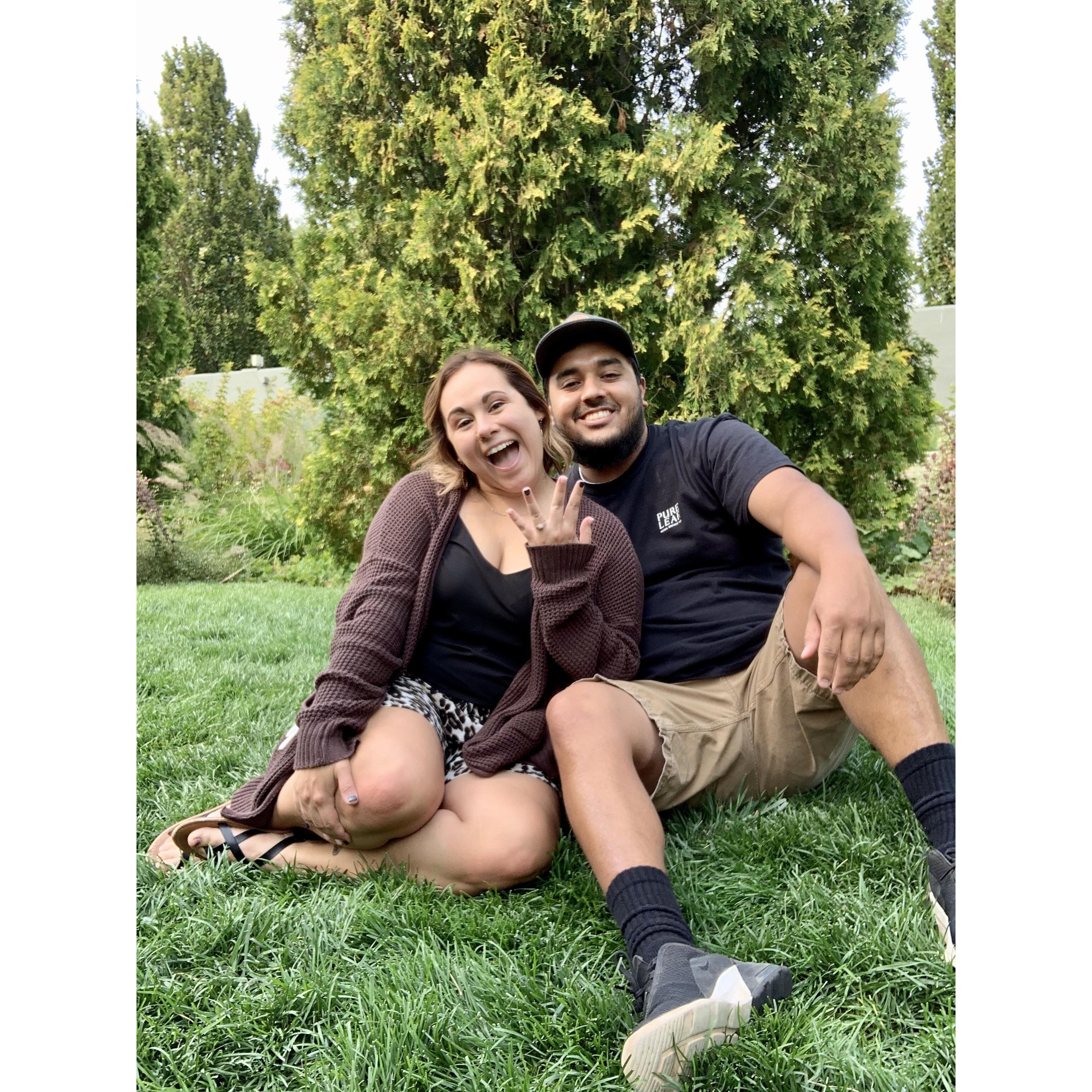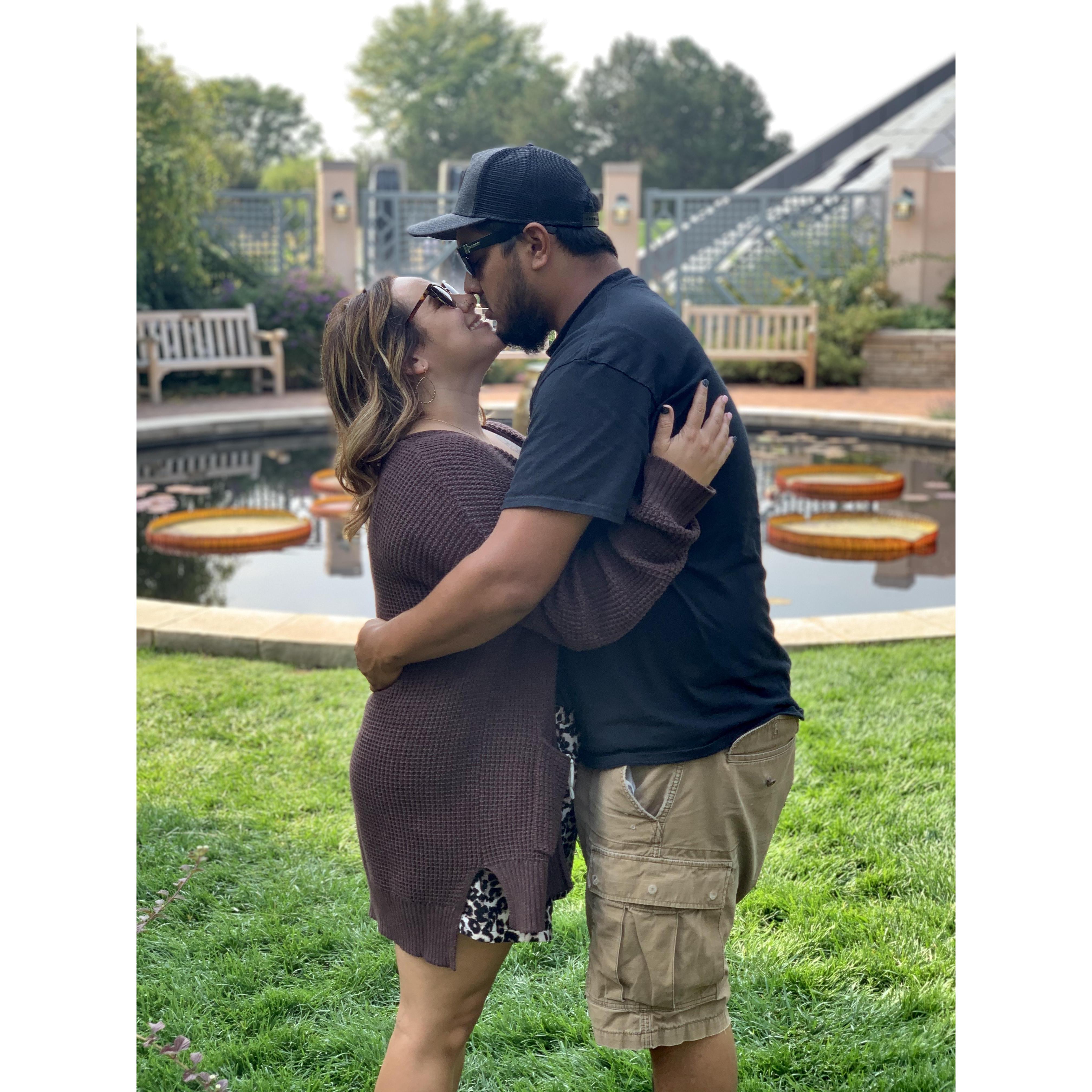We got engaged September 18, 2020 at the Denver Botanical Garden. We went on vacation there with his older sister, Chloe. Thank goodness she was there too because she was able to capture it and be our photographer after.