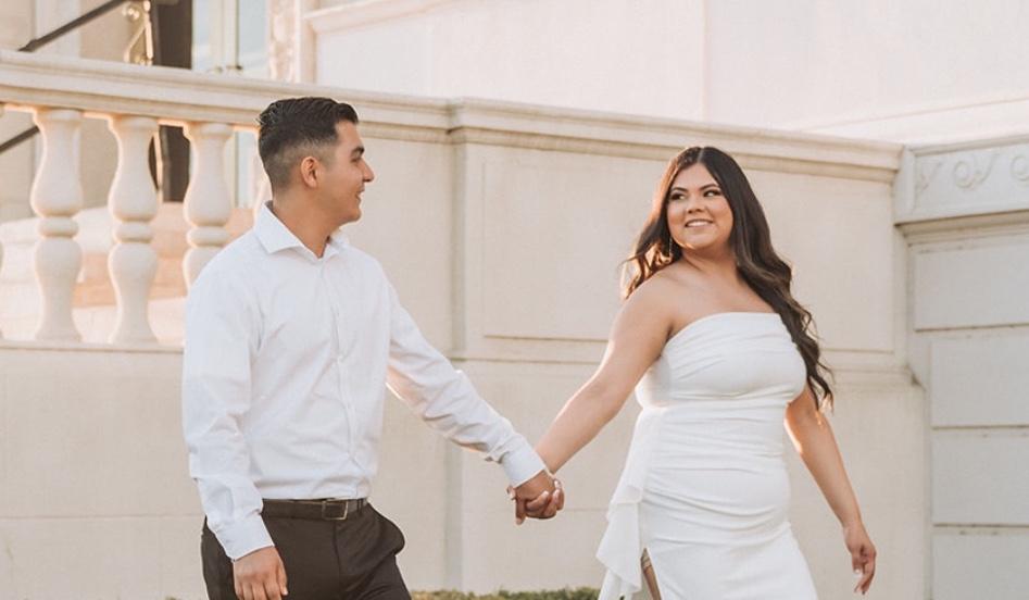 Julian and Jazmin's story begins in the Fall of 2019. The first time Jazmin & Julian met was while house sitting and threw a small party. Jazmin was invited but had second thoughts on going since she didn’t know anyone that was going. Her best friend Ale convinced her to go for a little bit. Over that year, their friend group grew but they would rarely talk to one another. As they got to know each other more, Julian wanted to be more than just friends; but Jazmin was not ready for a serious relationship at that time. Julian got tired of waiting around for her and ended up entering into a relationship of his own in the spring of 2021, but that ended shortly after. Julian eventually left for Fresno State in the fall of 2021, while Jazmin was attending CSUB at the same time. Because of the distance, Jazmin was hesitant on taking the next step with Julian. Over the summer of 2022, Jazmin and Julian started getting closer. Taking trips. Dodger games. Cruises. And with that, feelings grew stronger for one another. While in Fresno, Julian invited Jazmin to a football game in September 2022. After a day of hanging out, Jazmin realized on her way home that she was ready for something more serious with Julian. A couple days after talking about being in a relationship with each other, Julian asked Jazmin, on September 19th, 2022, to be his girlfriend by surprising her with a proposal. Jazmin graduated in May of 2023 and Julian graduated in December of 2023. Julian ended up getting a new job at the beginning of 2024 and knew that he was ready to propose, right then and there. With only a week of preparation, he proposed on the beach in Malibu, CA. We are excited for this new chapter in our lives and cannot wait to celebrate our love with the most important people to us!