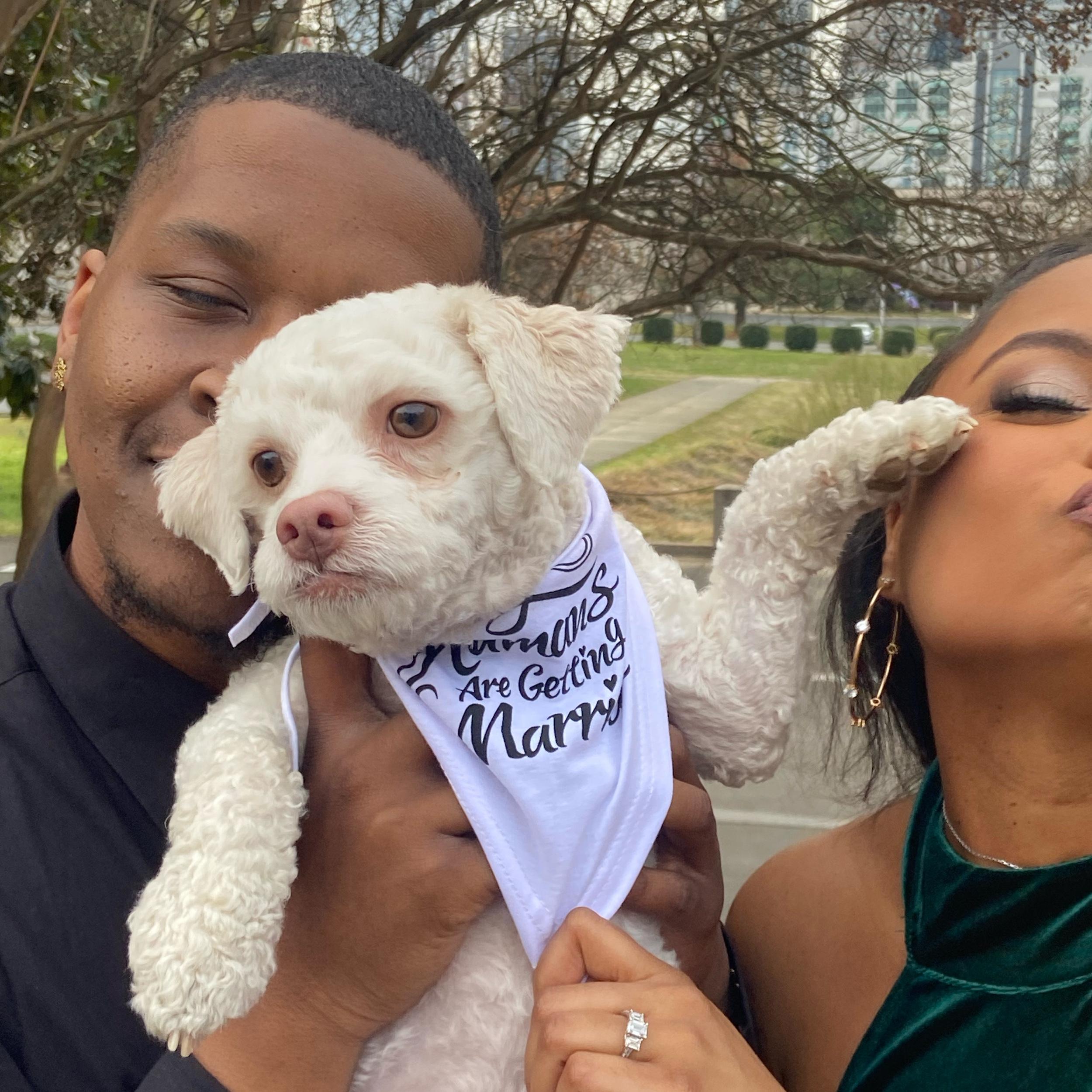 This 2 year old pup arranged this whole engagement and wedding. He told Jamario which ring to get for his mommy and how to ask her. Loki told Jazmine how the wedding should look, the food, the drinks, the whole vibes and even picked out Jazmine's dresses. Even though he can't physically be there for the wedding his presence will be loud and clear. Loki loves his mommy and daddy so so much and is excited that that will become one! ❤️🐾