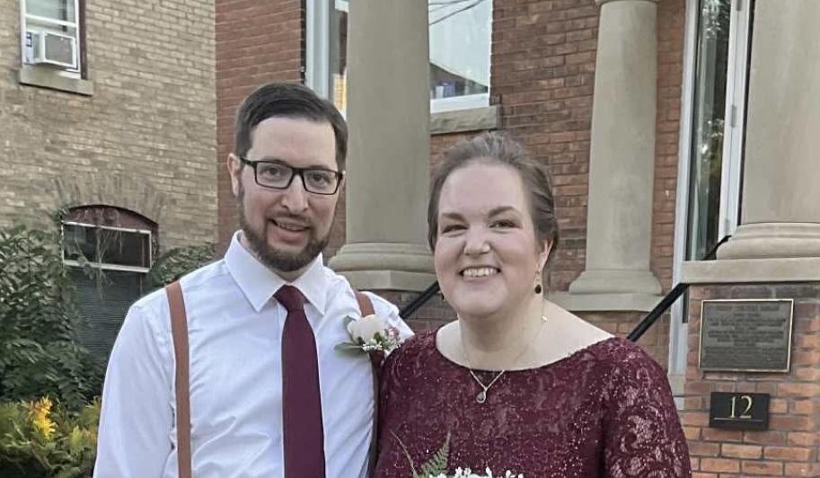 We first crossed paths in October 2019 on the dating app Plenty of Fish. Brendan sent the first message—having no idea it would change both of our lives forever. Conversation came easy, and before long we’d moved from the app to texting each other every day. After a few scheduling hiccups, we finally (and nervously) met in person. The plan was dinner and a movie at Jenn’s place… but we never did watch the movie. Instead, we stayed up talking about everything from favorite films to primordial pouches. The spark we felt online was just as strong in person, and we both knew right away that this was something special. Fast forward to November 2021: after Jenn came home from a long 12-hour shift, Brendan surprised her with a homemade dinner and a proposal in the comfort of our home. He had picked out an onyx engagement ring, and of course Jenn said yes! On September 13, 2025, we tied the knot in a small private ceremony in Forest, Ontario. It was the perfect day for us, and now we’re so excited to share the celebration with all of you at our Happily Ever After Party!
