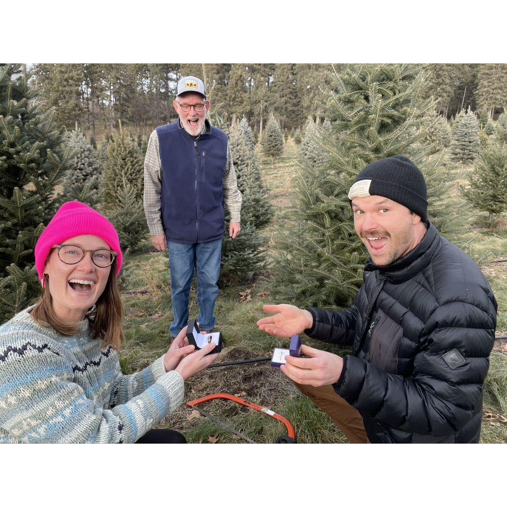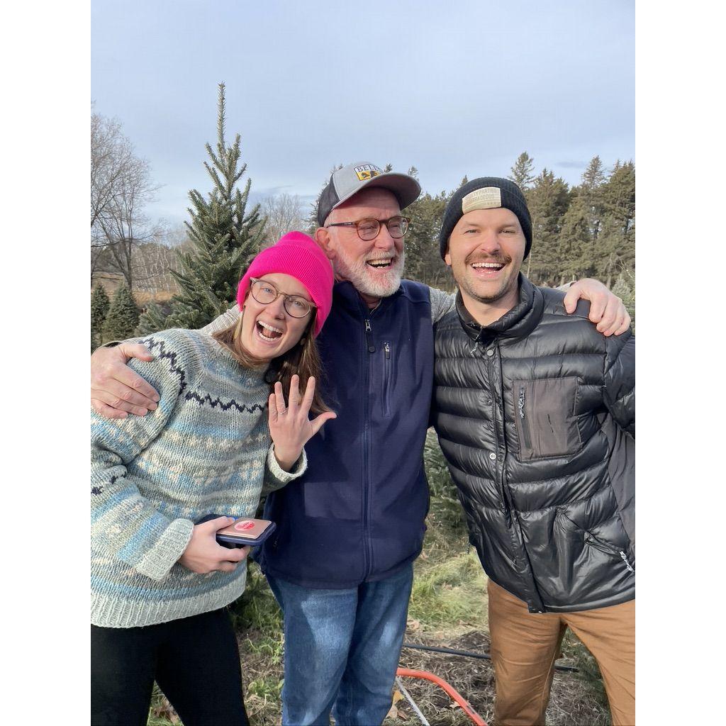 Our Proposal - Because both of us knew we wanted to grow old together already, we decided someone needed to be surprised when we proposed. We plotted the event for when we were out chopping down a Xmas tree with my parents. Joe "found" some presents under our chosen tree, "Woah! There are presents under here! Look at what Santa gave us!" ..... They sure were surprised. Love that we got my dad's expression on camera!
