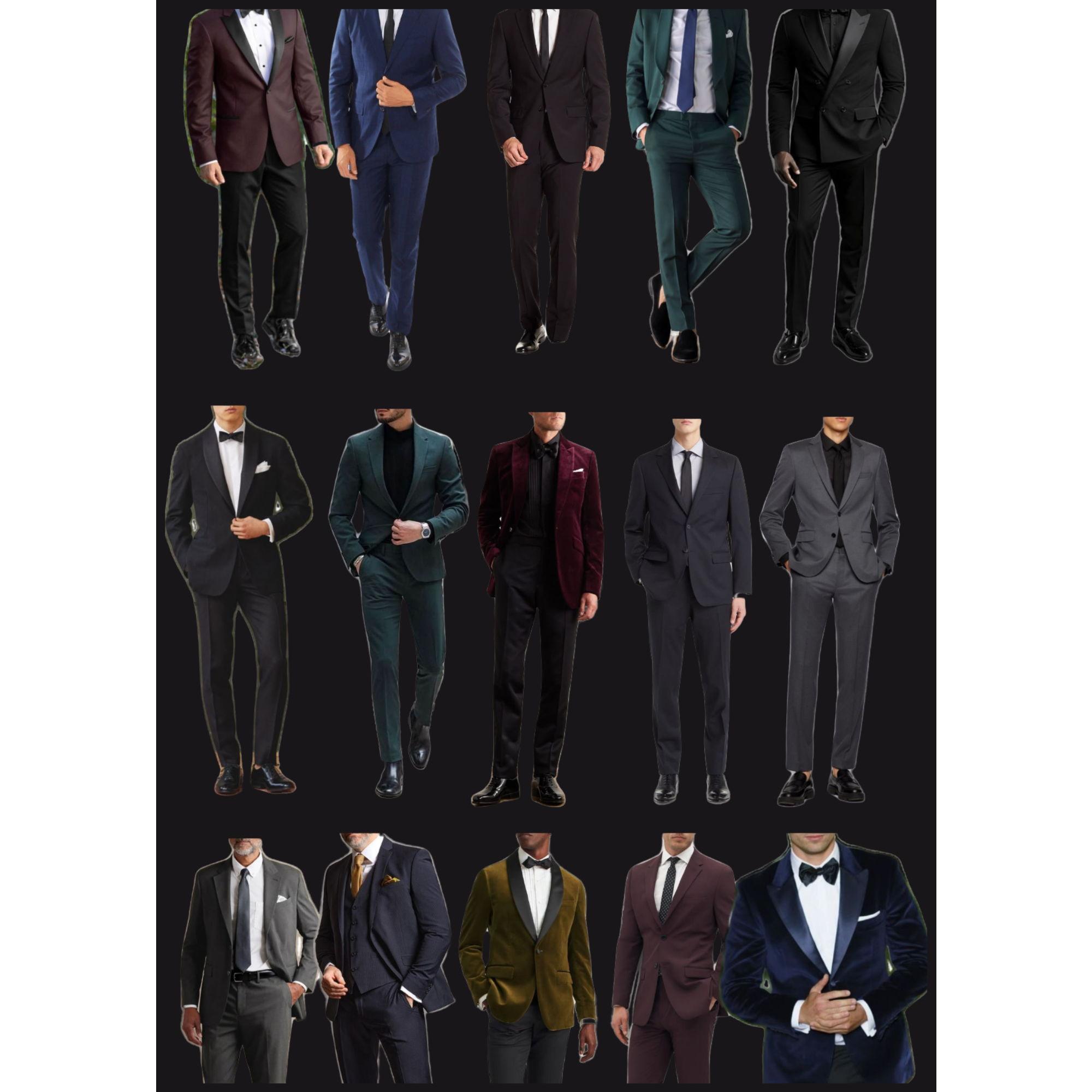 For the gentlemen: A classic black tuxedo, or a sleek black suit is always a great choice. Navy, charcoal, or burgundy are also nice options if you want to add in a little color!