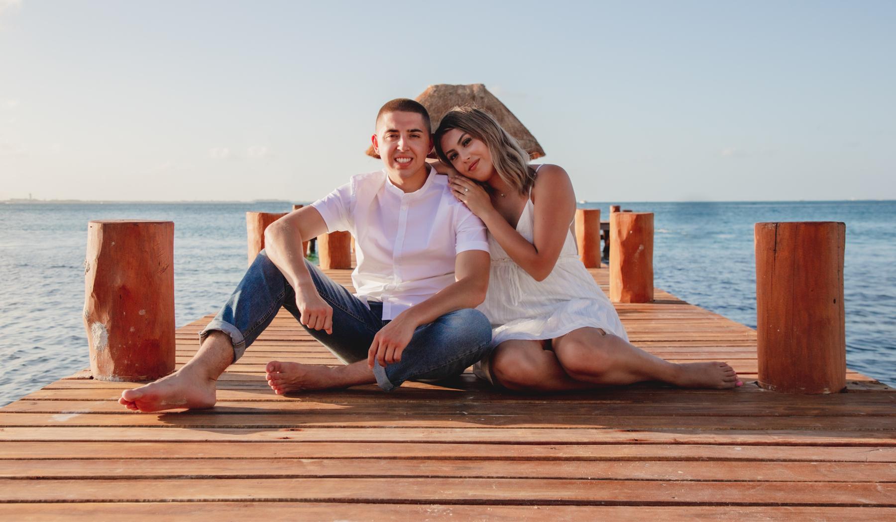 Last May we decided to take a vacation to Cancun, Mexico. Jhaylanny had planned a photo shoot for the two of us on the beach during our stay. Justin had kept the engagement ring hidden in his pocket during the 5 hour flight and somehow managed to keep it hidden once at the resort. The time had come for our photoshoot, and while Jhaylanny was getting ready, Justin went down to the lobby and planned out the entire proposal with the photographer. During the photoshoot, the photographer walked us over to a private doc and had Justin stand behind Jhaylanny for a photo. The photographer directed Jhaylanny to face toward the ocean while Justin stayed standing behind her. When the photographer told Jhaylanny to turn around, she found Justin on one knee holding a small black velvet box containing Jhaylanny’s dream ring. The whole proposal was very intimate and breathtaking. Cancun is a very special destination that holds a lot of meaning for the two of us. This explains why we chose to get married here on the same exact date just one year later!