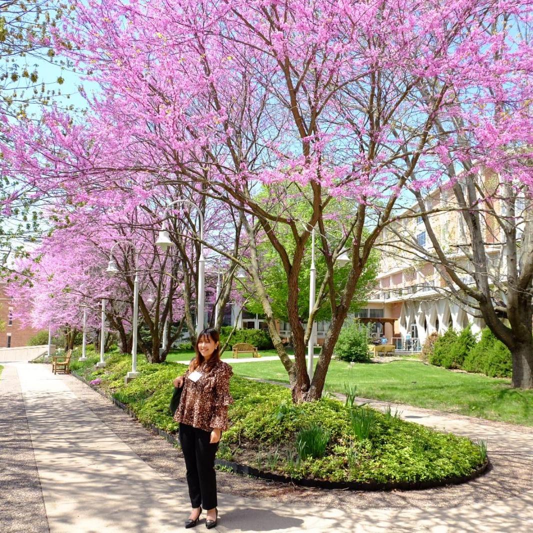 A typical yellow bus. Pei's trip to US