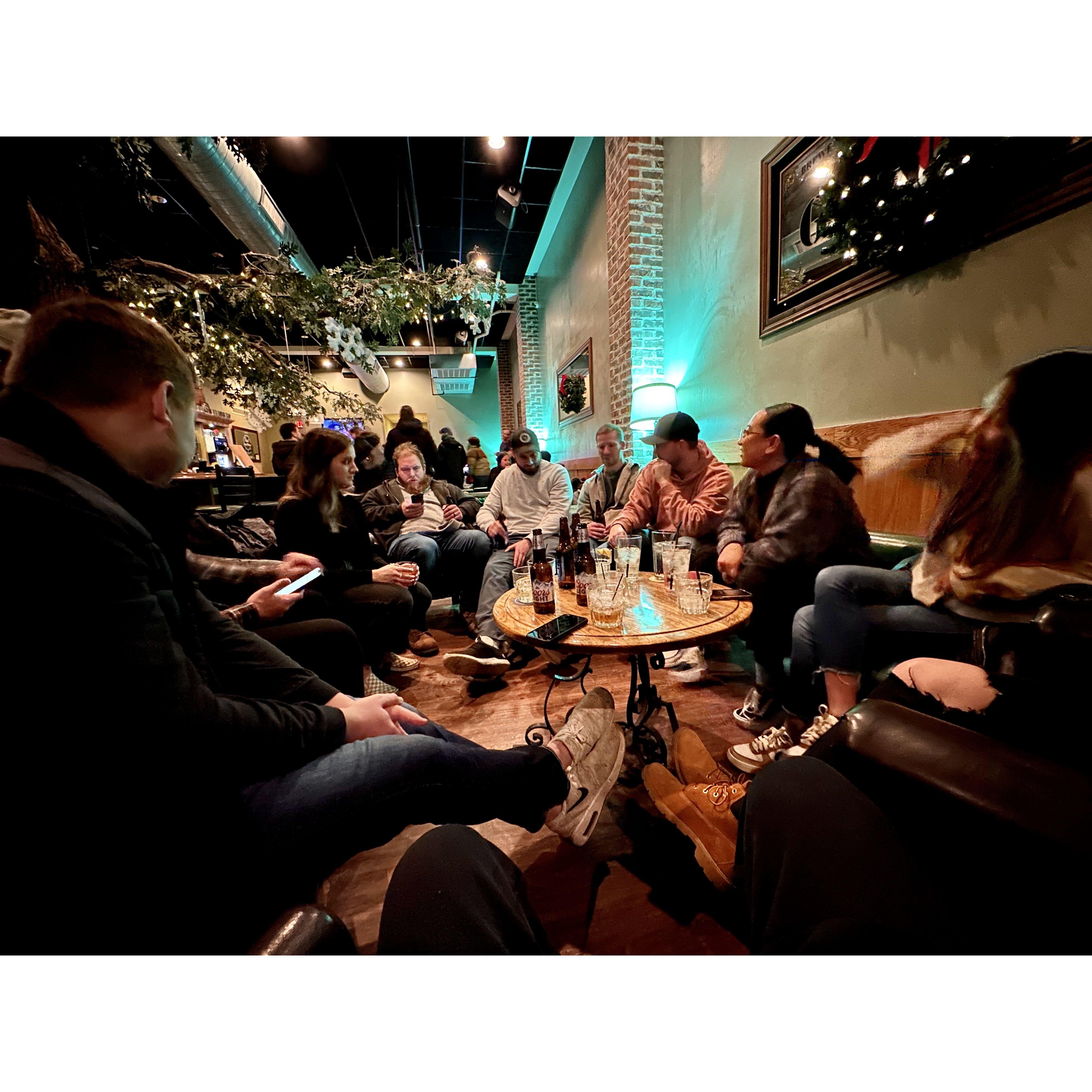 Drinking at the nearby bar