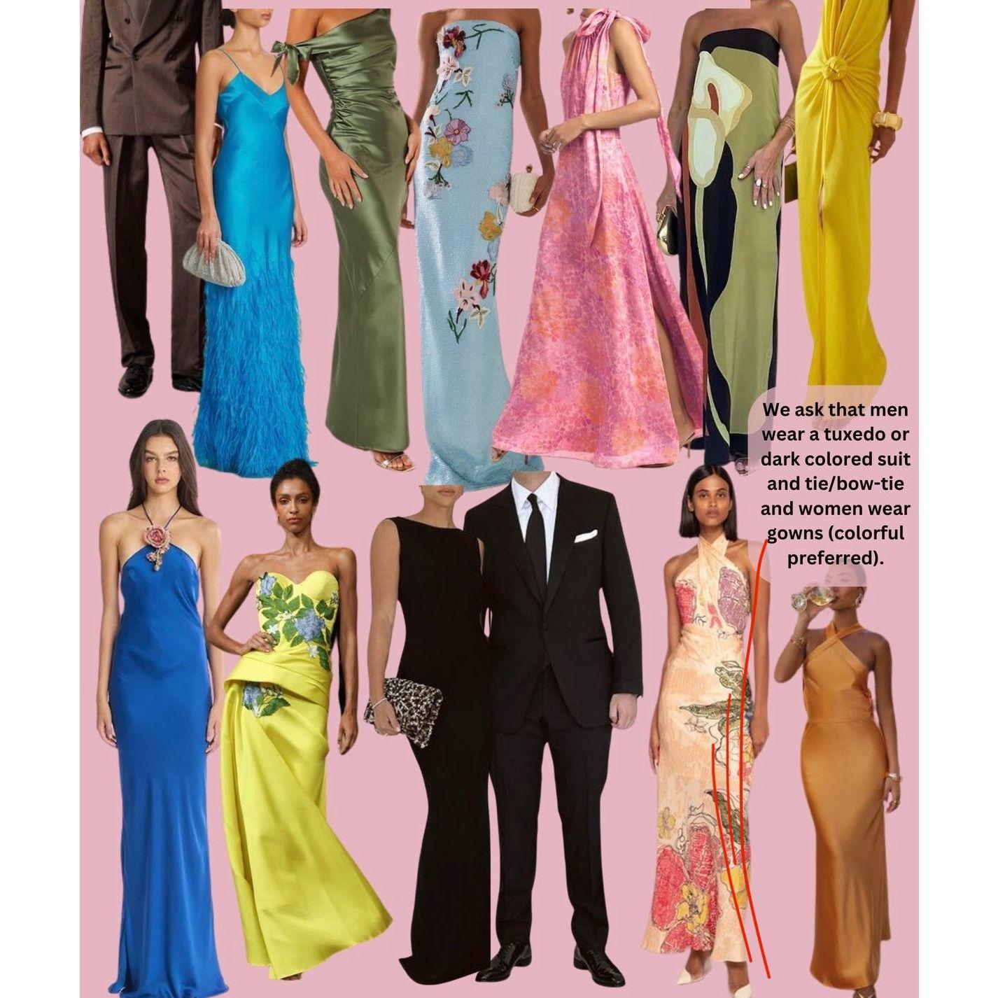 Women: Elegant, floor length gowns in bright, bold colors