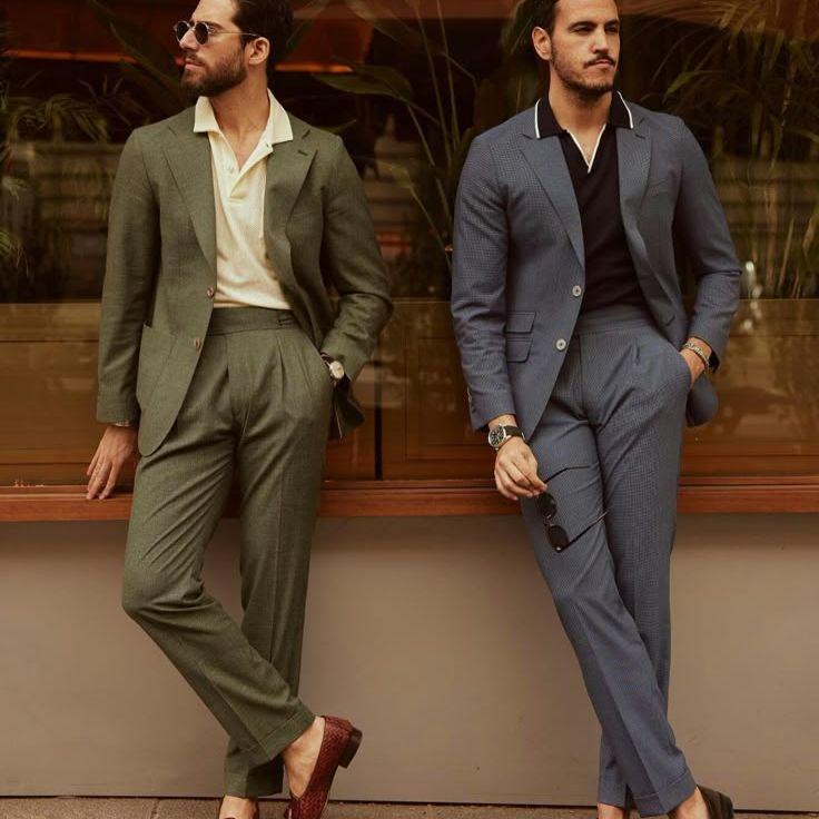 For a wedding in bloom, aim for sharp tailoring with a soft color palette. Lightweight suits in pastel or neutral shades paired with polished dress shoes are perfect for a formal cocktail dress code with a spring twist.