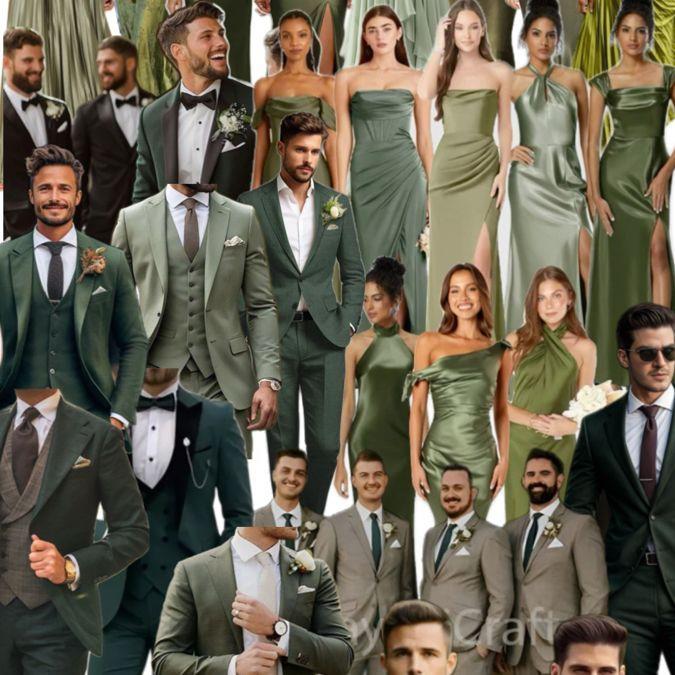 We're asking our guests to wear one of our wedding colors: Black, Light Greens, Dark Greens, Champagne, Beige... Whatever you feel fits the vibe of all of these inspo pics!