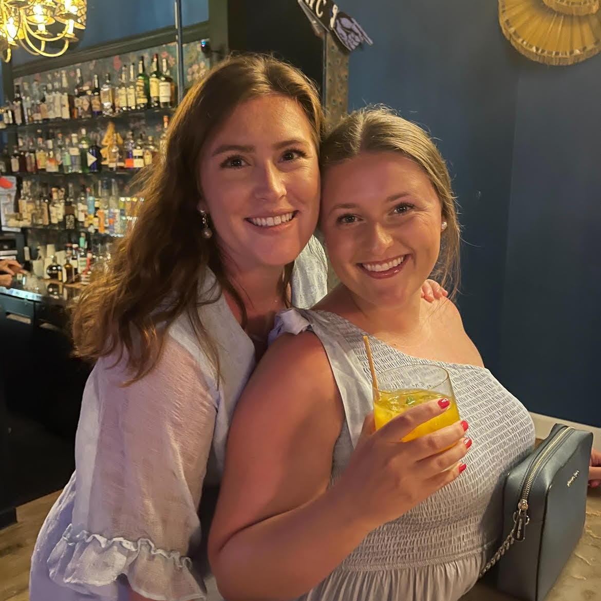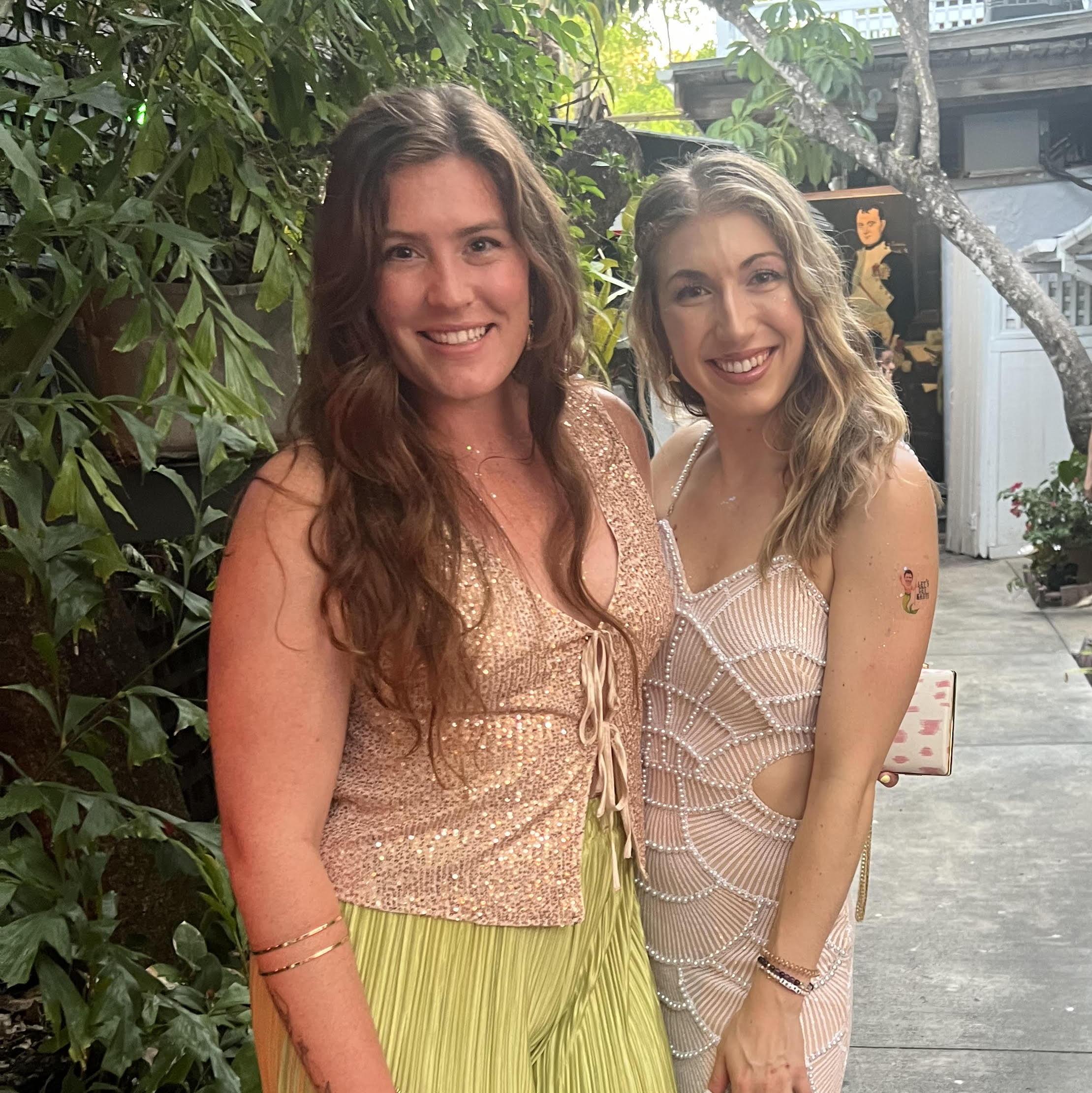 Nat is the OG. Natalie and Becca have known each other since kindergarten. Besties in grade school-shared birthday parties, dressing up for Halloween together and of course playing mermaids in Becca's family pool. They went to different high schools, but that did not change a thing, especially because Natalie's house was where all the parties took place. They both found their way to the best college in the world (We Are!) where they joined the ski club together, enjoyed themed parties at Nat's place and went on the best spring break trip ever! Now, the two continue with yearly ski trips, trips to each other's new homes, and are both in their bridal eras together! 25 years of friendship and a life time to go!