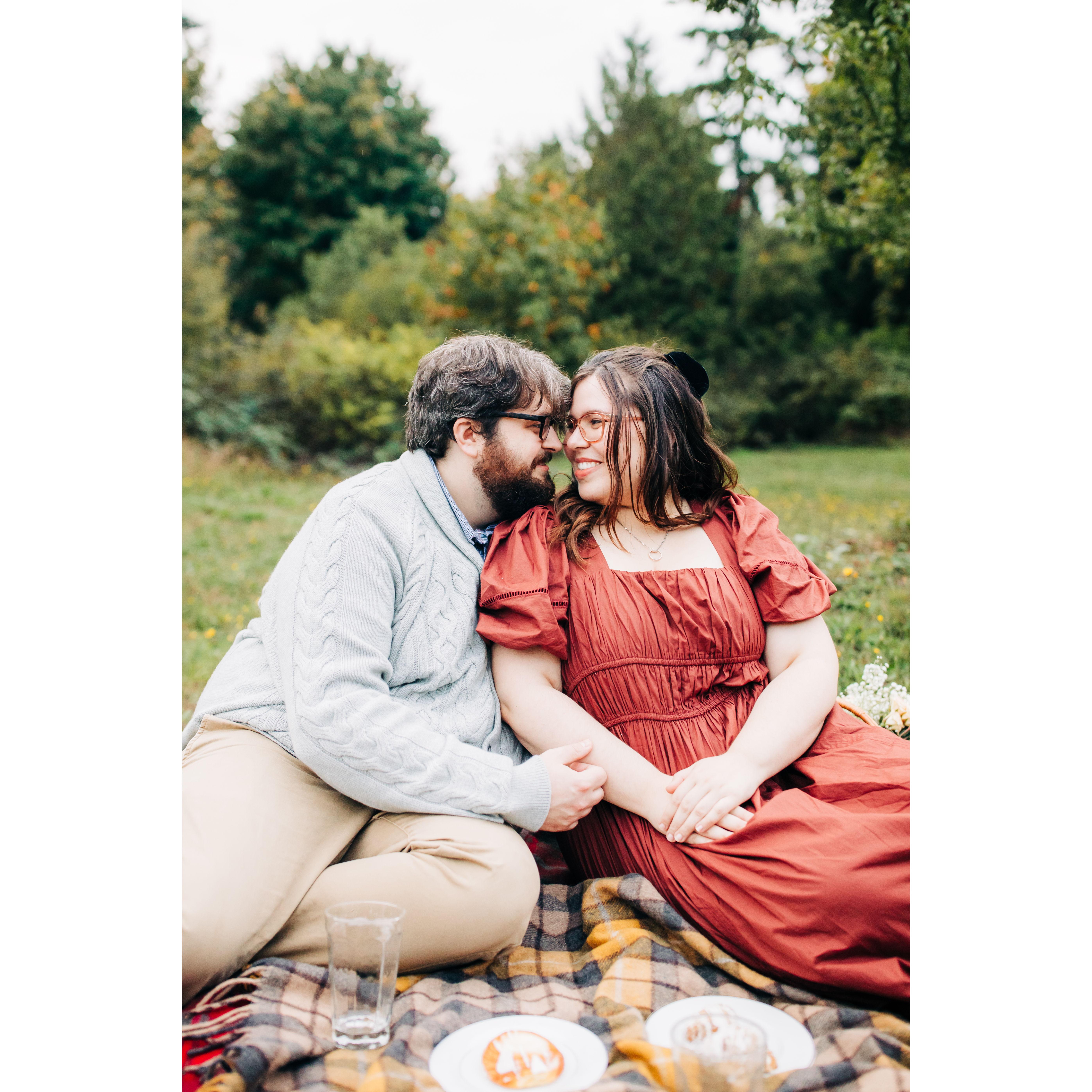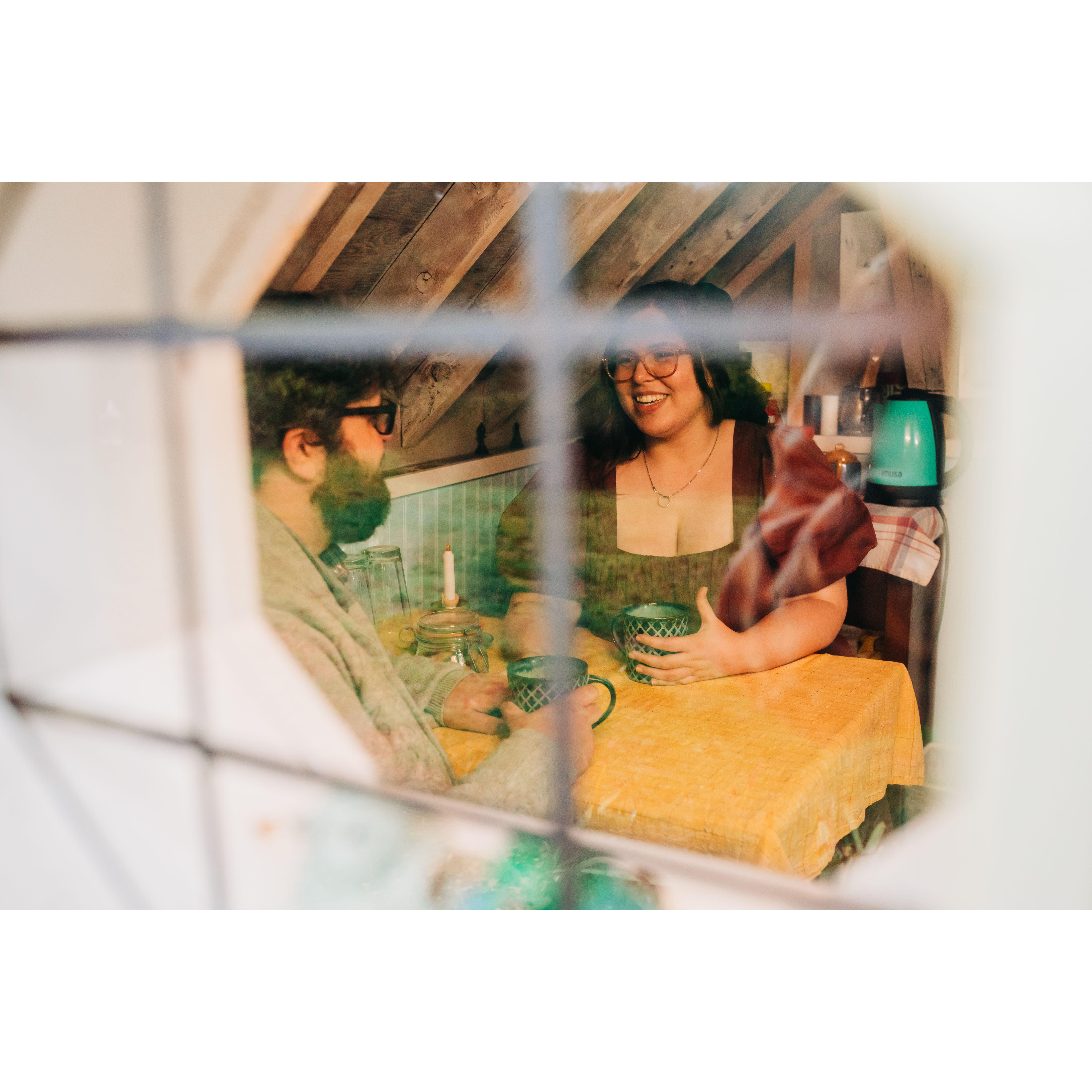 Jonny and Kelly met when a mutual friend invited her to their online Pathfinder group. A global pandemic may have kept them from meeting in person, but they became close friends and tried to find excuses to talk outside of the group. Videogames, book clubs, and hours long phone calls. It was only natural that when Kelly needed to move into a new apartment, Jonny invited her to be his roommate - AS FRIENDS! None of their friends or family believed them for some reason...A few weeks into living together, the penny dropped! Kelly and Jonny were the very last people to realize they were in love.