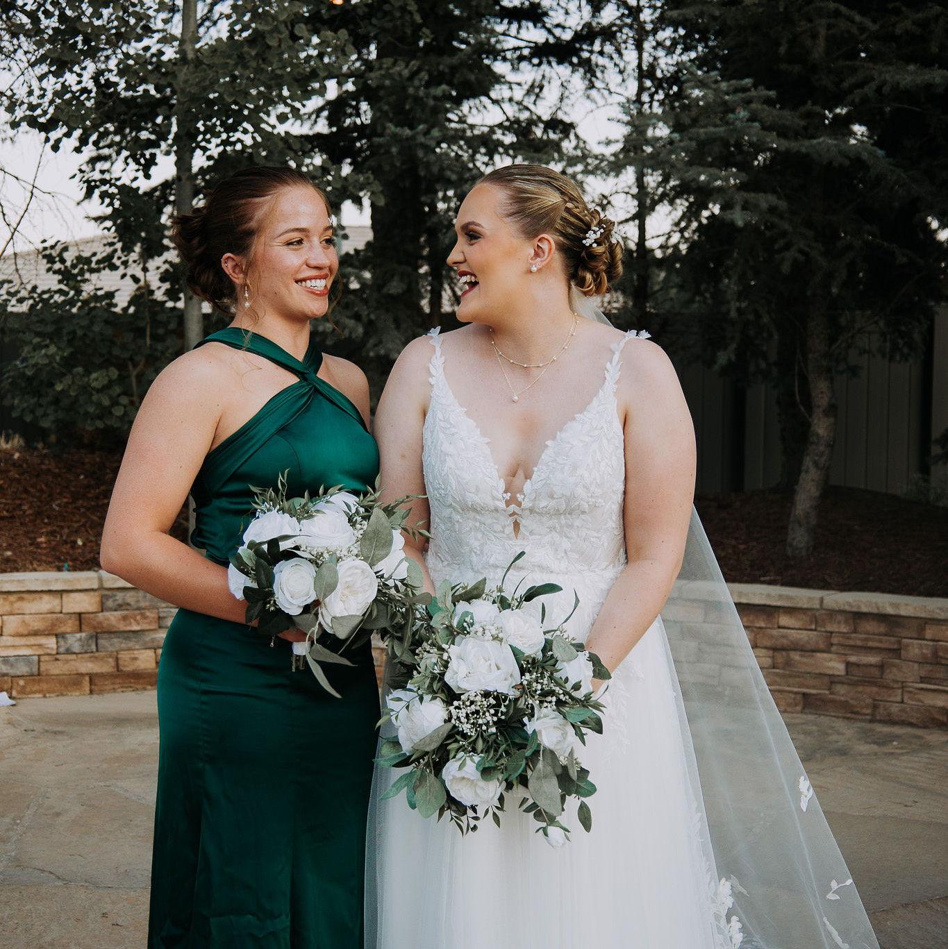 Jaylyn is from Guernsey, WY and is Jordan's little sister. They are close in every way that sisters 7 years apart should be. They bond over Hamilton, Outer Banks, and boy talk, with a sweet treat from Good-2-Go gas station in their hands. Jordan has to learn what's cool from Jaylyn nowadays, texting her for attention like a desperate ex. Chances are these two will be laughing with each other and dancing all wedding weekend long.