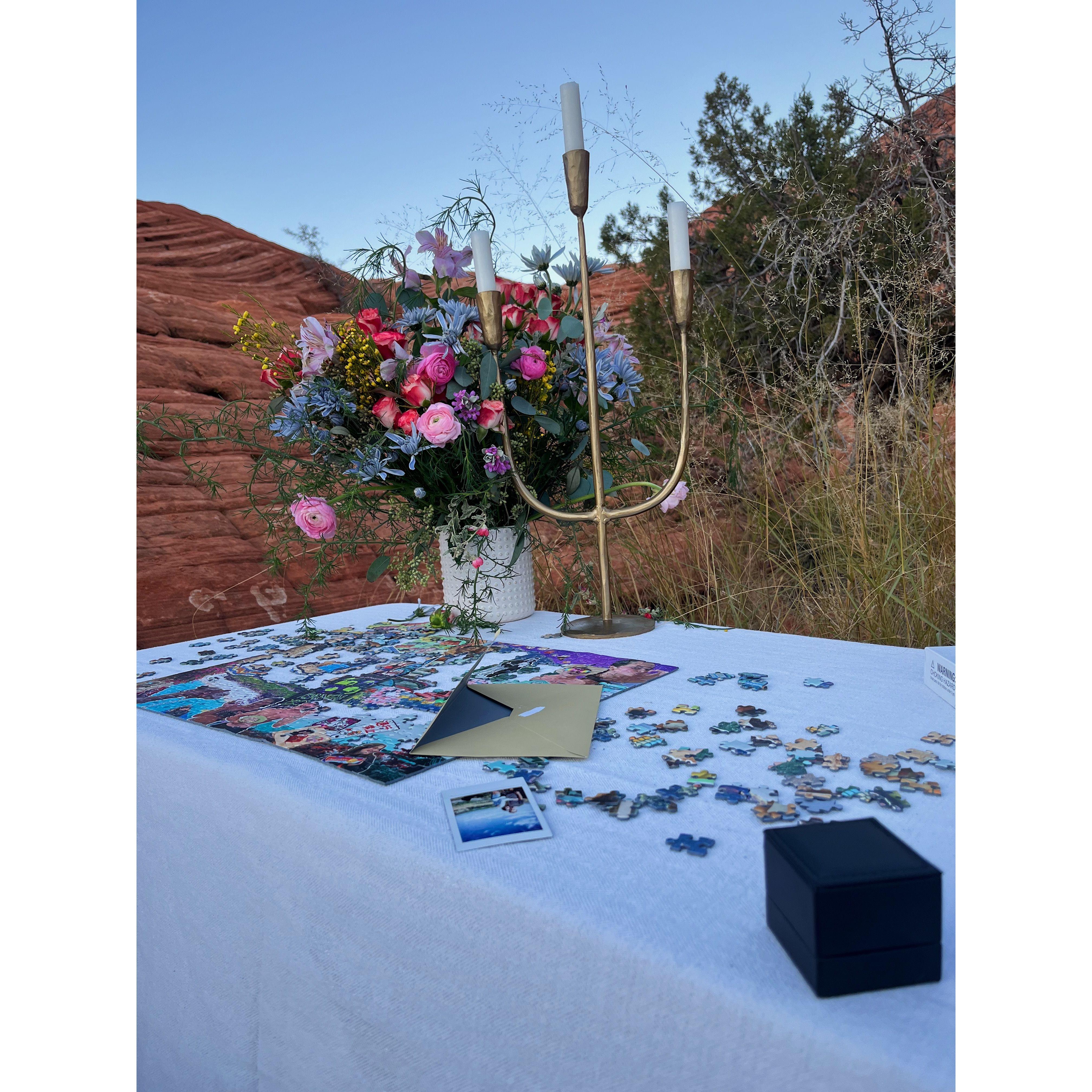 A montage of our first 3 years together. This image was turned into a puzzle and used during the proposal