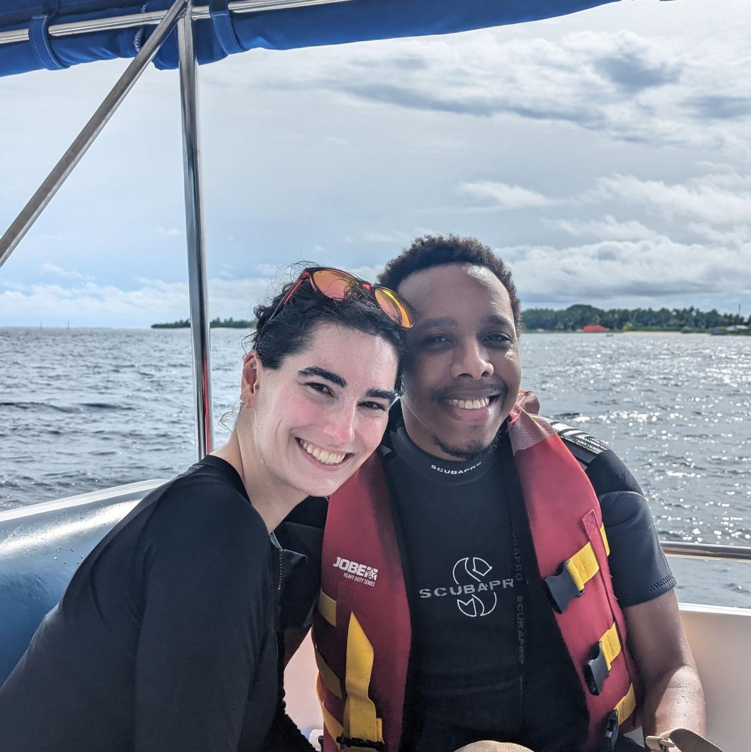 We met in Boston in 2018, where Julian worked in computer science and Eva studied biology. Julian moved back to Michigan for school, then to San Diego, California for work. Eva moved to Vermont for school, then Santa Cruz, California, for more school. After 5.5 years of long distance, Julian moved to Santa Cruz last year and we've finally been living in the same city again!