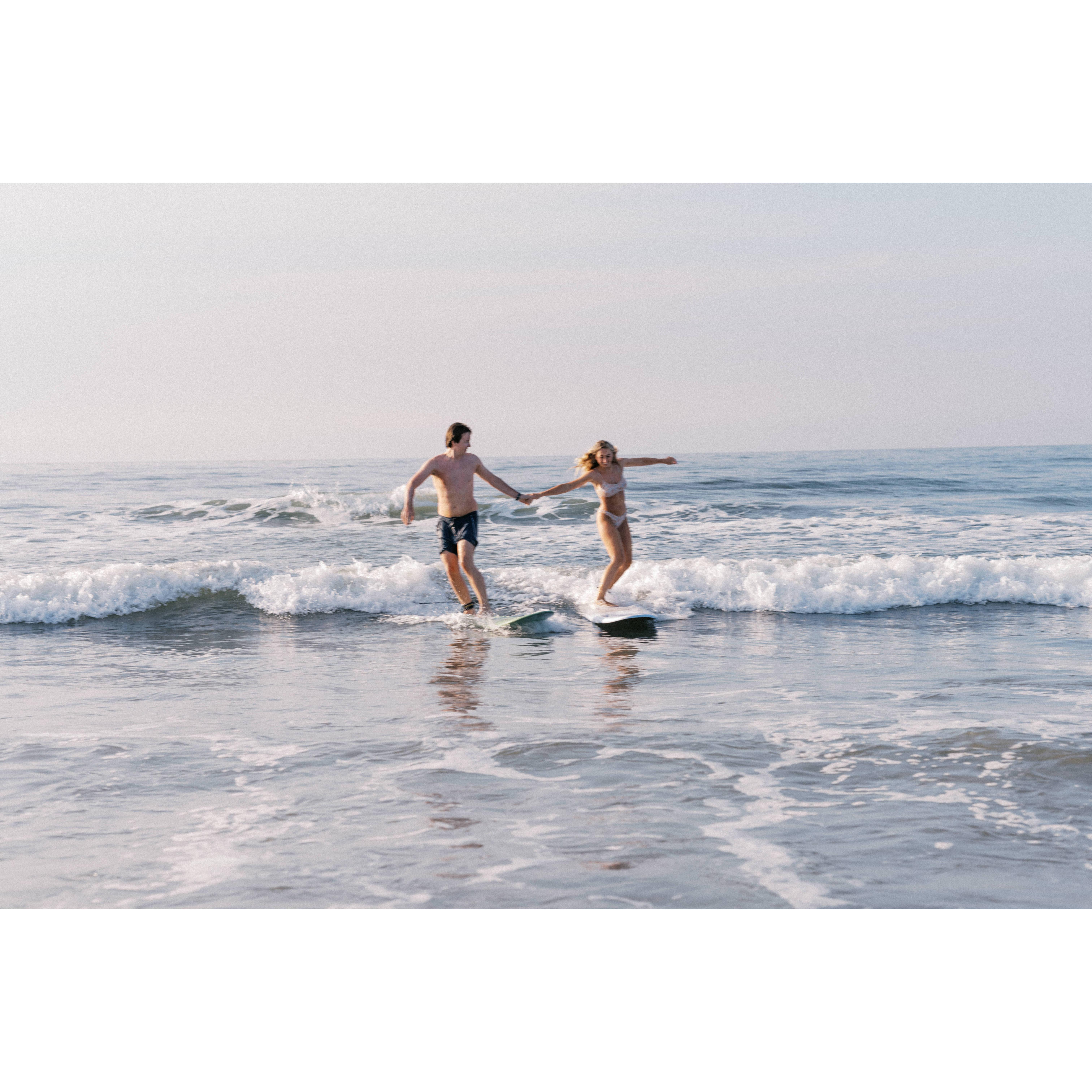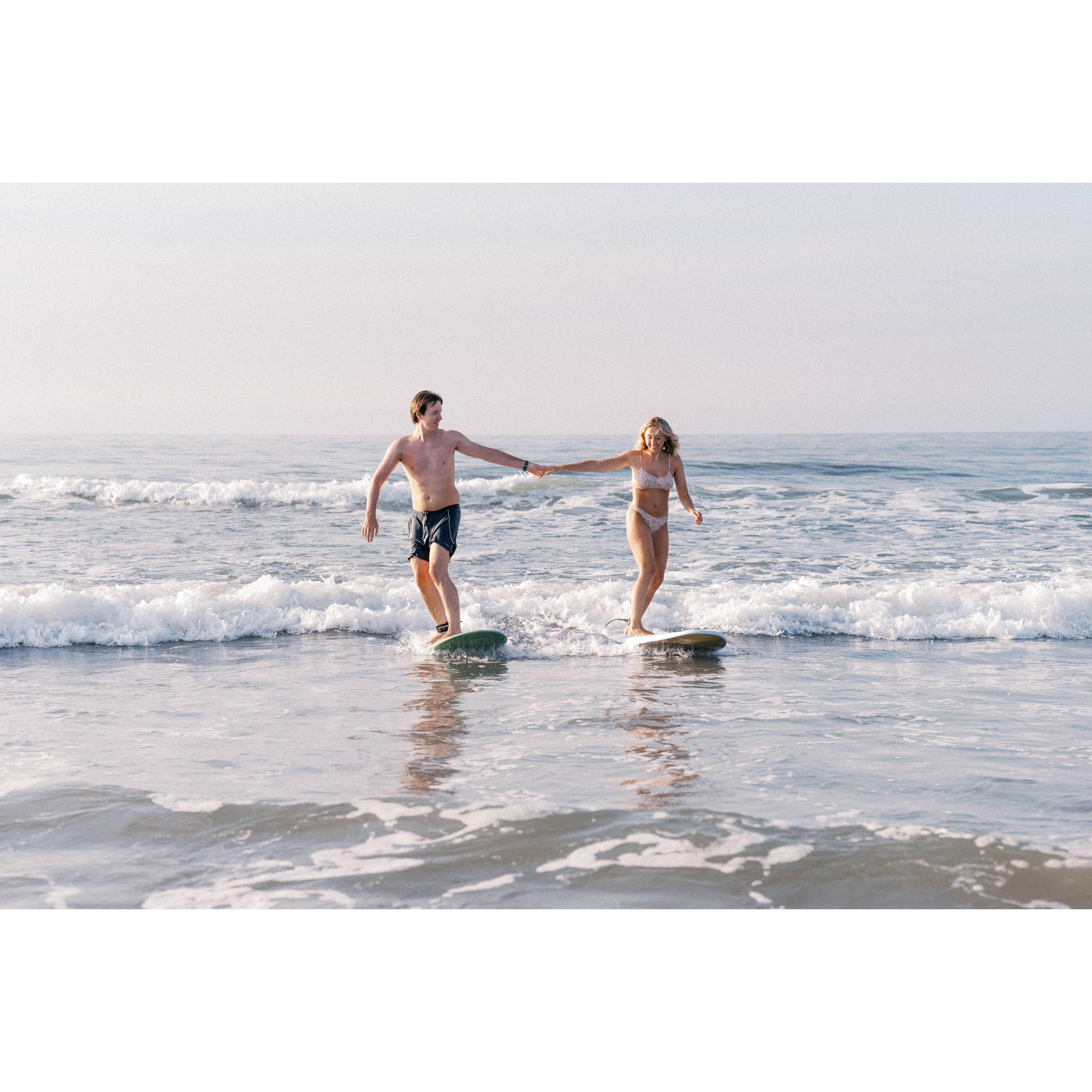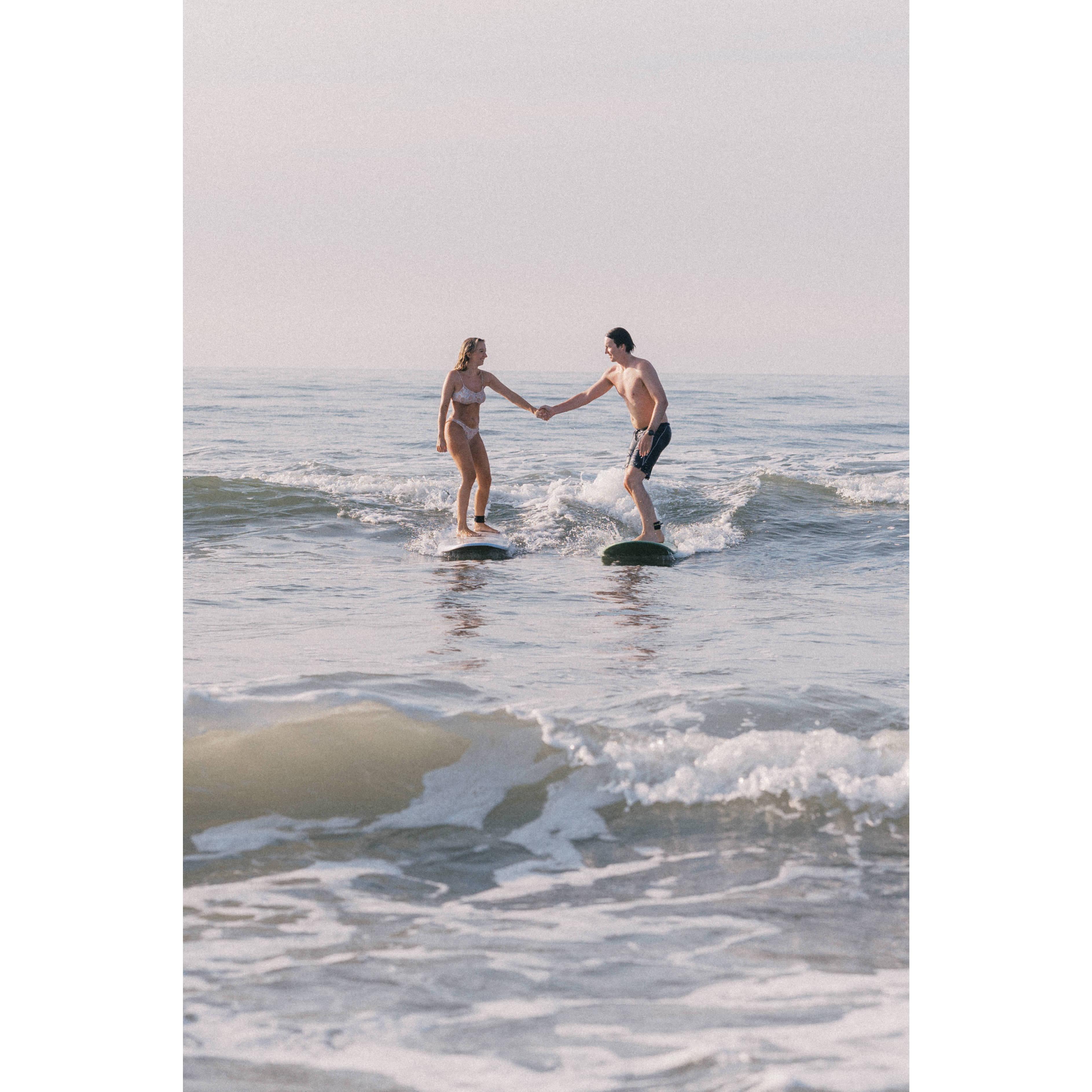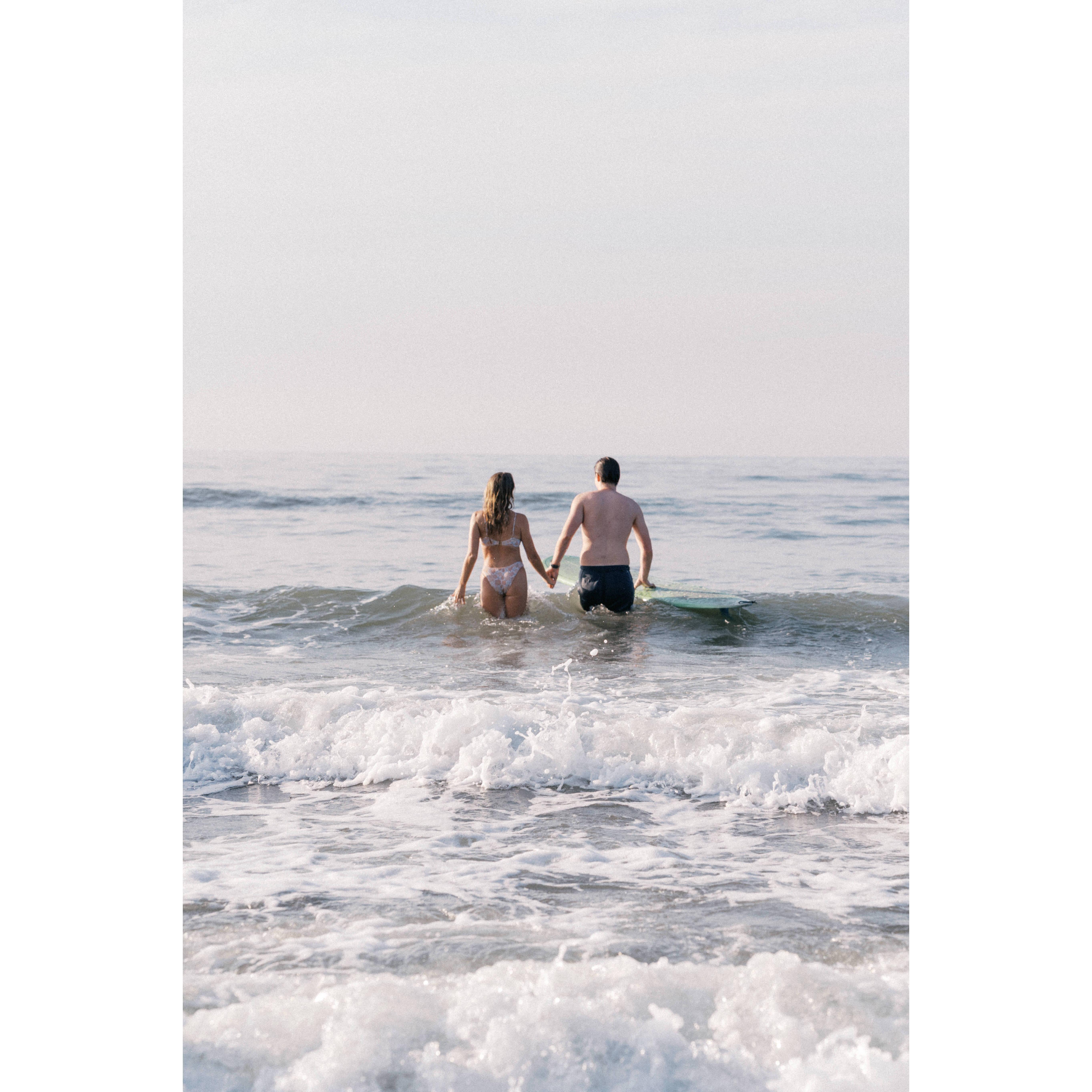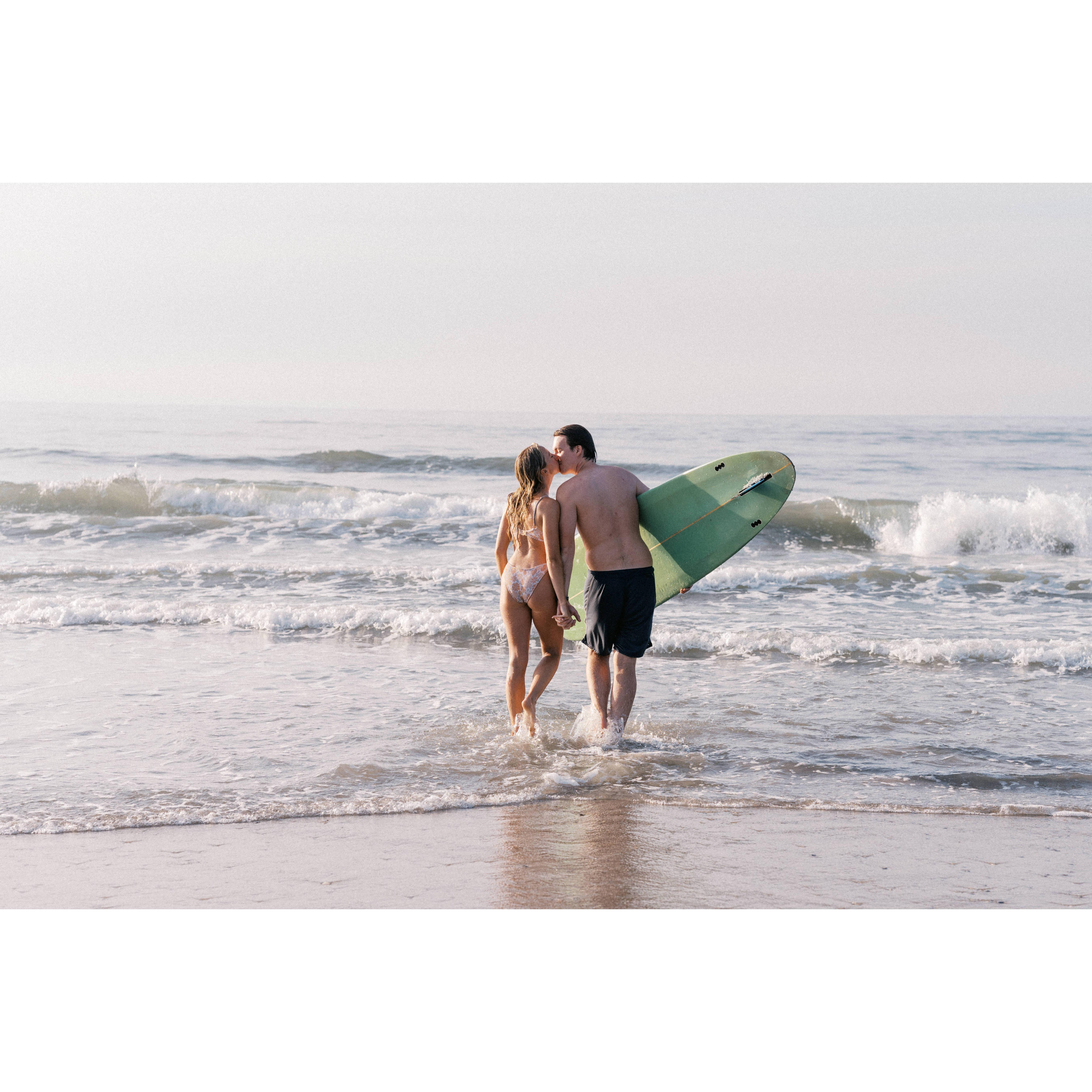 For our engagement shoot, we decided to capture one of the activities we love doing together most... surfing! Massive shoutout to Taylor Nicolle Photos for the magic behind the lens!