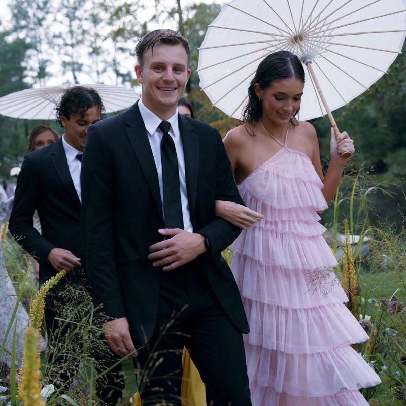 Dress code is formal attire. Tuxedos and floor-length gowns are encouraged, as well as suits and cocktail dresses. We want everyone to feel their best, so think polished and elevated! Please avoid white/cream. If you are unsure please reach out to the couple and ask!