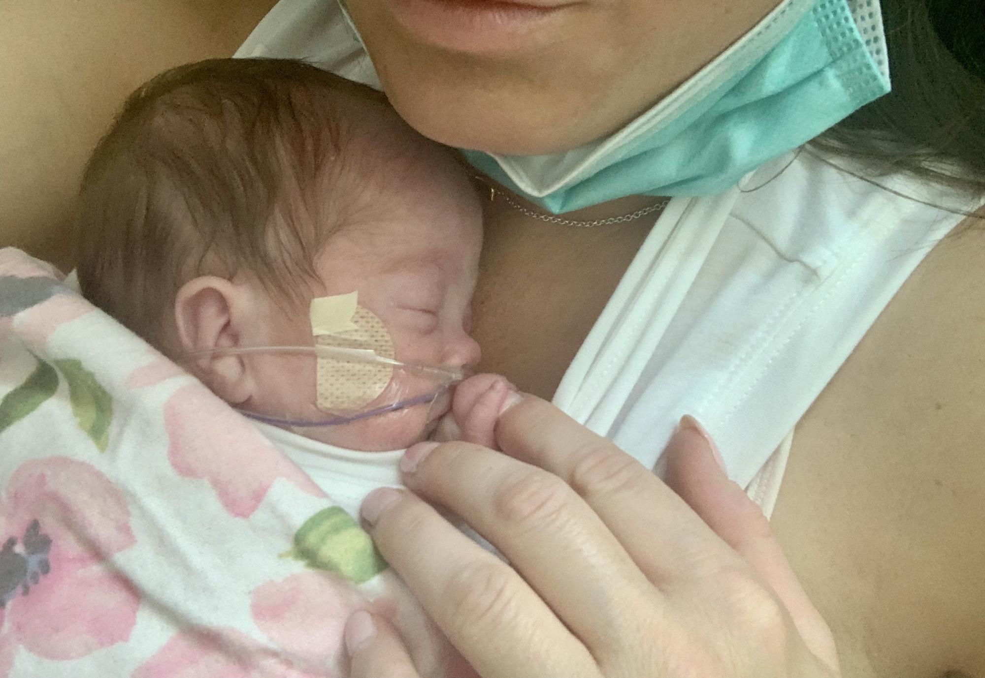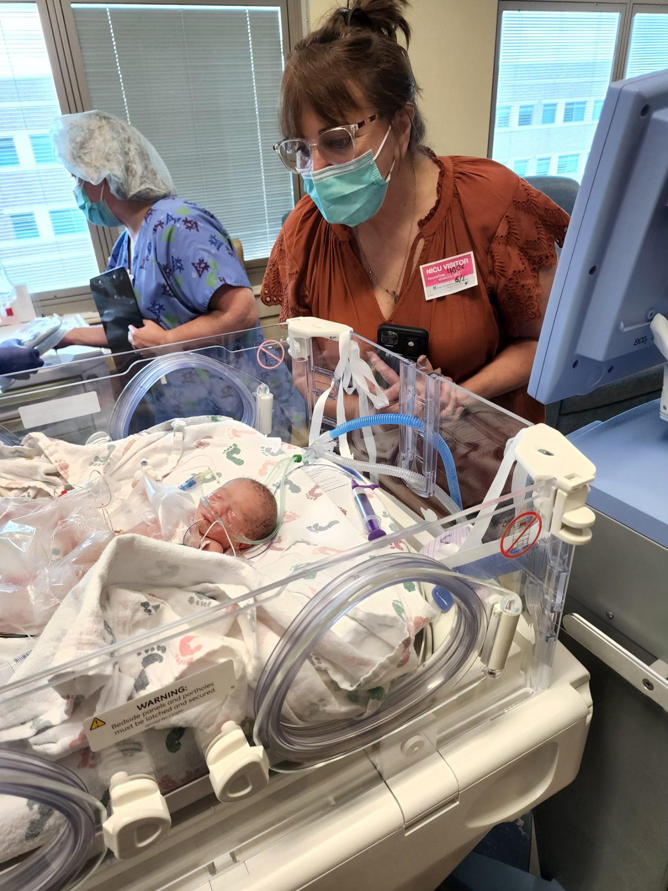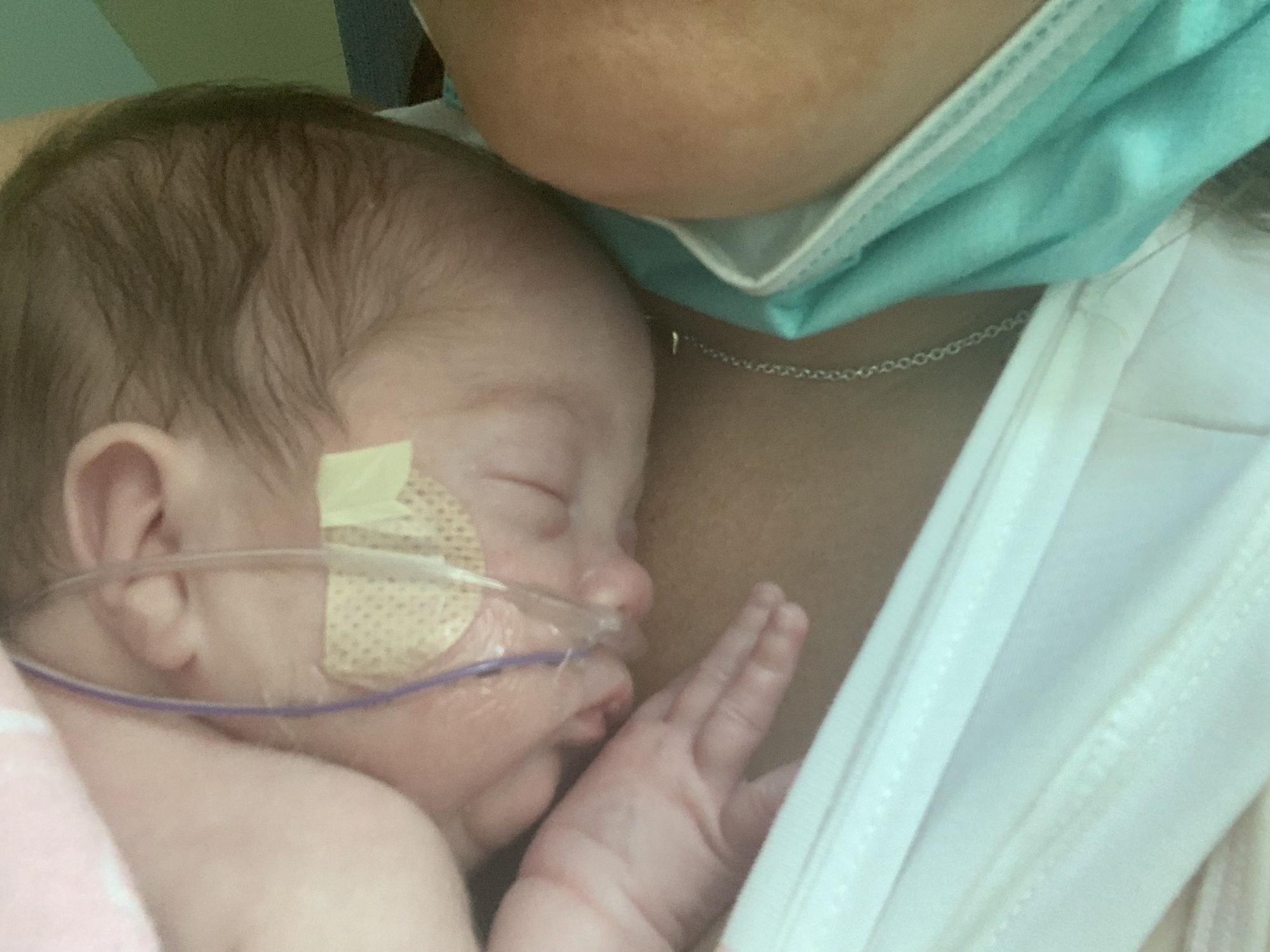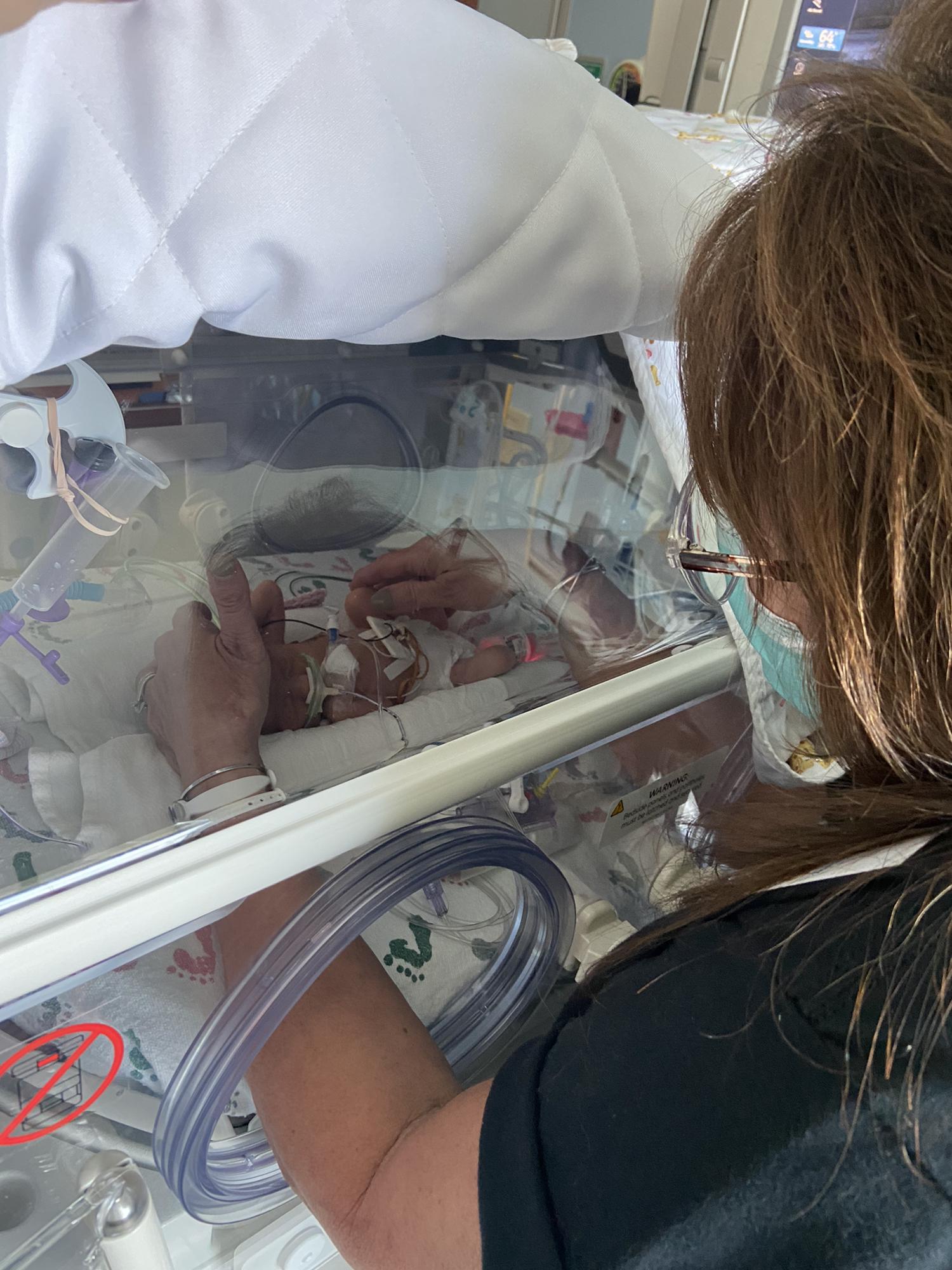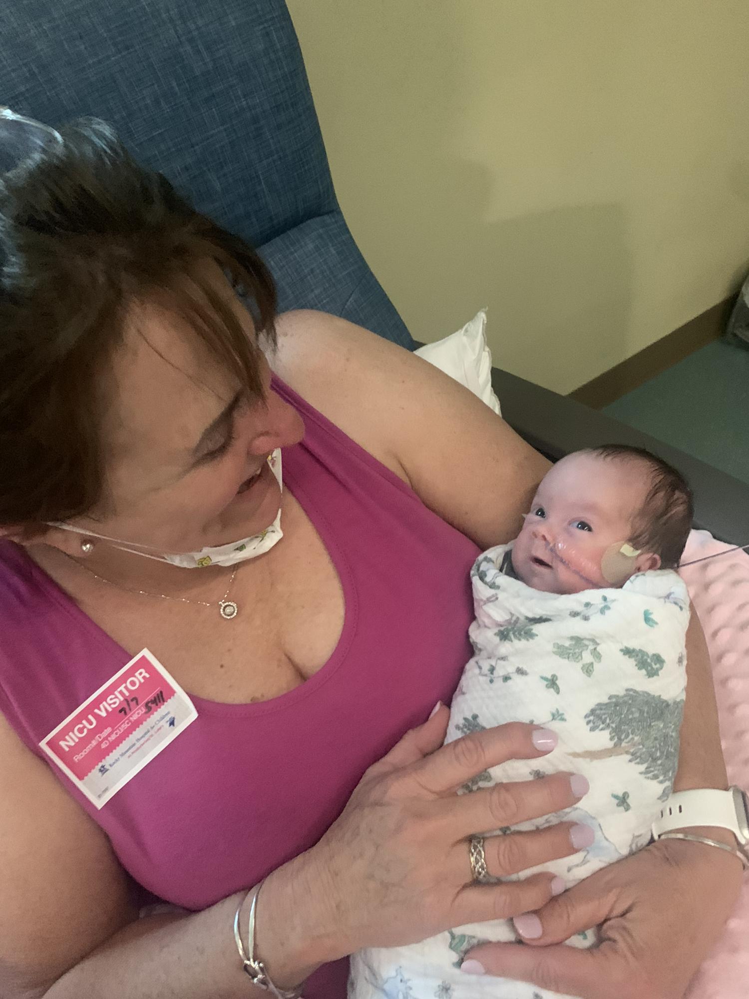 Grandma DeDe holding Kinley for the first time