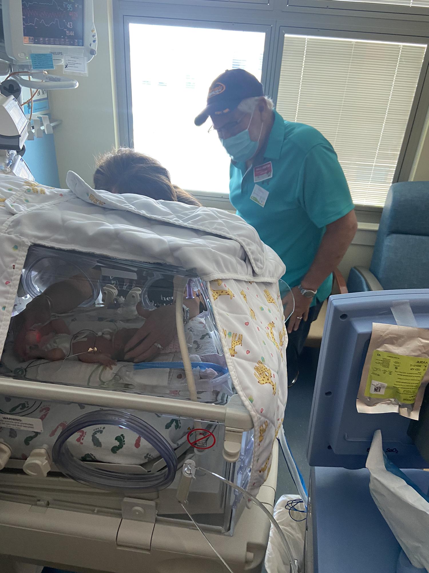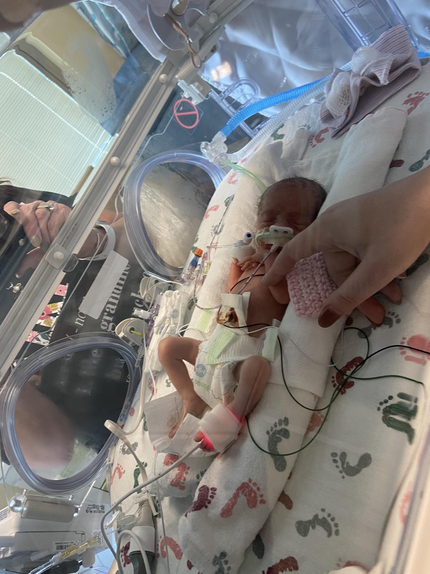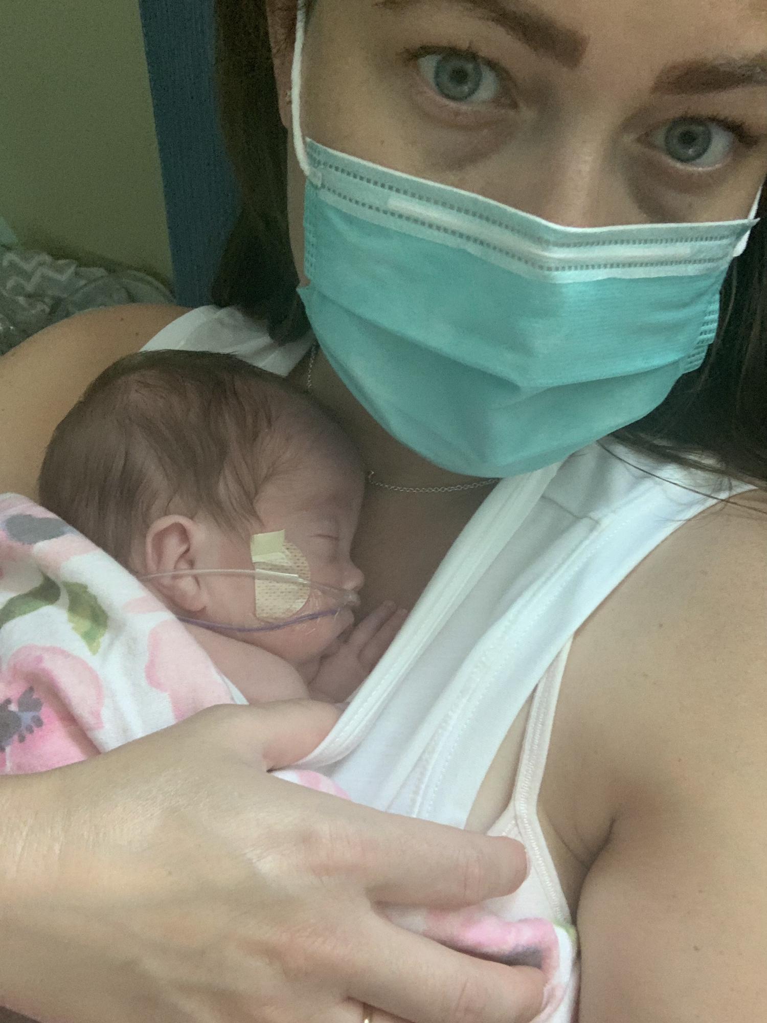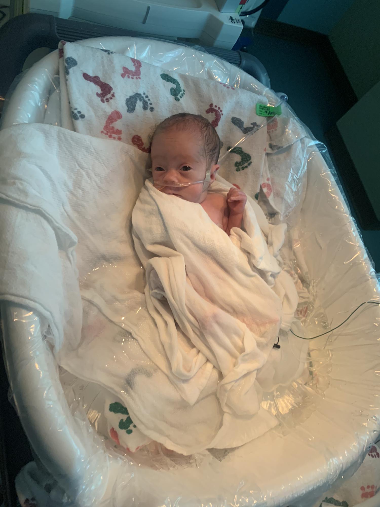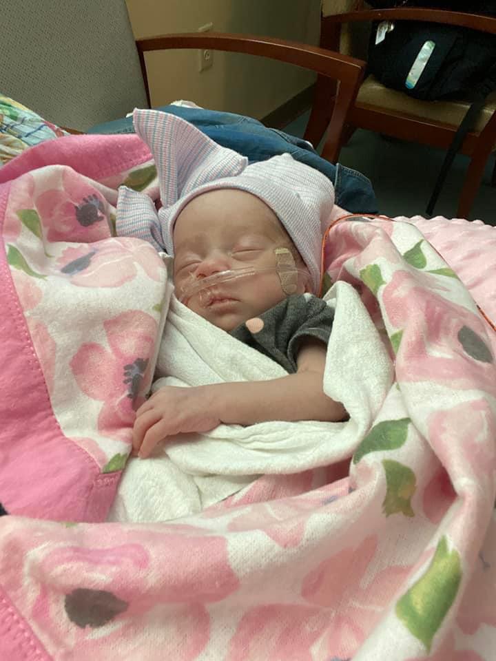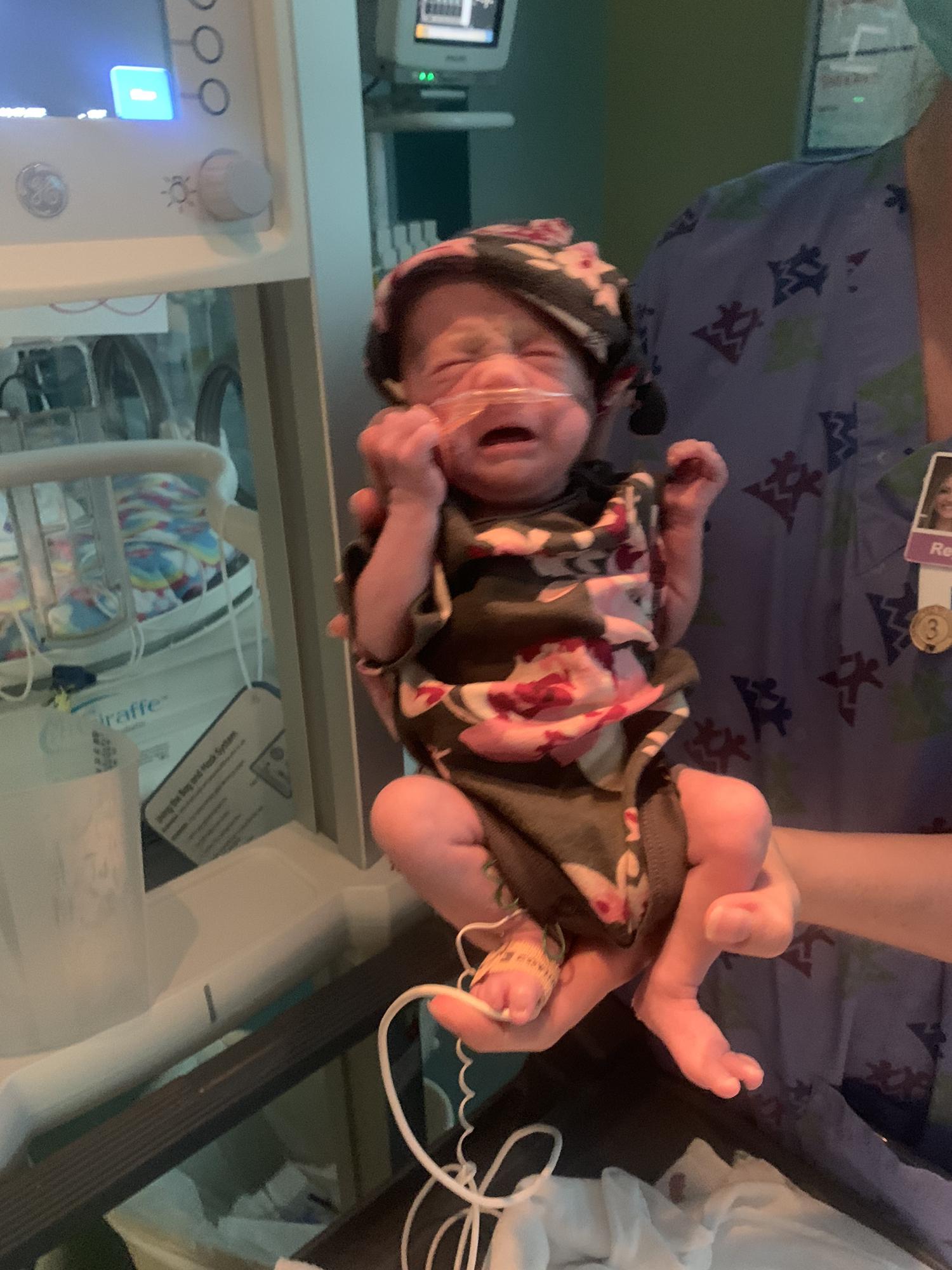 Grandma DeDe holding Kinley for the first time
