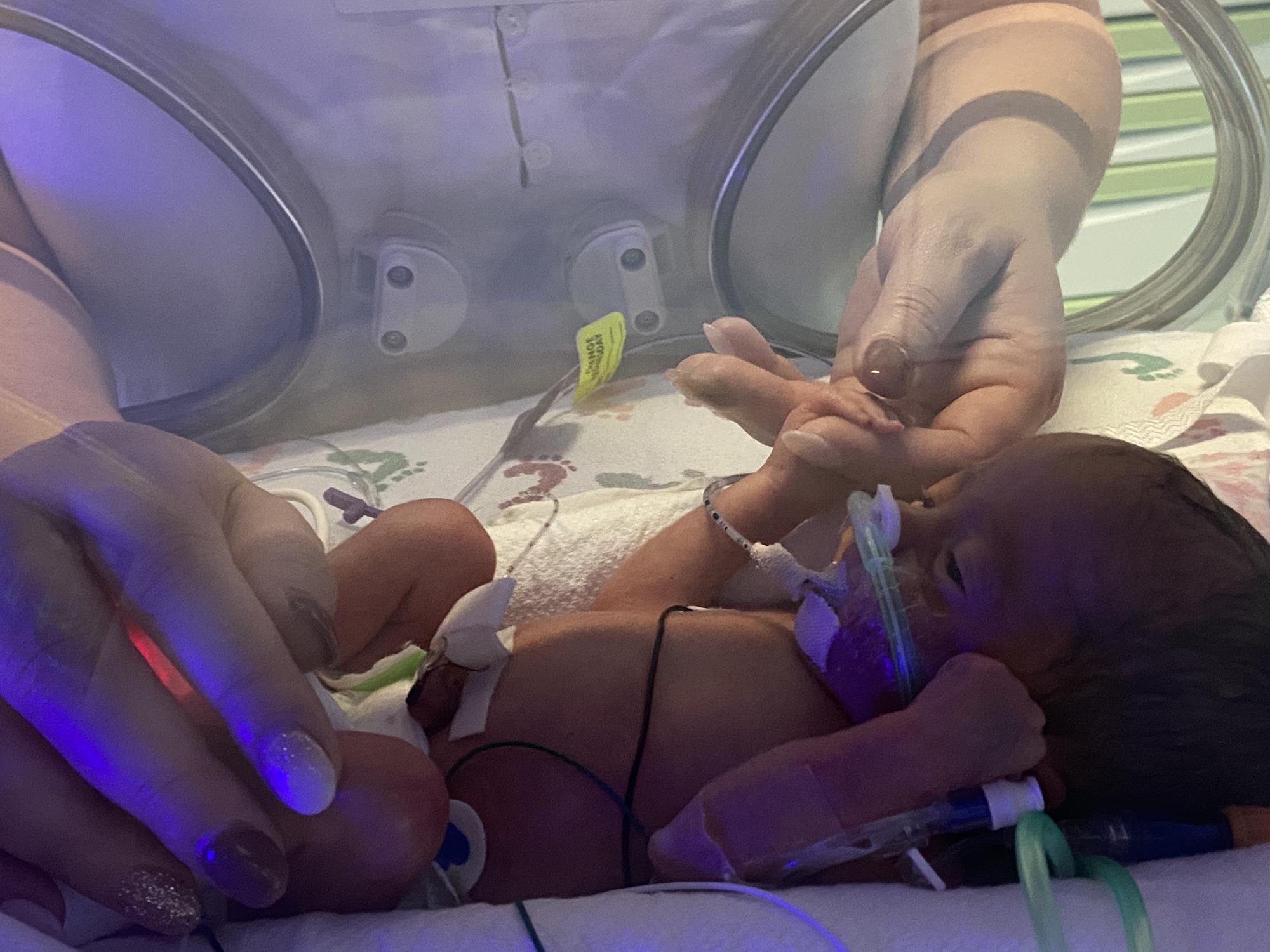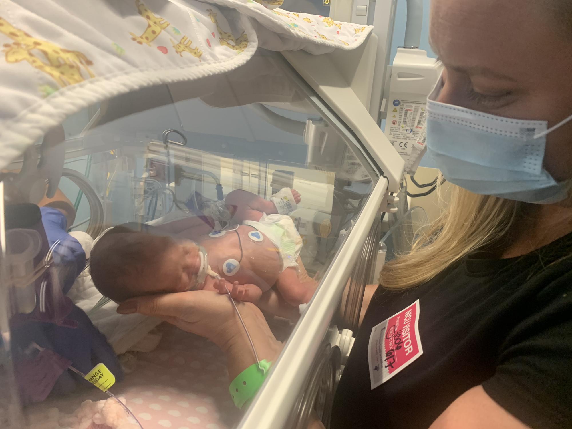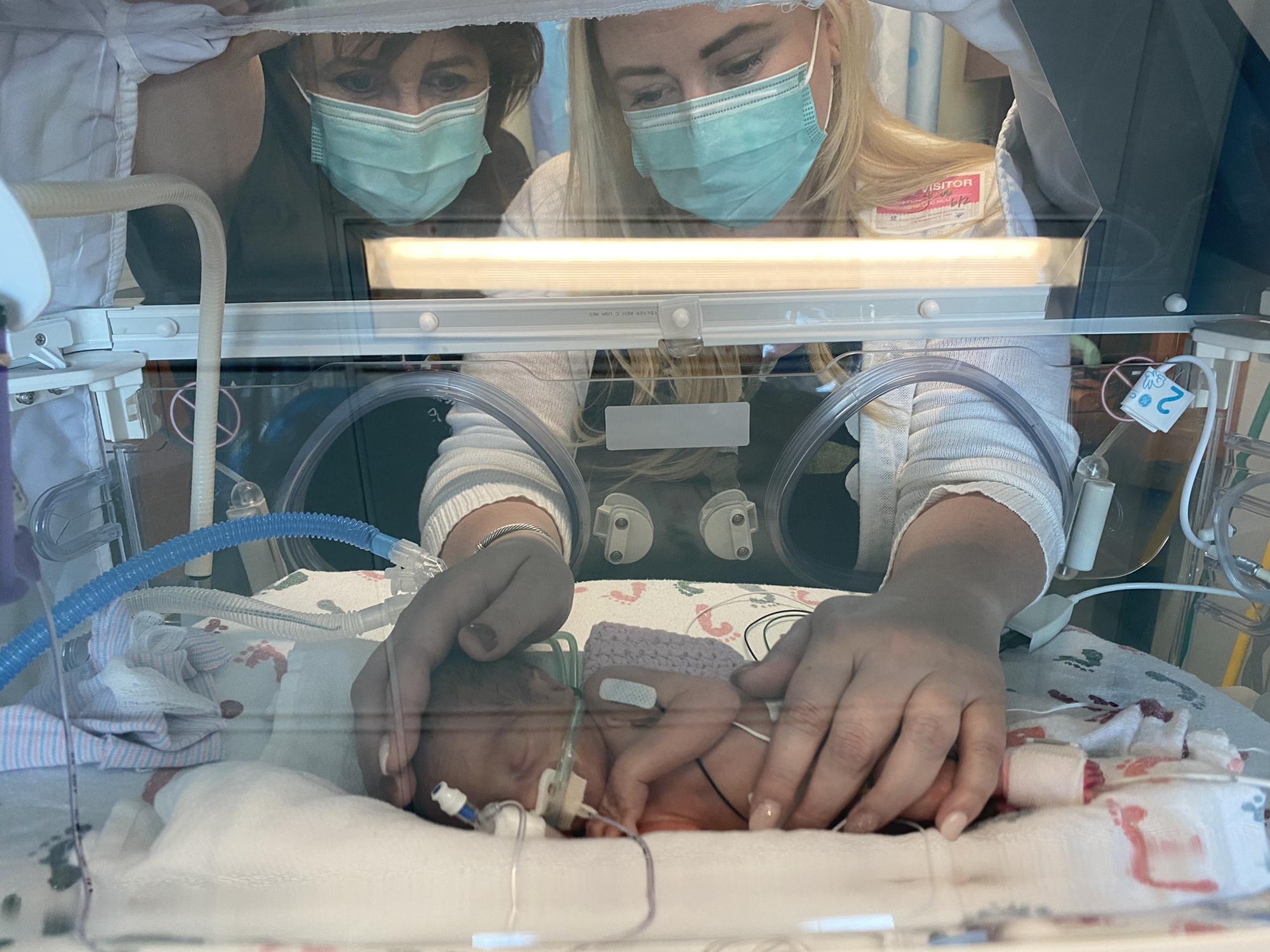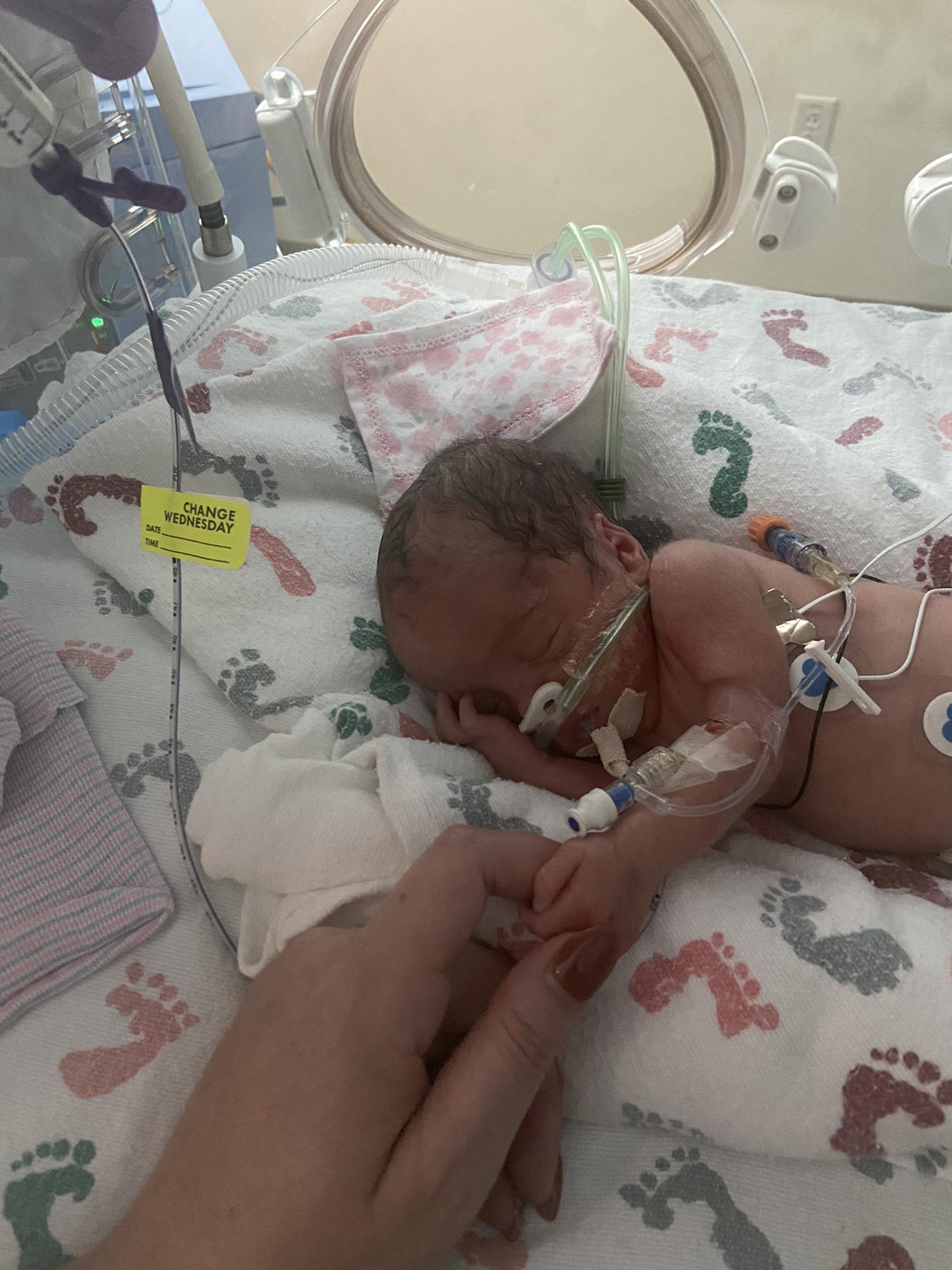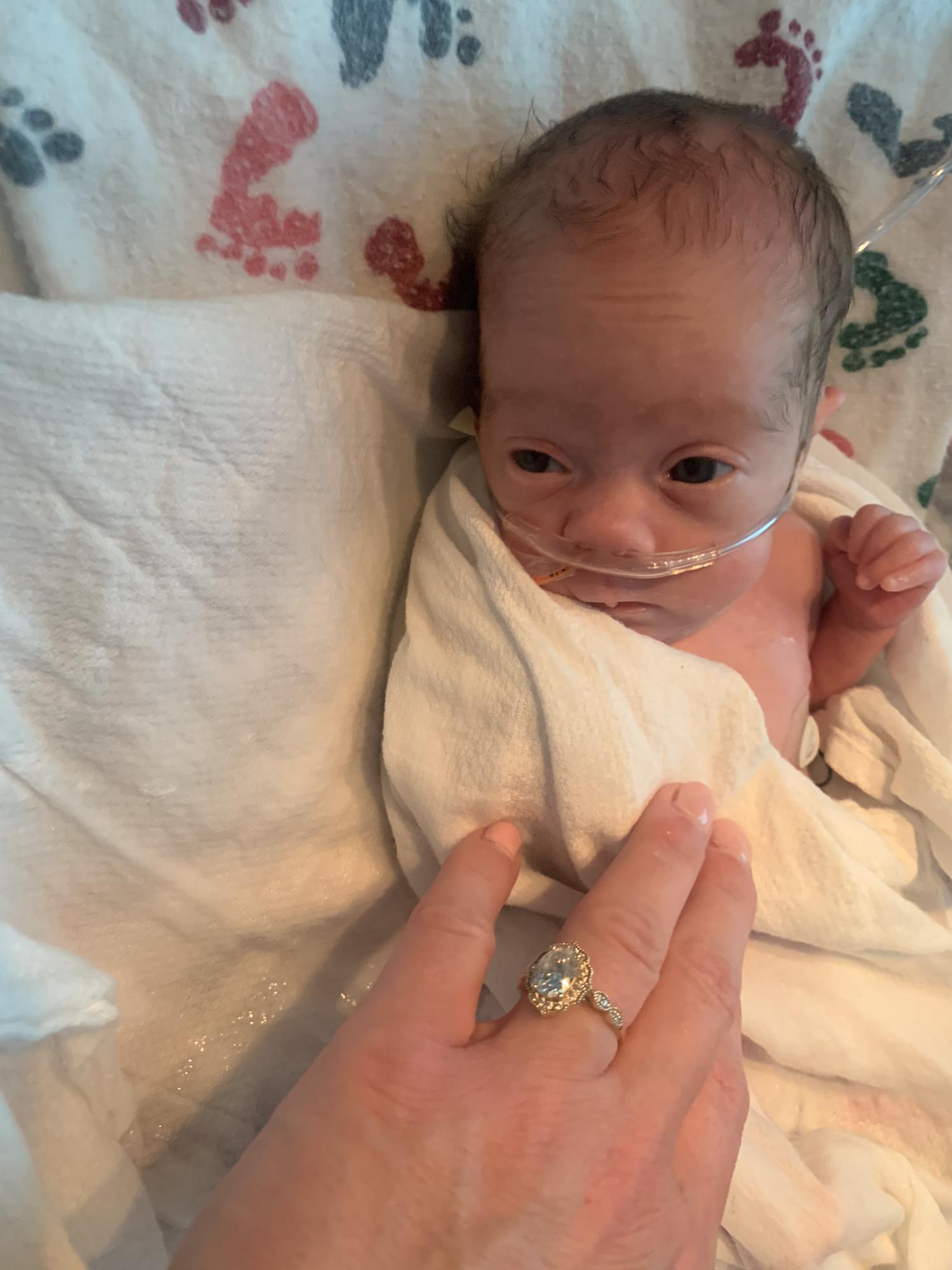 Grandma DeDe holding Kinley for the first time