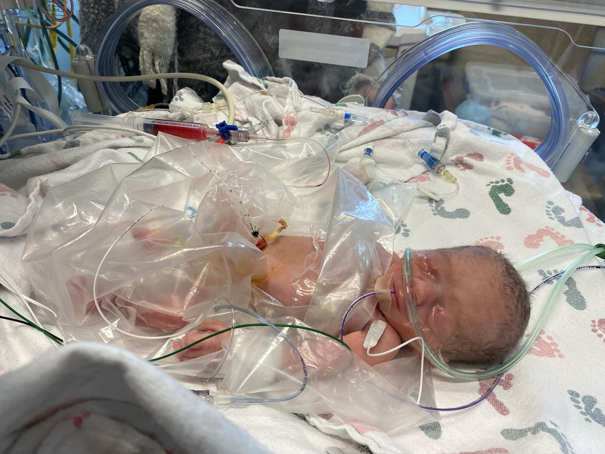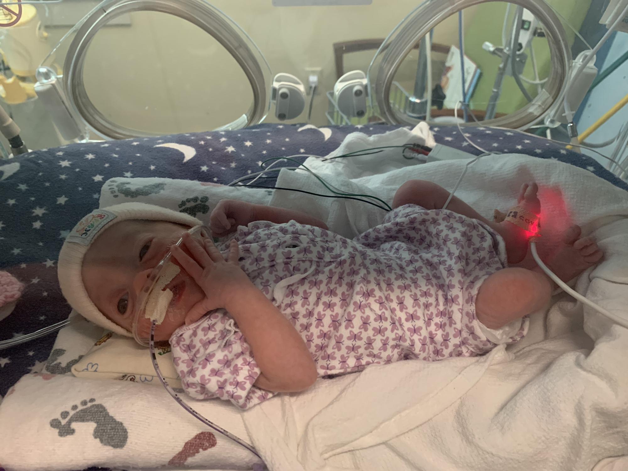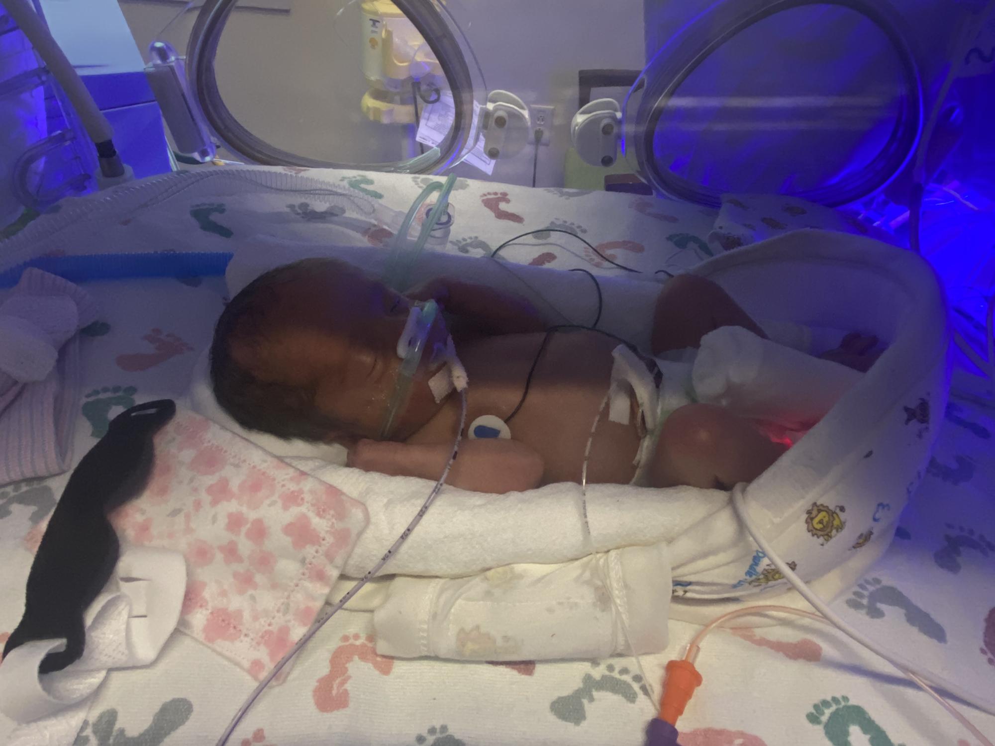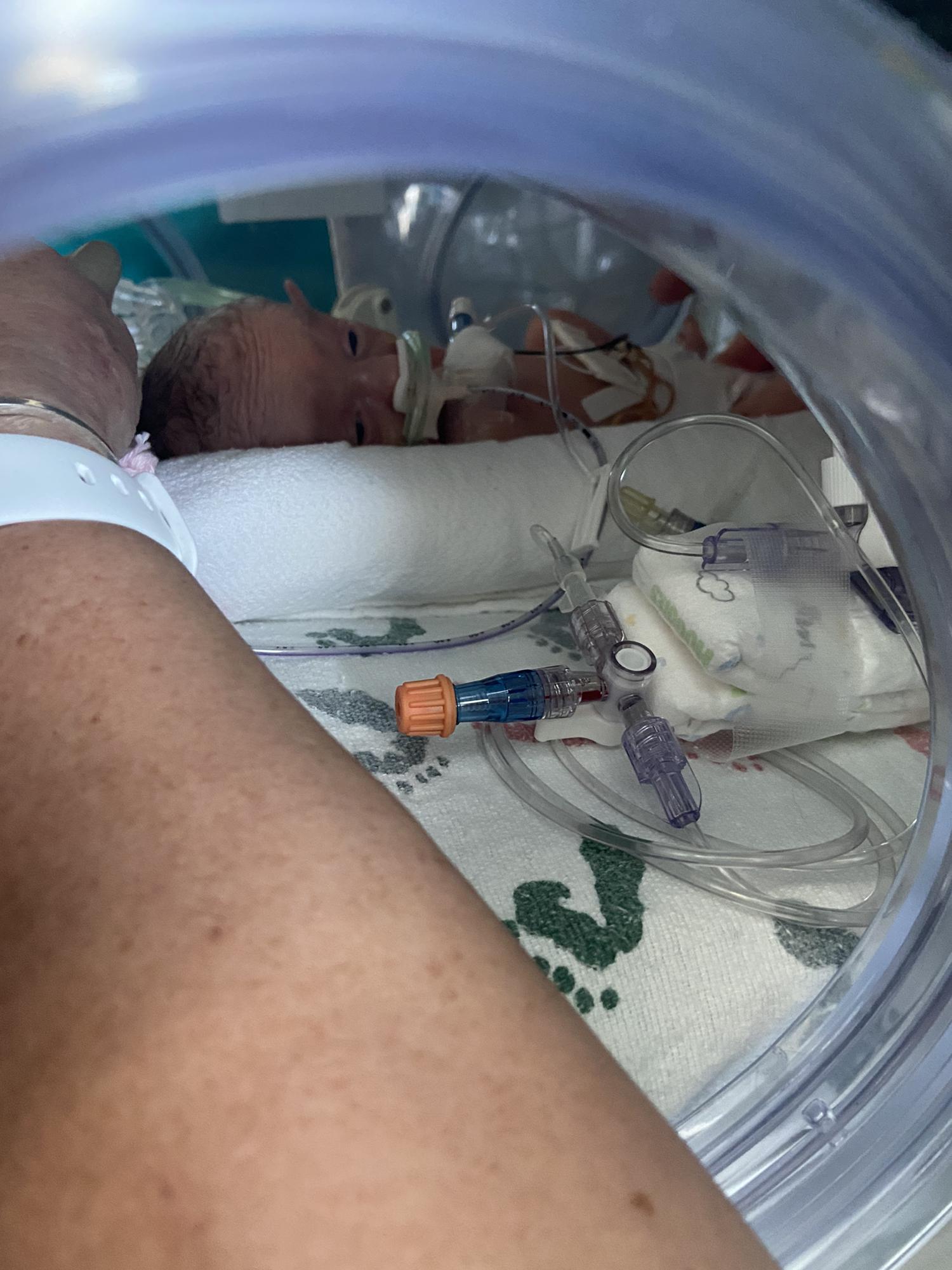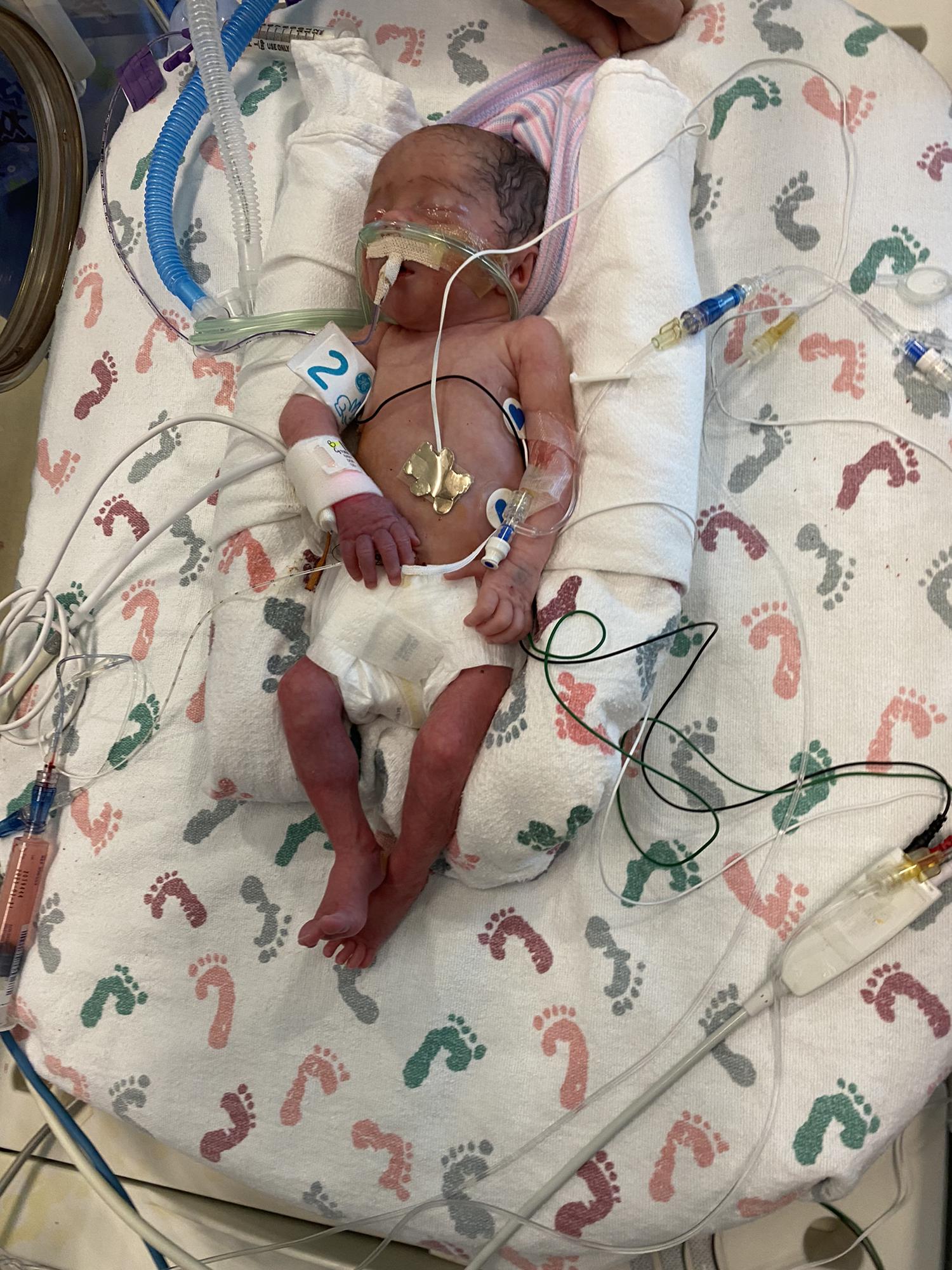 Grandma DeDe holding Kinley for the first time
