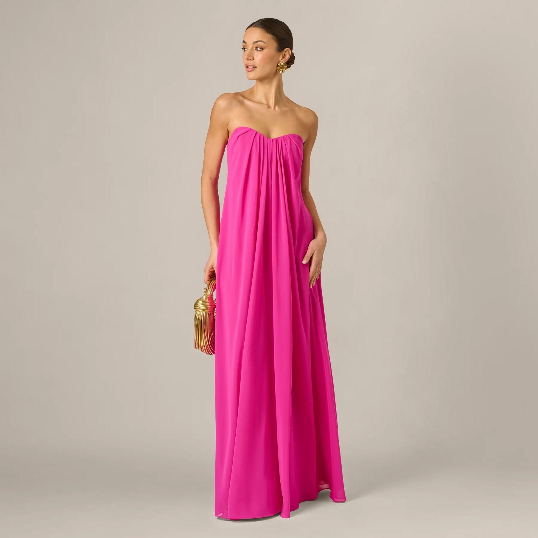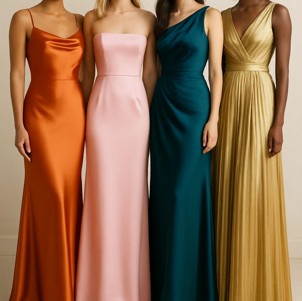 Luxe fabrics such as silk, satin, velvet, beading, or chiffon