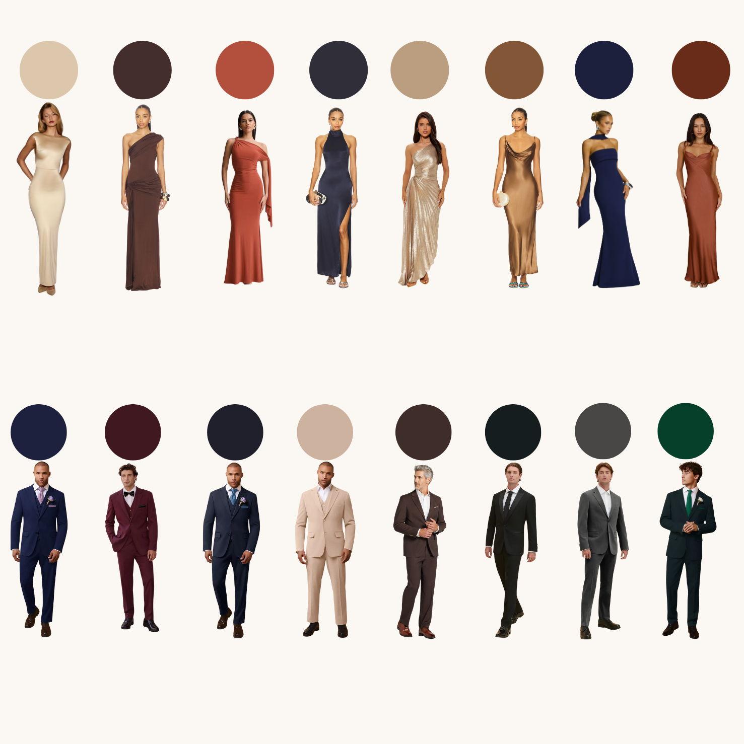We’ve shared a mood board below to spark a little outfit inspiration. We’re so excited to see our family and friends looking their best as we celebrate our big day. The dress code is semi-formal—tuxedos and gowns are absolutely welcome, as are suits and cocktail dresses in earthy tones that complement our wedding palette. We encourage you to choose something that’s both stylish and comfortable; breathable fabrics are always a great choice. Let’s keep it classy and celebrate in style.