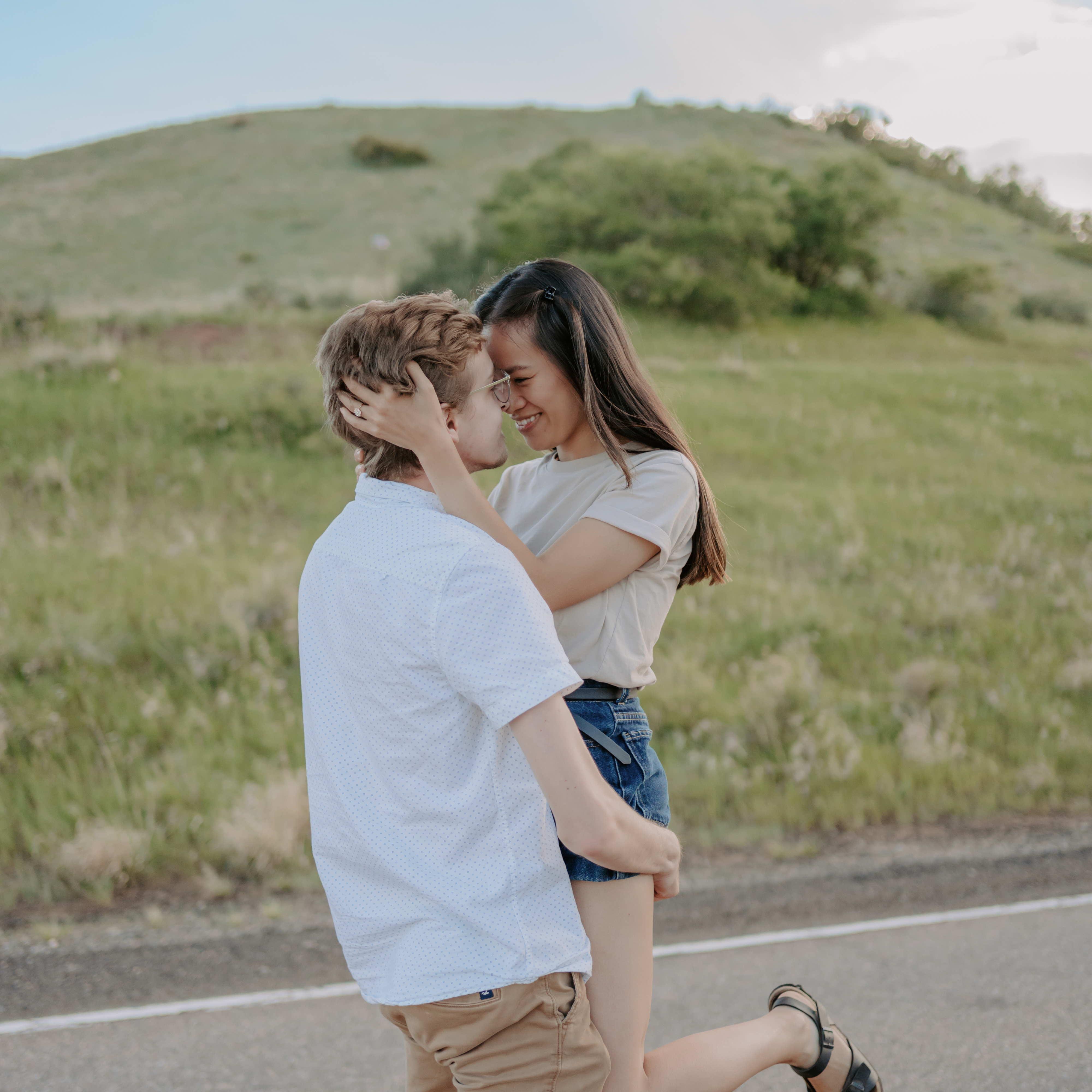 The moment after getting engaged at Zion National Park