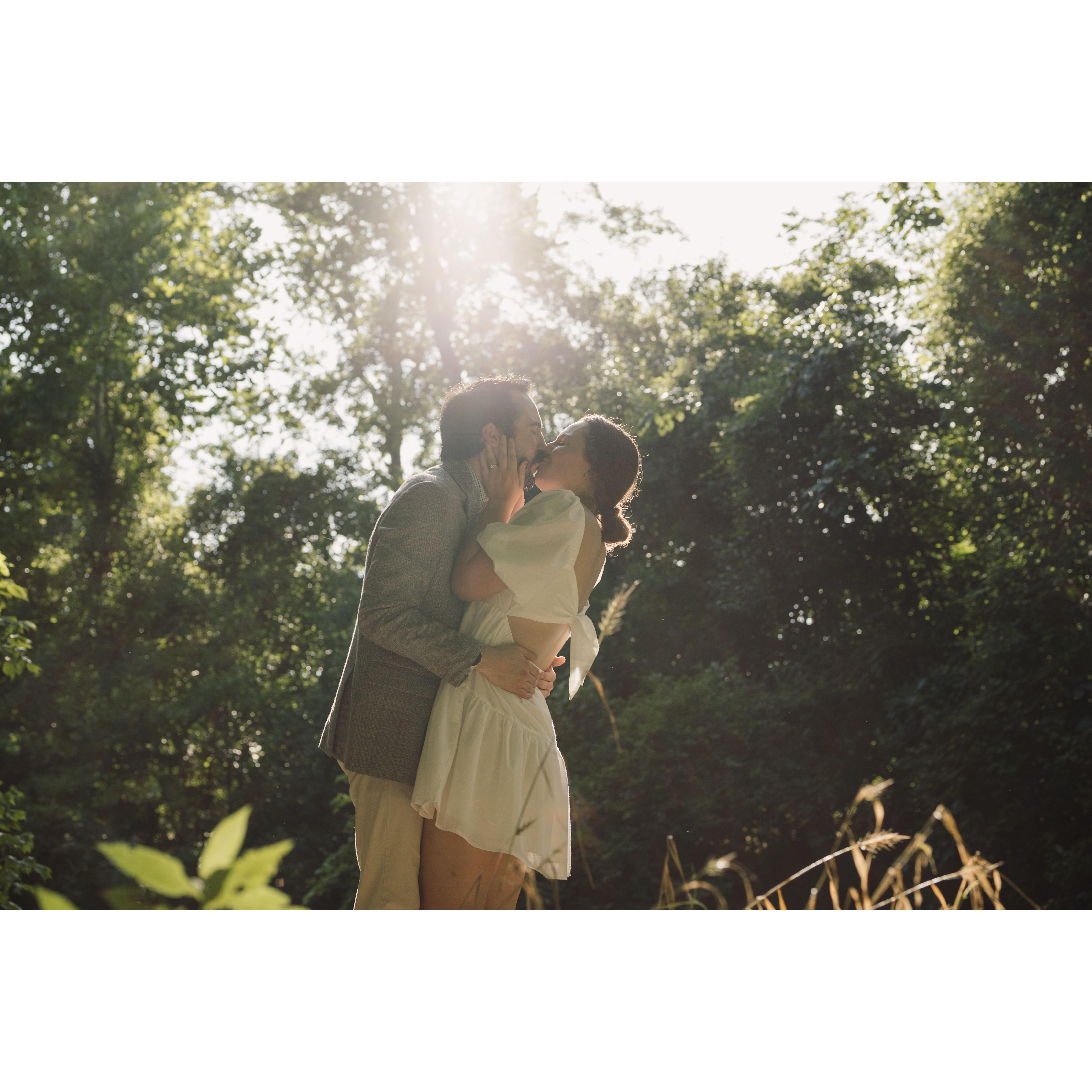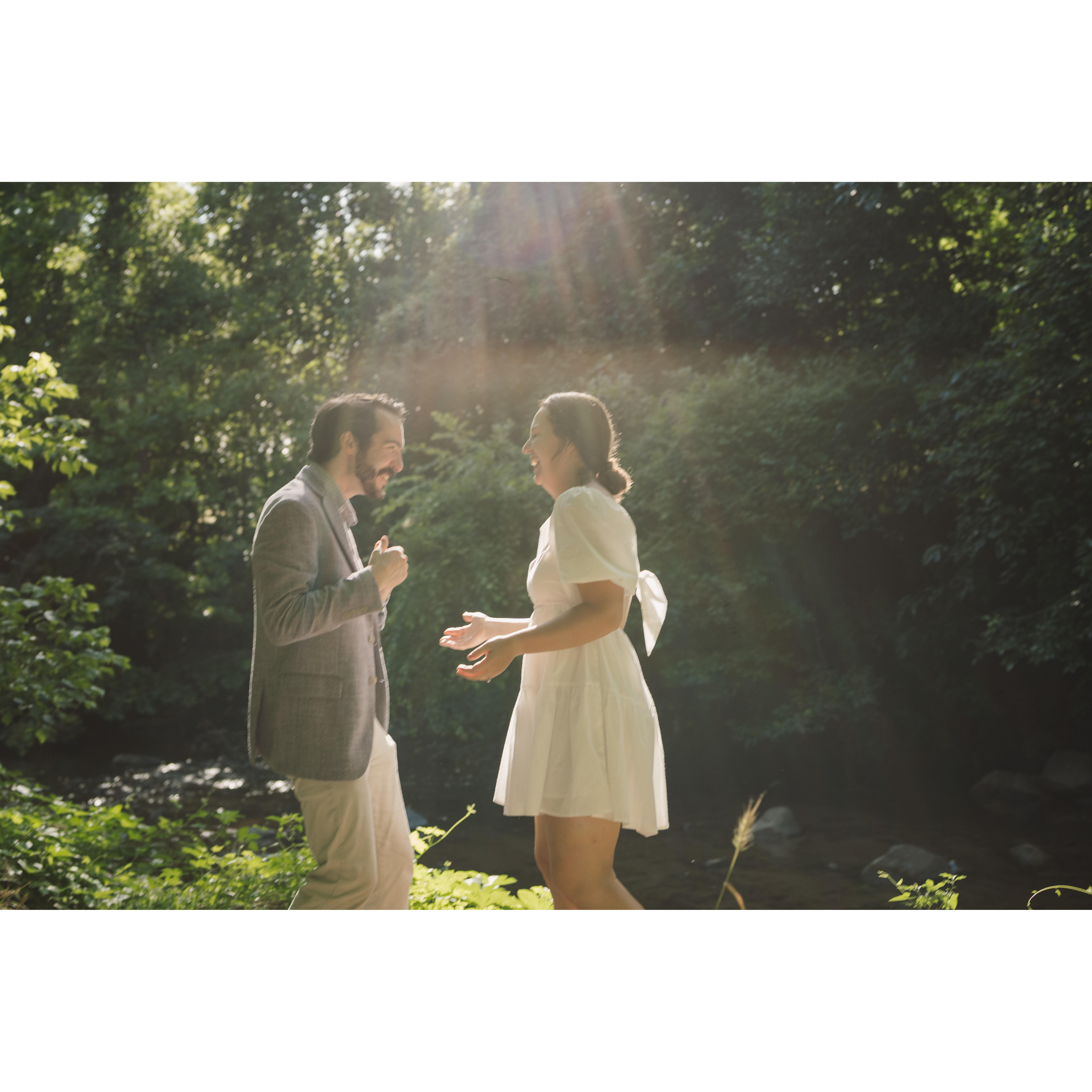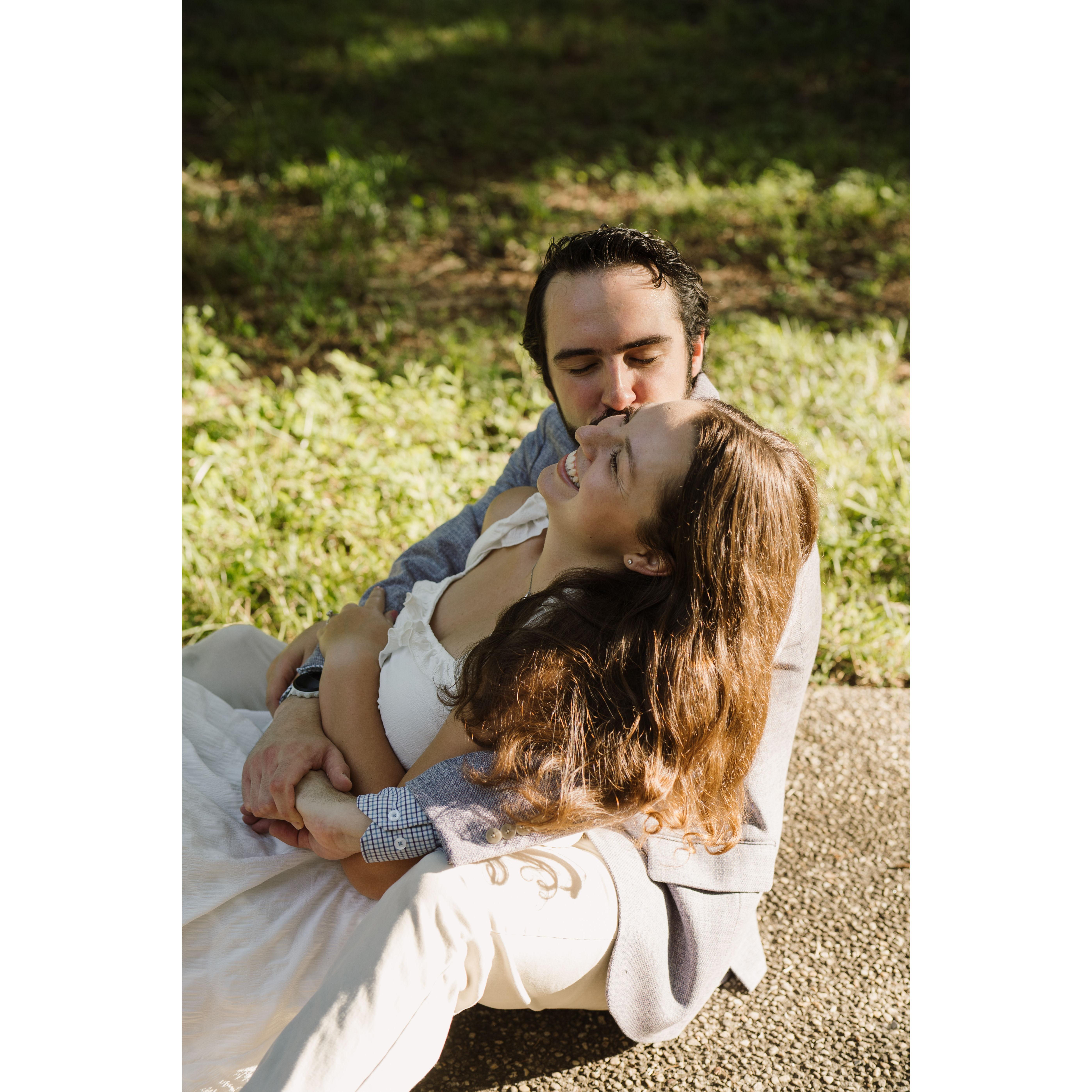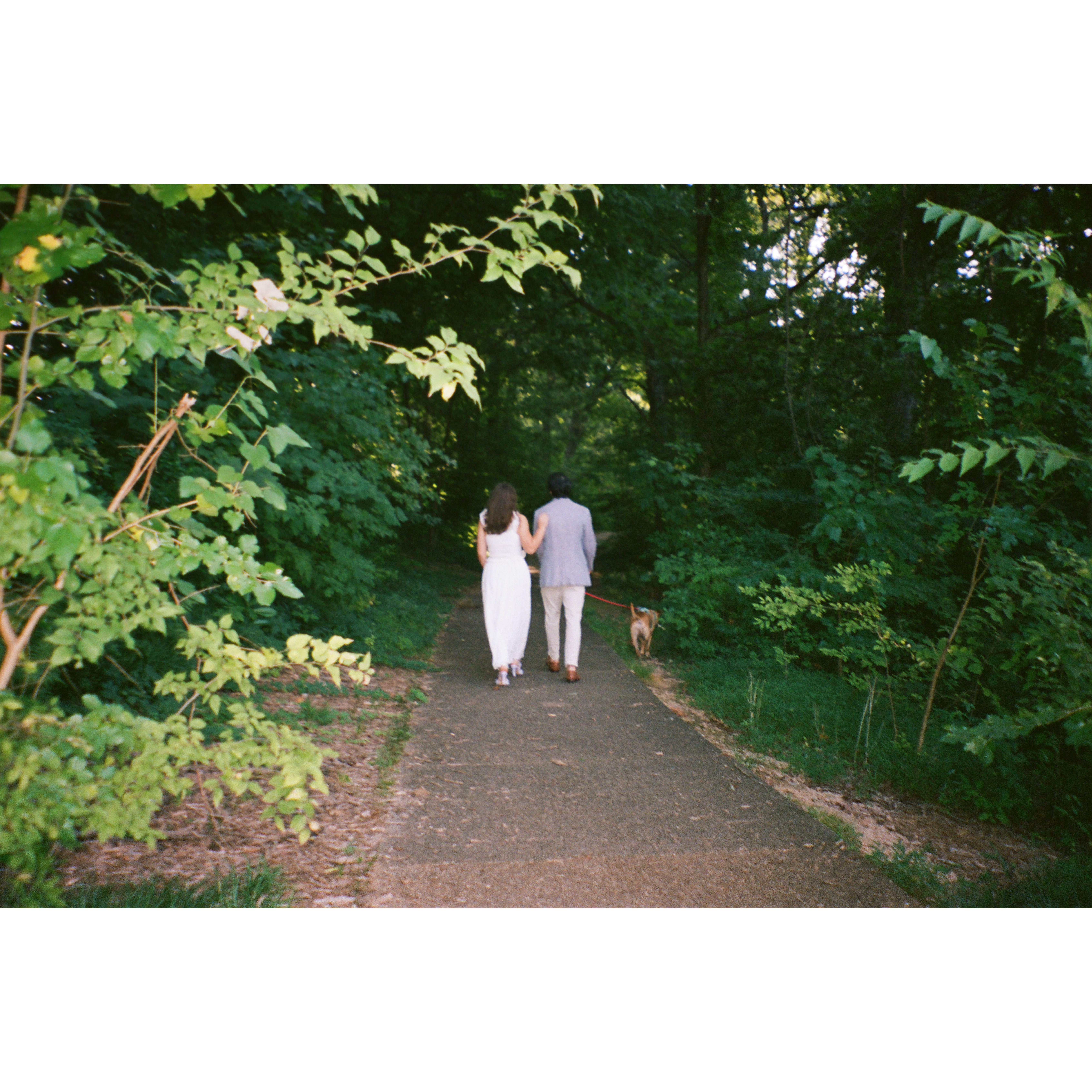 Kat and Skip began their relationship in October of 2018. Since then, they have enjoyed many adventures together, 3 moves, and adopted their dog, Violet. Skipper proposed to Kat on top of a mountain in one of their favorite areas to hike.