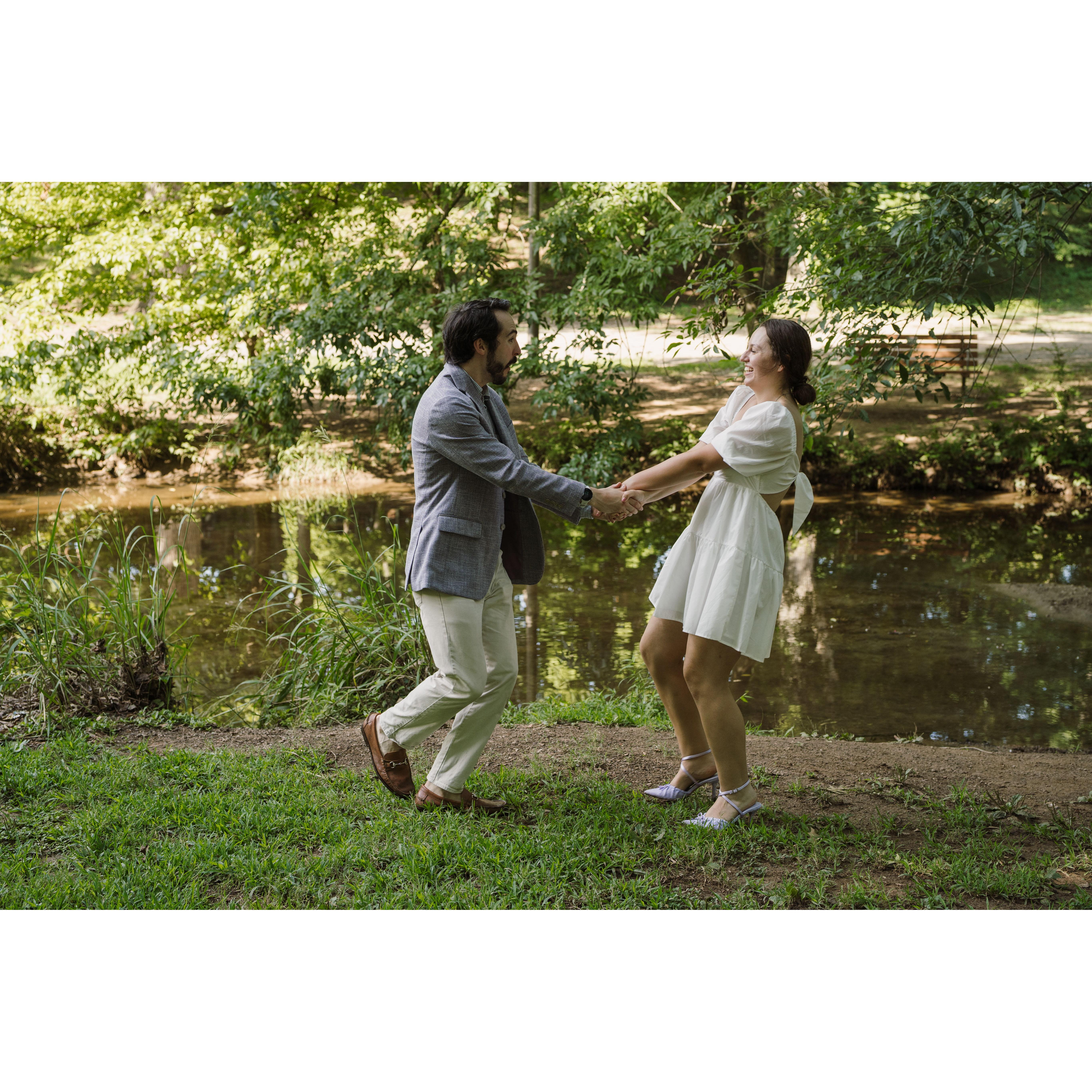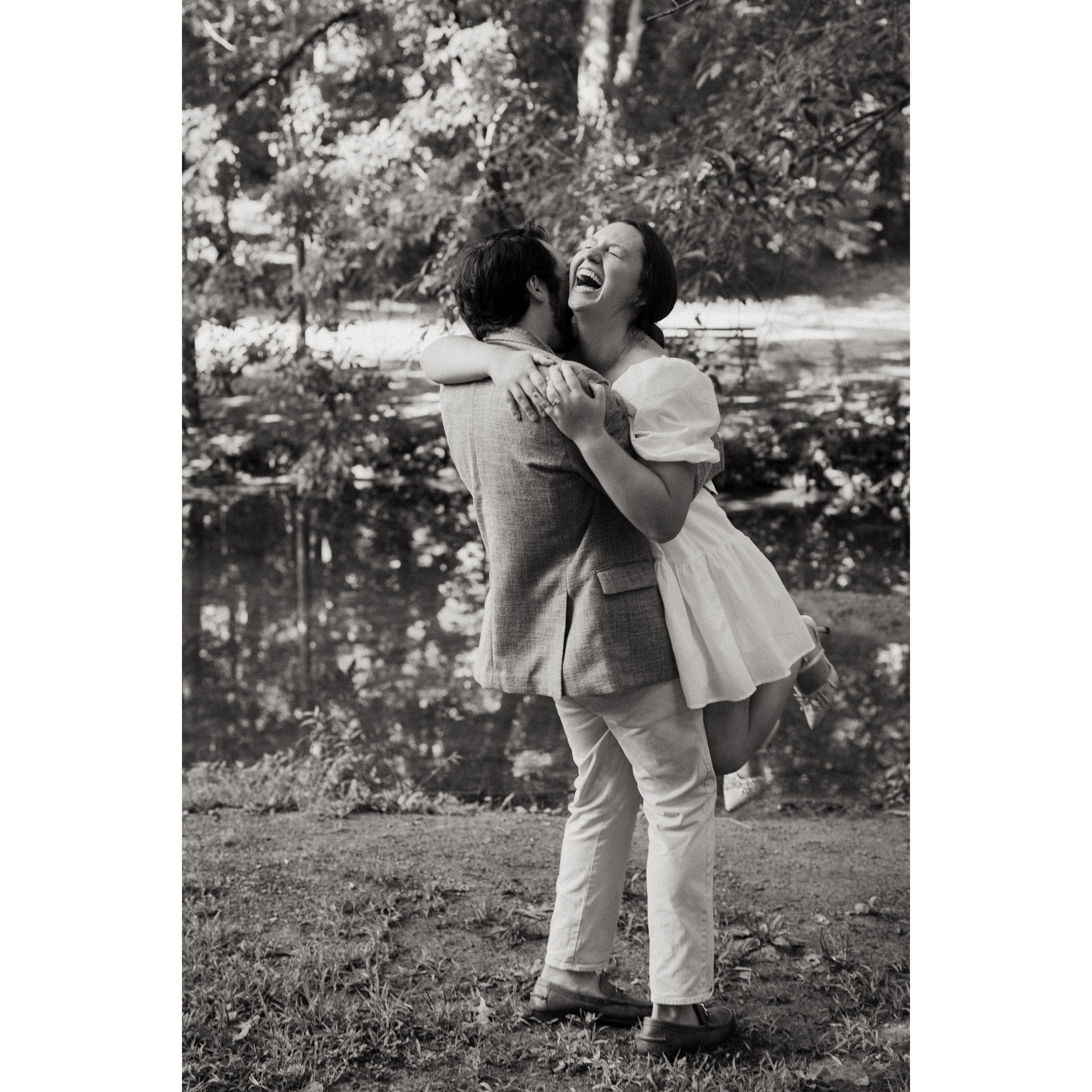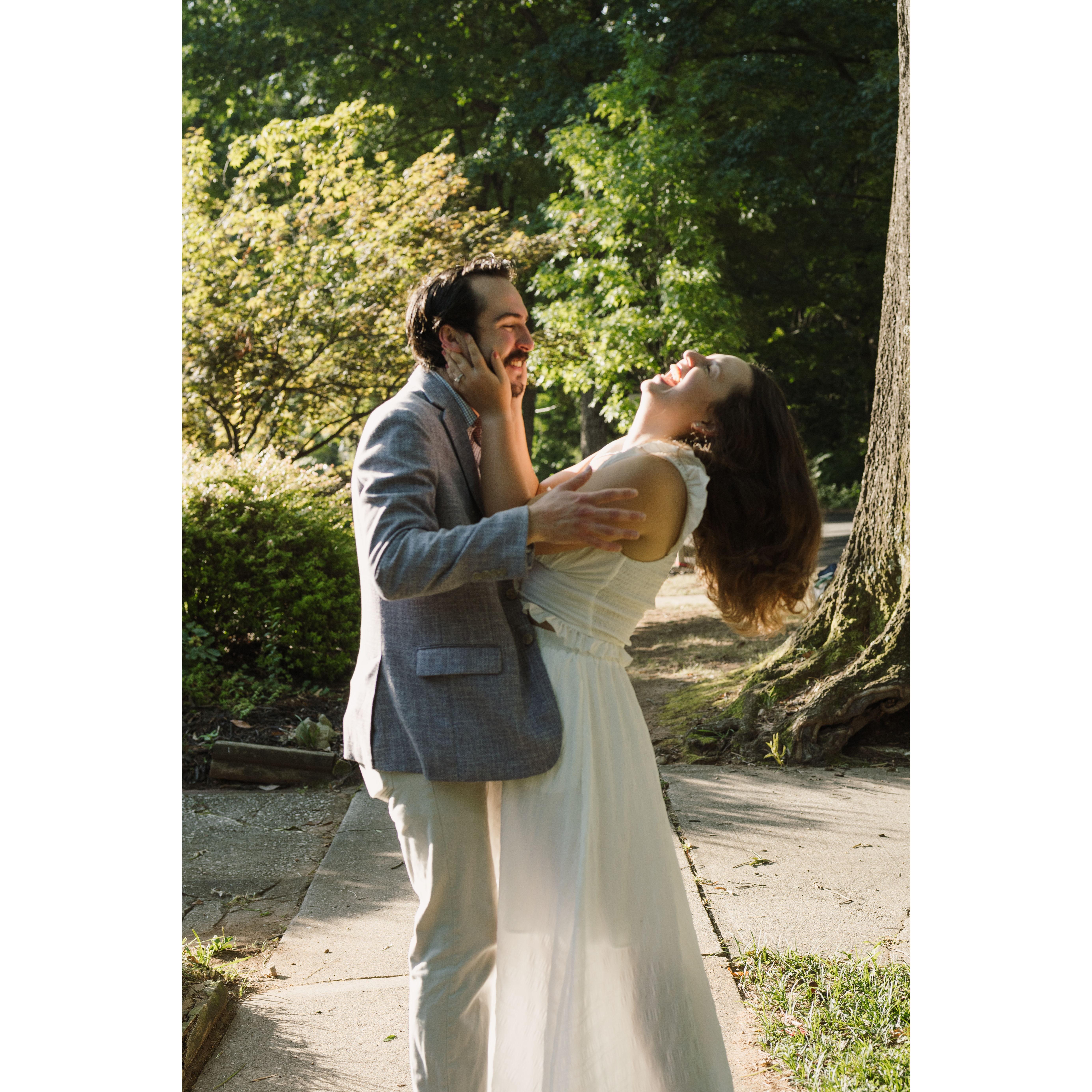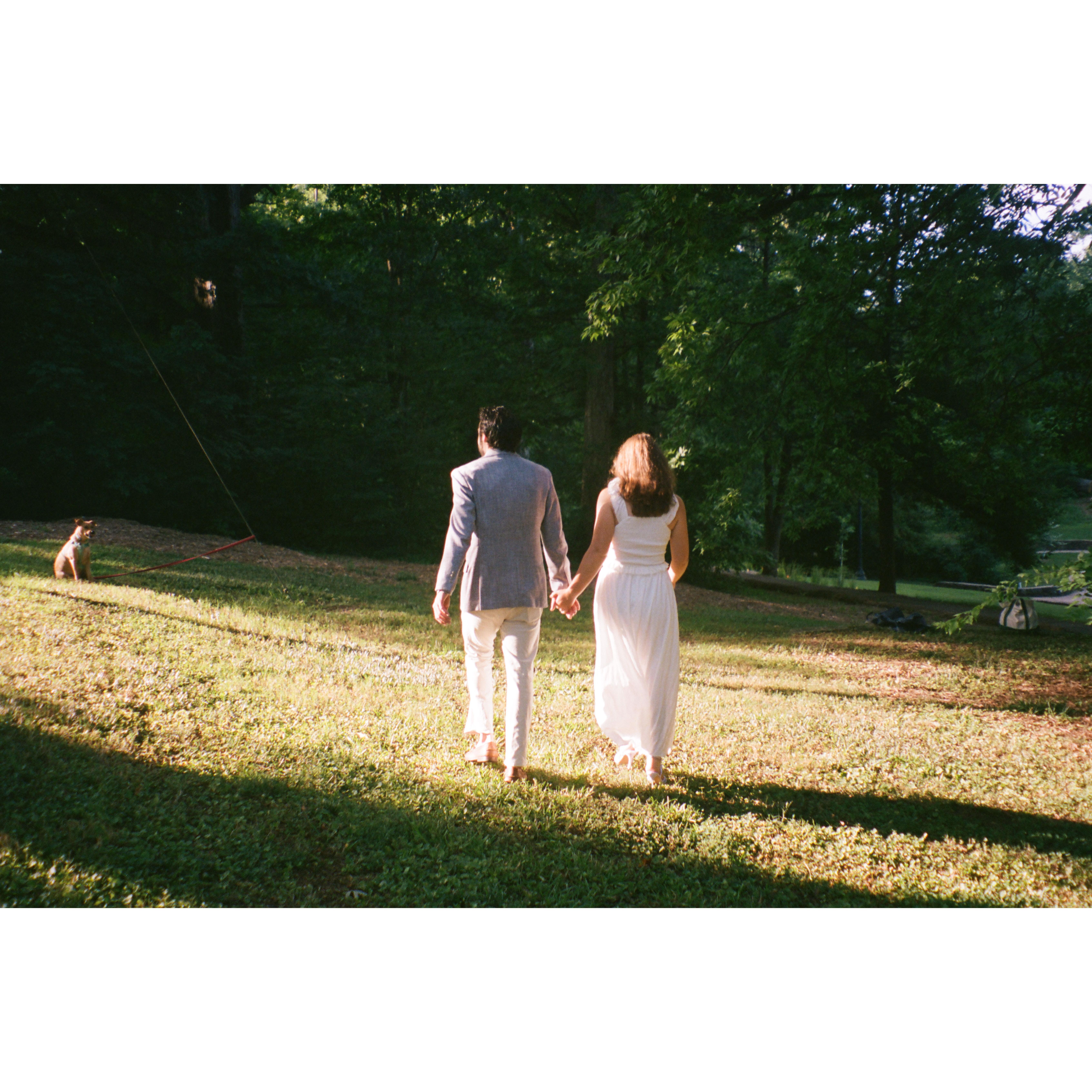 Kat and Skip began their relationship in October of 2018. Since then, they have enjoyed many adventures together, 3 moves, and adopted their dog, Violet. Skipper proposed to Kat on top of a mountain in one of their favorite areas to hike.