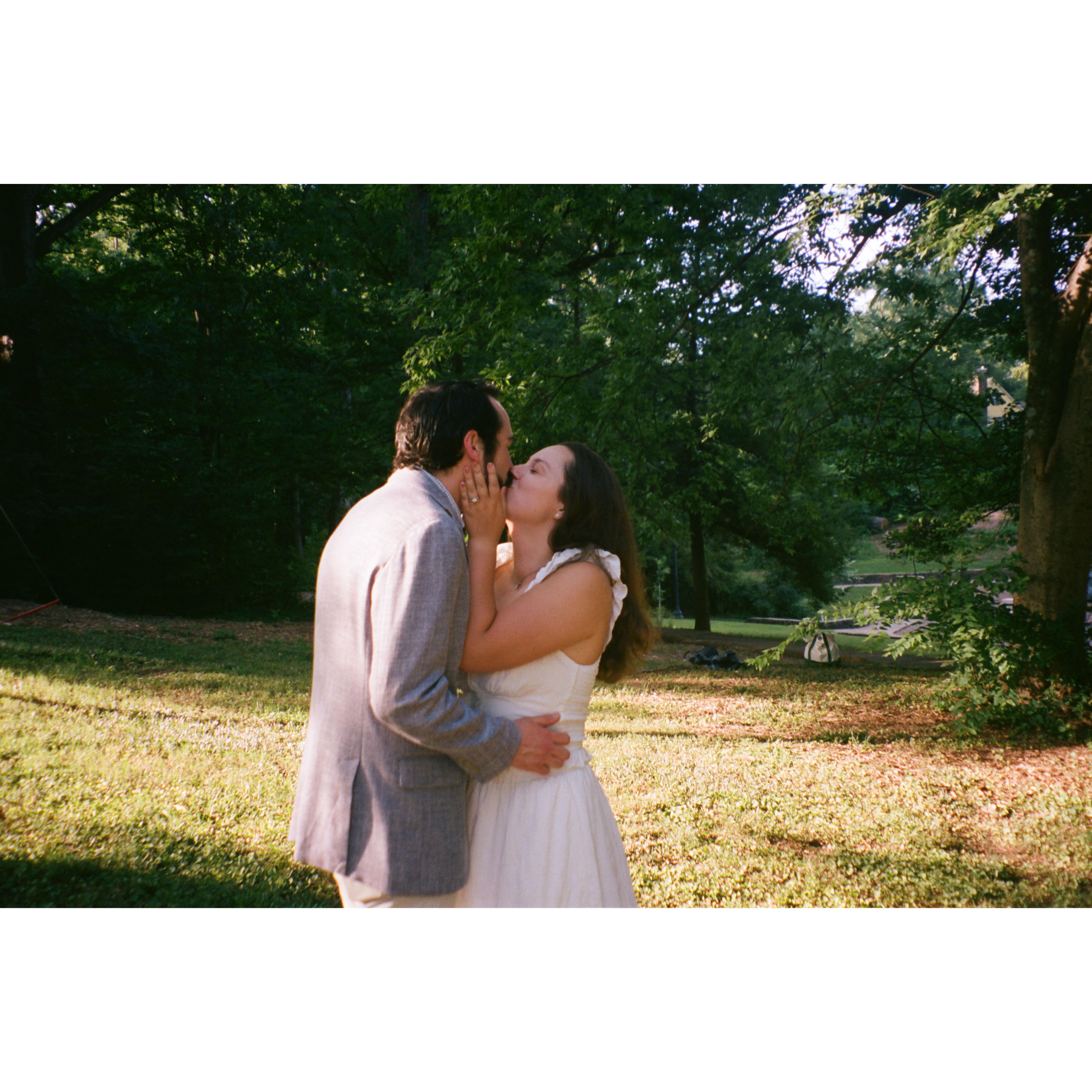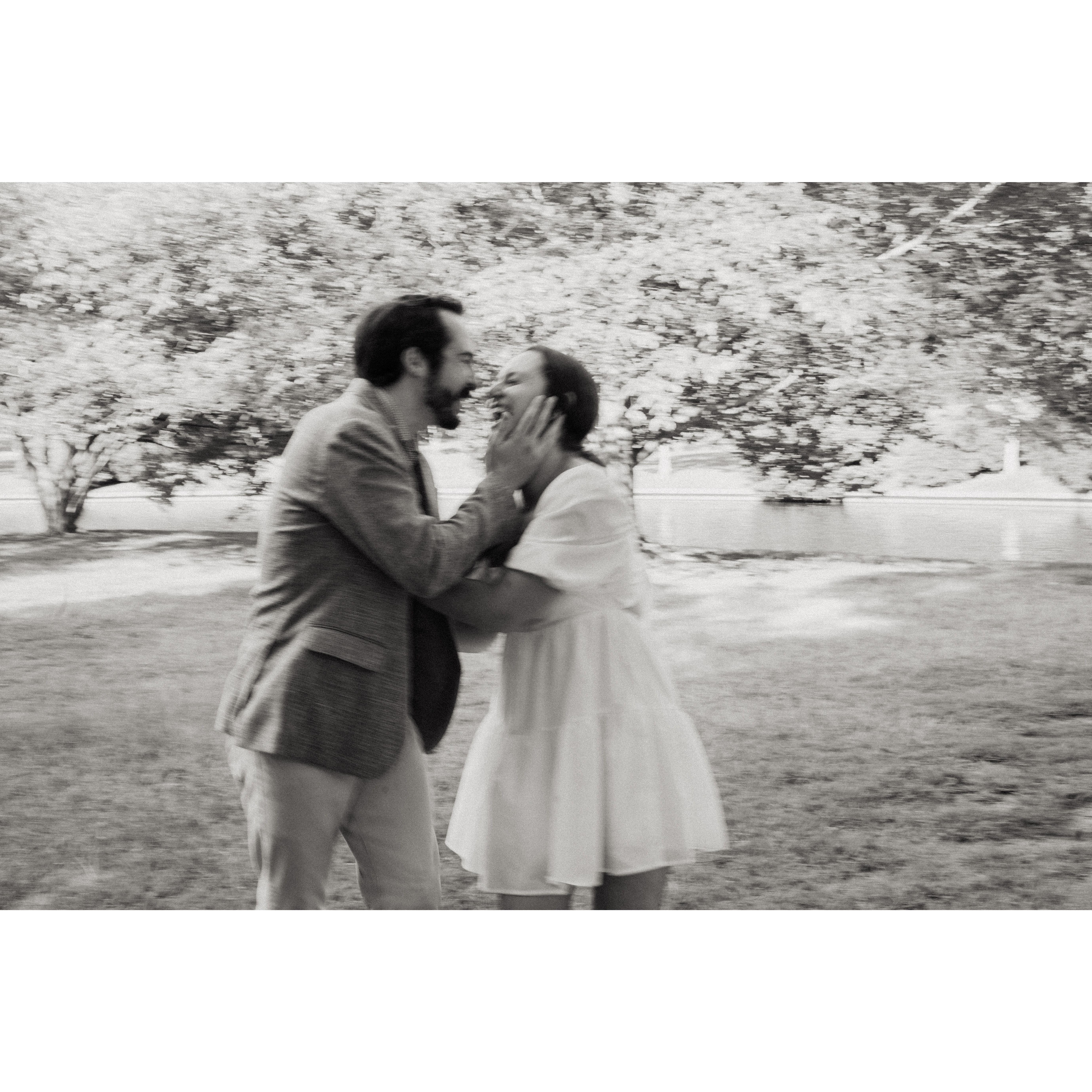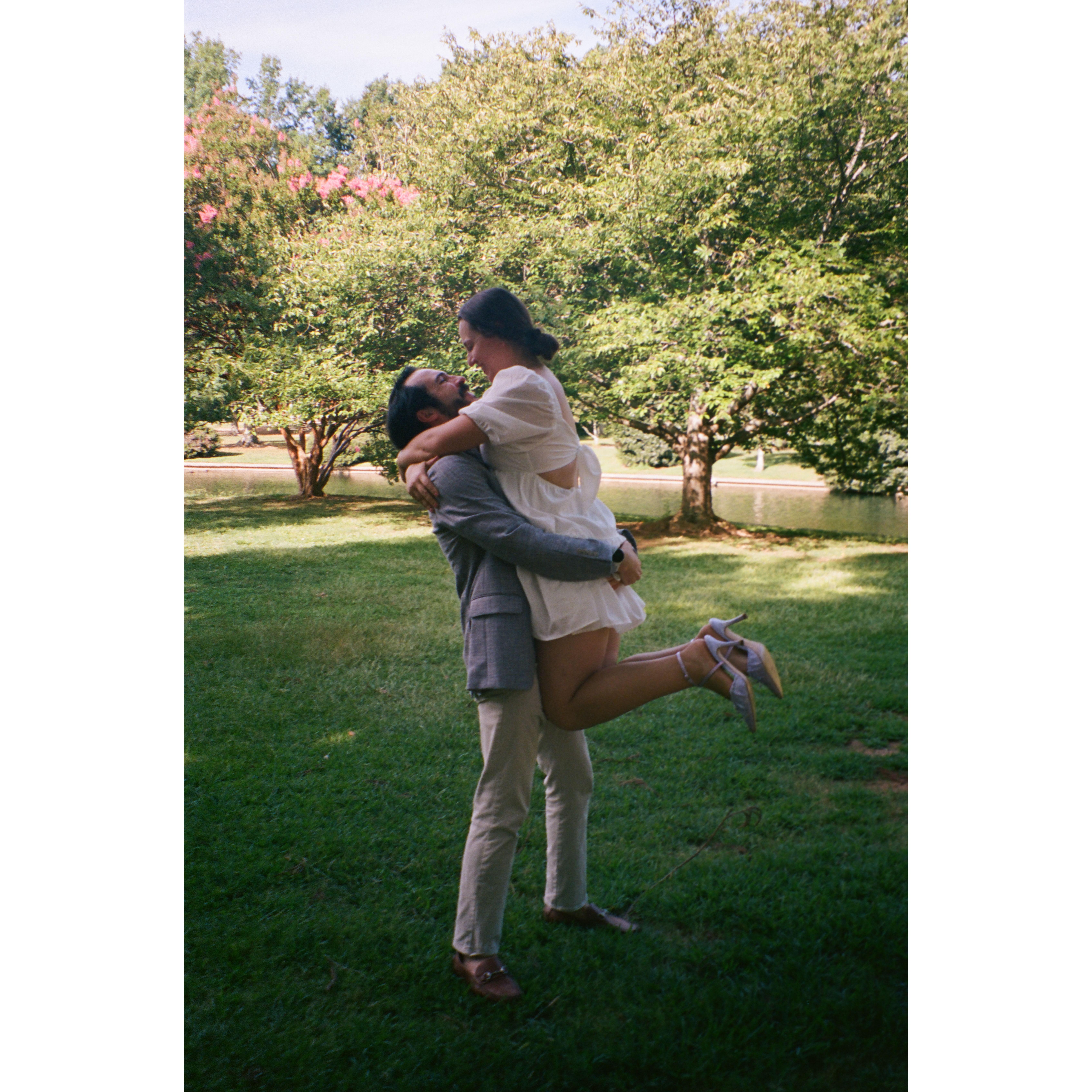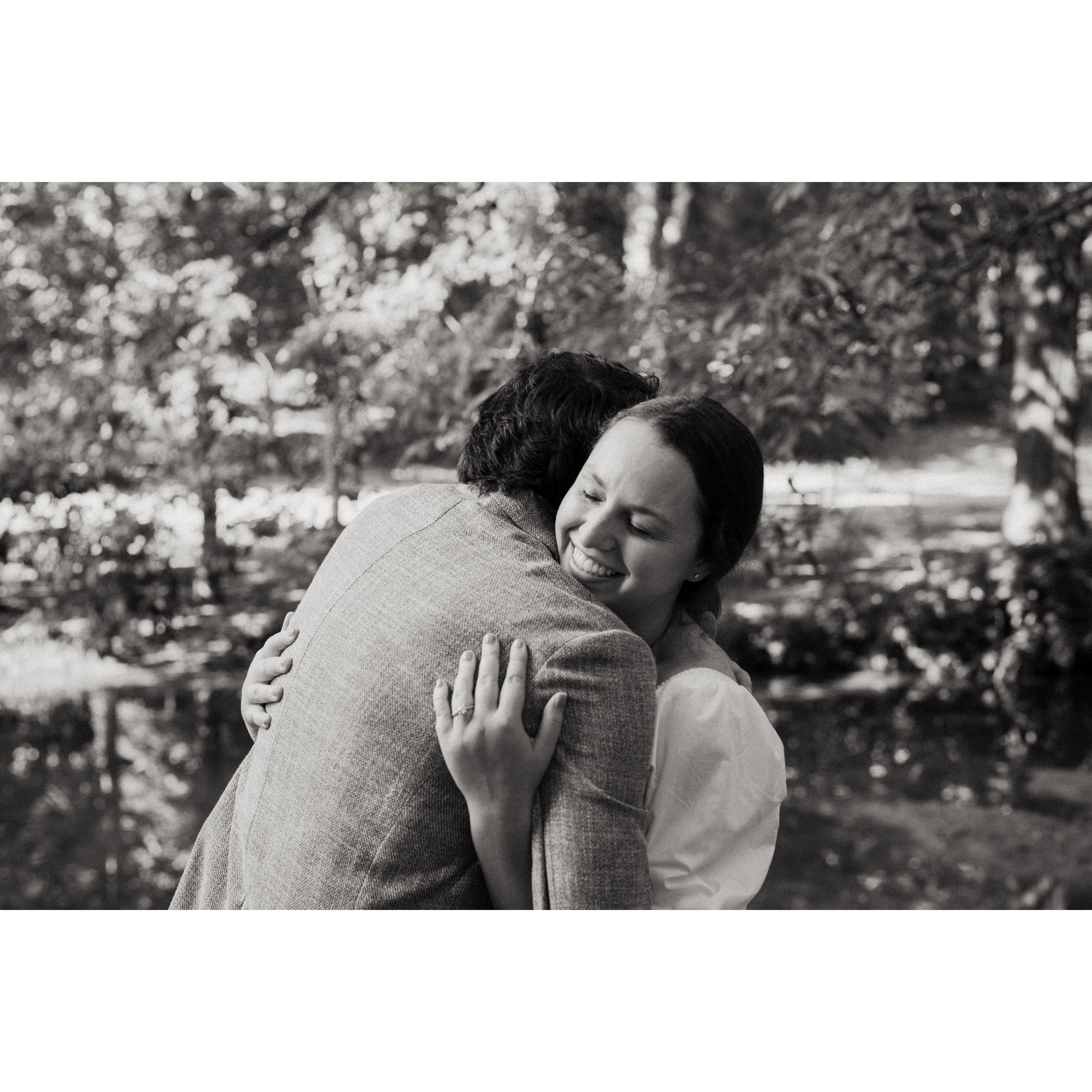 Kat and Skip began their relationship in October of 2018. Since then, they have enjoyed many adventures together, 3 moves, and adopted their dog, Violet. Skipper proposed to Kat on top of a mountain in one of their favorite areas to hike.