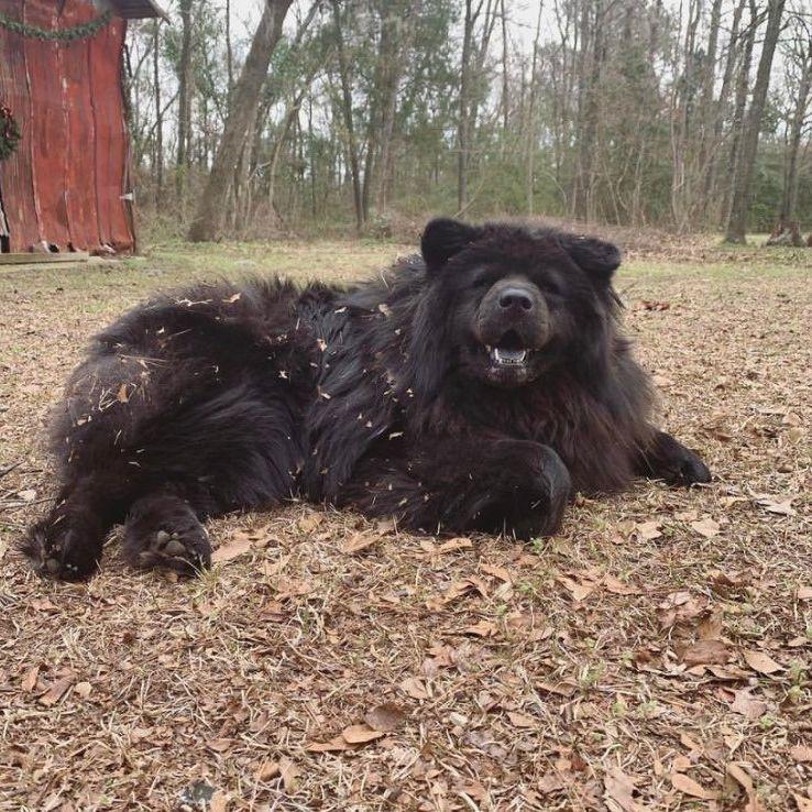“Here comes the Boom!” Boomer was a foster fail in 2015. He had been adopted and returned at no fault of his own. After a series of unfortunate events for Boomer, we decided that they were signs from the universe that he just needed to stay with us. Boomer is our most chill dog. He may look intimidating, he defies all aggressive chow stereotypes, and everyone loves him. As a puppy he had entropion, which is an abnormality that causes the eyelids to roll inward, leading the hair to rub the cornea and cause health issues. He ended up with two surgeries to fix the issue and hopefully save his vision. 7 years later now he’s mostly blind. We believe he can see shadows and light and maybe some basic shapes/figures. If he approaches to sniff you, he just wants to know who you are. He’ll probably back up if you reach for him but he just can’t see you well. Boomer appreciates his personal space but is a sucker for a good butt scratch. Out of all the animals, he loves the farm the most. His favorite spot is on the porch, enjoying the space. Please note: he has a sensitive stomach so no table scraps for him or I *will* call you to come clean my floors.