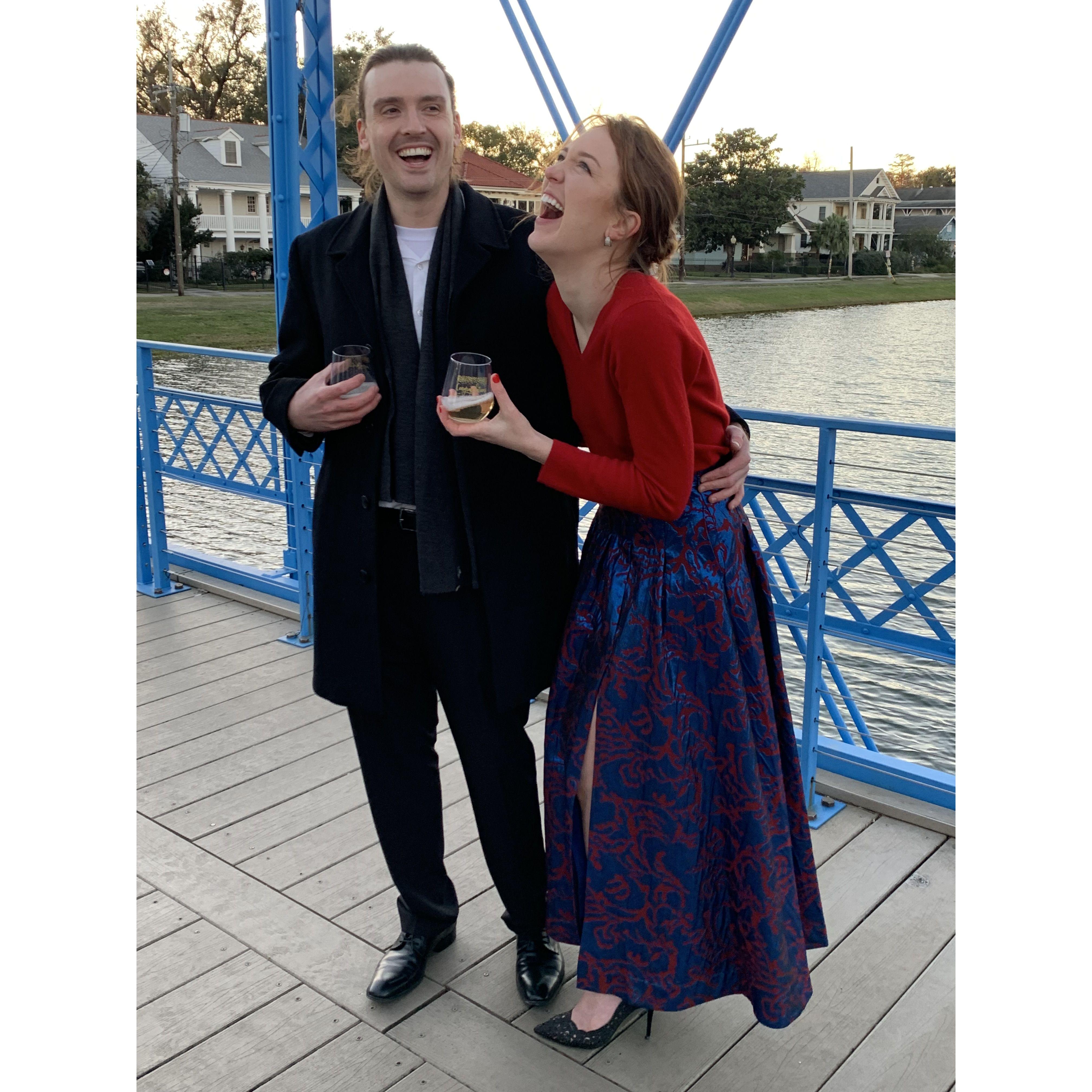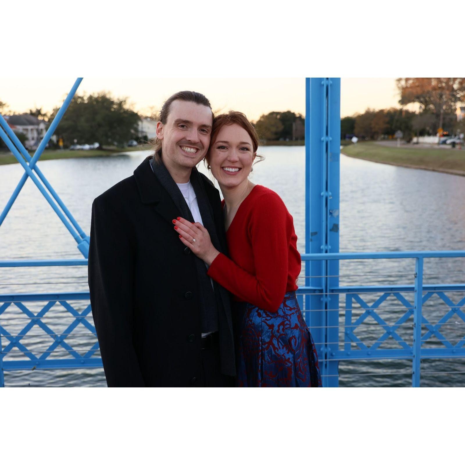 The engagement 12/24/23, New Orleans. Mott arranged for family fly in from out of town to surprise Katie on the Bayou St. John bridge.