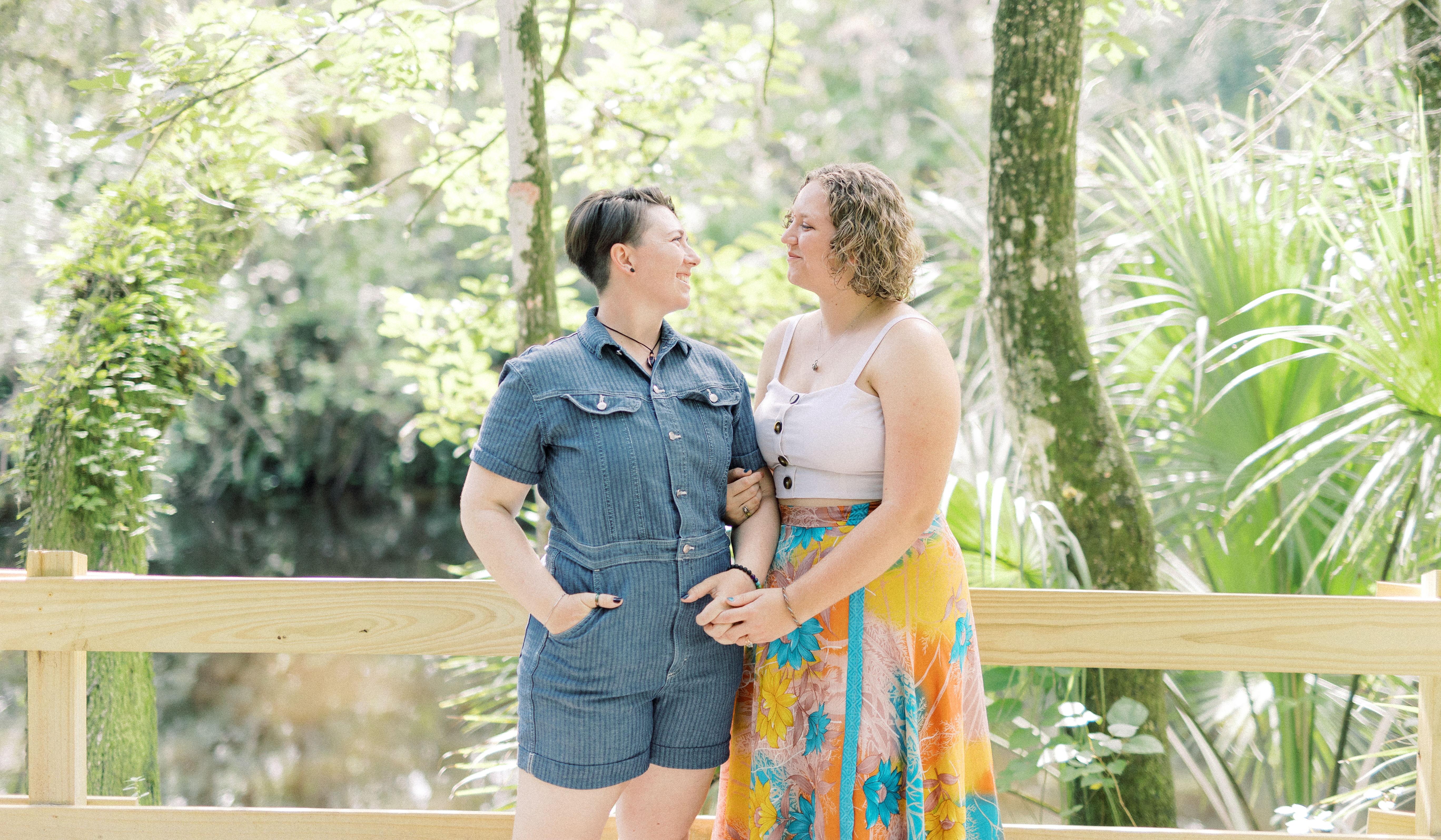 Apparently, we do! Kayla and Delaney met at Stetson University in 2018 through Kayla's friend, Charlie (Jocie). Every year at Stetson, the Hand Art Center puts on a student showcase. This particular year, Delaney and Charlie both had pieces entered in the show. On the night of the opening, Charlie and Kayla passed Delaney on the street outside of the museum. Charlie and Delaney said their greetings and went on their way. As soon as Delaney was out of earshot, Kayla turned to Charlie and asked, "Who the hell is that?! And why don't I know them?!" Charlie replied with a confused face "Um... my sculpture teaching assistant? Why would you need to know them?" "Because they're obviously gay! I know everyone here that is queer. Charlie what the heck! The dating pool is only so big!" whisper-yelled Kayla. Charlie laughed and said they weren't sure if Delaney was actually into girls or not, to which Kayla rolled her eyes because the gaydar was strong! Fast Forward Two Weeks: Delaney was in the ceramic studio in the basement of Sampson Hall, in the middle of the night, when Charlie stormed through and up the stairs with her dog and a painting. After a beat, Charlie popped her head back in and asked if Delaney would be around for another few minutes. Figuring it had to do with sculpture class, Delaney said yeah, and continued working. When Charlie came back, she asked if Delaney would be willing to go on a blind date with her friend. Delaney hesitantly agreed, thinking that weirder things have happened, and got their number. The Next Day: Kayla was sick in bed, when Charlie bounded in and announced that she had single handedly solved all Kayla's girl problem because Kayla had terrible taste in women! Kayla rolled her eyes and pushed her off the bed, laughing. Charlie explained she had set up a blind date and that no amount of bribery or whining would make her spill the details. Kayla immediately refused. Because 1) they were sick, and 2) they thought they knew everyone Charlie knew and more. But after some savvy debating skills and bribery of a froyo trip, Kayla finally agreed. Fast Forward Two More Weeks: Kayla and Delaney both showed up at Boston Coffee House, the best place for coffee and sweet treats in DeLand, for their lunch date. Both were nervous at first, but quickly learned they had a lot in common. After they finished lunch neither wanted to leave, and luckily the annual art festival happening downtown was the perfect excuse to hang out longer. They strolled through the streets for the remainder of the day! Seeing their sculpture professor along the way. We soon realized that all of our friends knew each other, and we somehow had just barely missed the other for 3 whole years. How's that for a meet-cute? Thanks Charlie!
